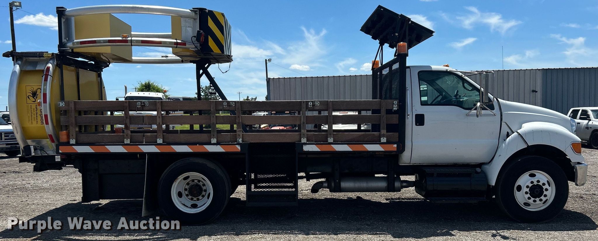 Purple Wave is selling a used Flat Bed Truck in Oklahoma. This item is a 2007 Ford F650 Super Duty flatbed truck with crash attenuator with the following: Miles: 134,206 on odometer, VIN: 3FRNF65Z07V451934