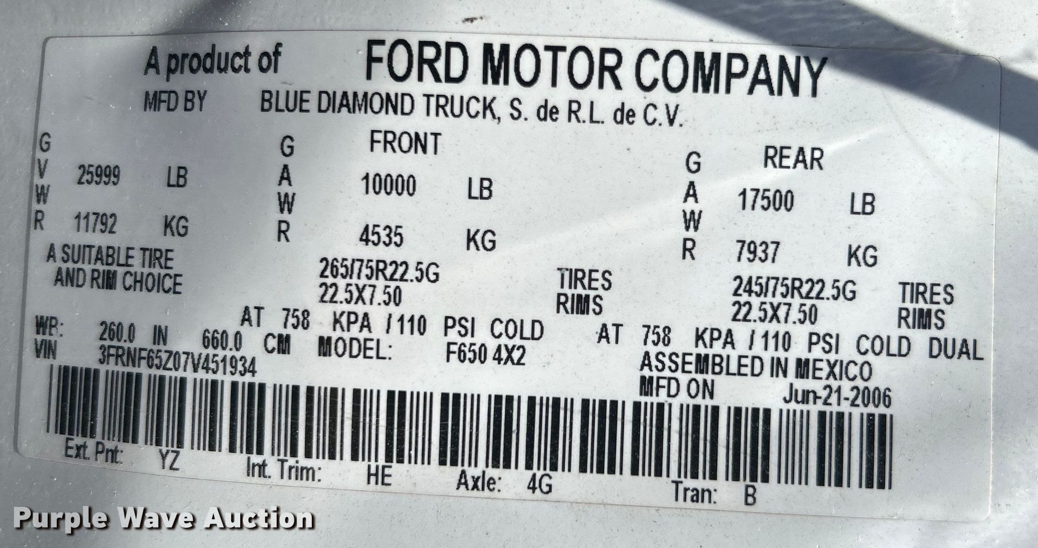 - VIN: 3FRNF65Z07V451934