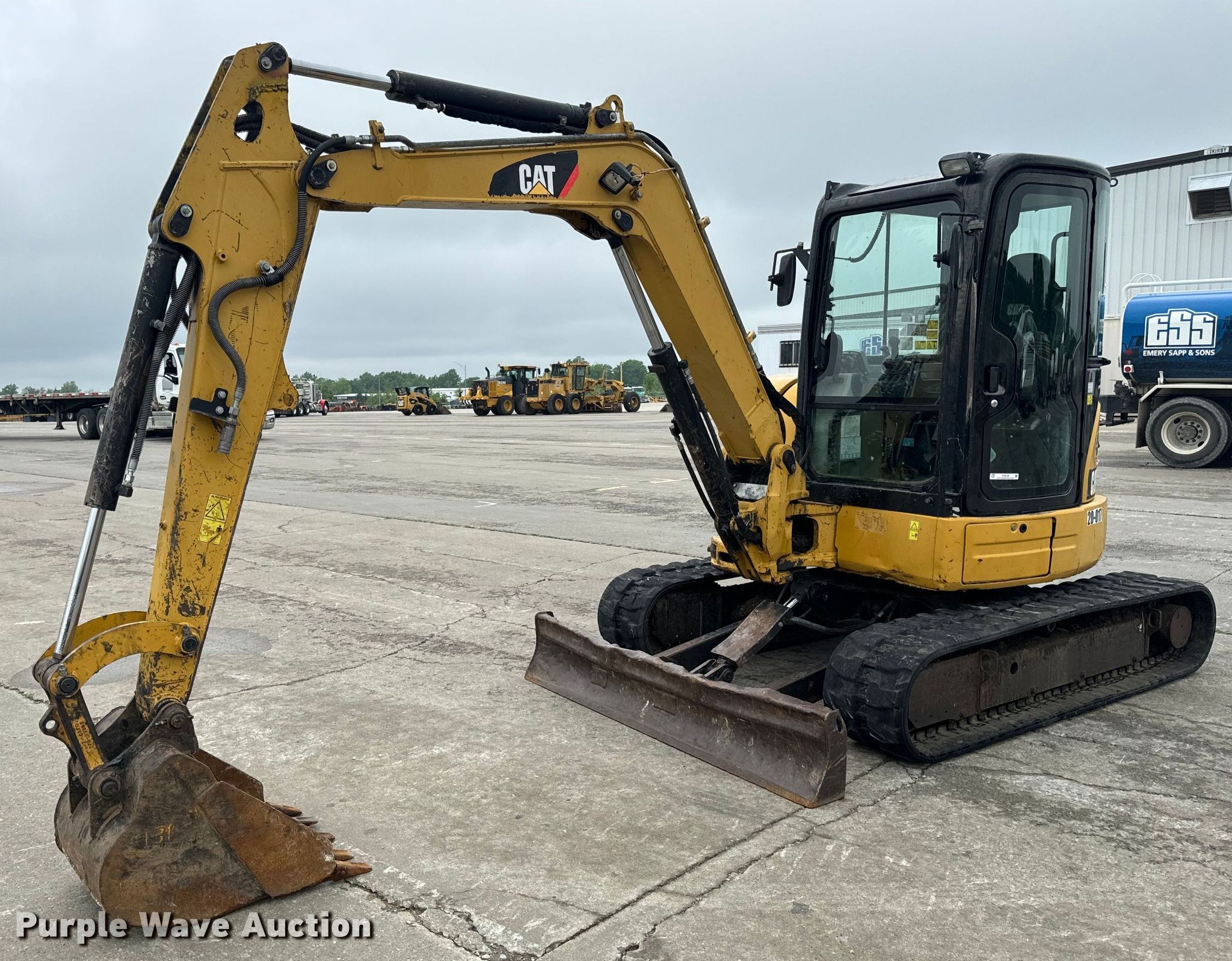 2013 Caterpillar 305E CR mini excavator. Hours: 10,485 on meter, Serial: CAT0365EAXFA01578, Unit #: 20-017. Engine Caterpillar C2.4, Serial: 7CW3646, Displacement: 2.4L, Cylinders: 4, Fuel type: Diesel. Transmission Hydrostatic. Operators station Enclosed cab, AC, Heat. Features Auxiliary hydraulics, Backfill blade Width: 78", Boom Swing, Stick Stick length: 69", Bucket Caterpillar, Width: 24", Teeth: 5. Tracks Width: 16", Rubber. Notes Engine hatch latch issues, broken, Boom welded. Emery Sapp & Sons, Inc... Columbia, MO 65202