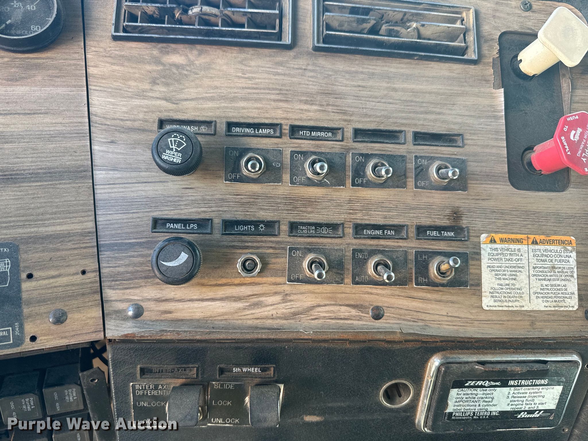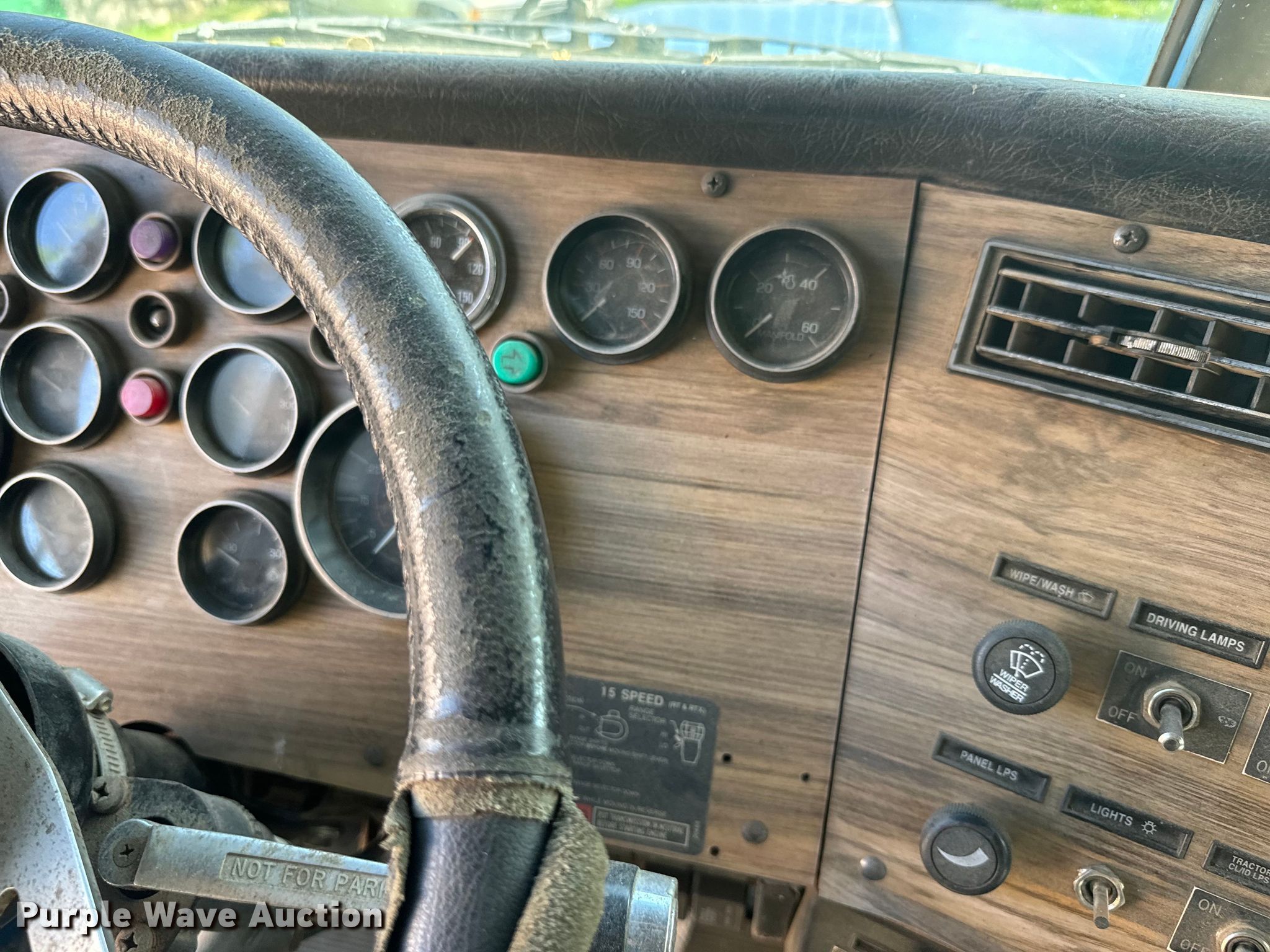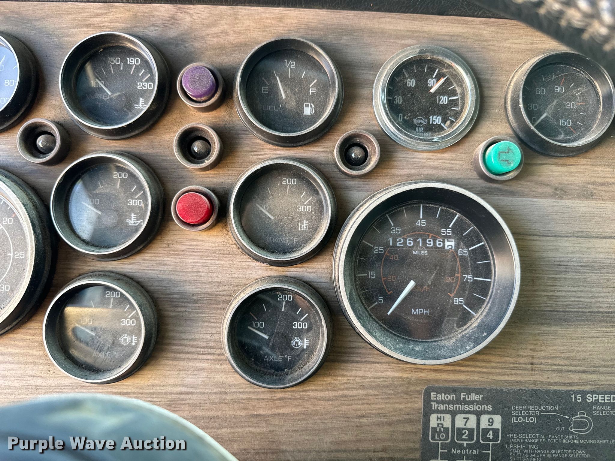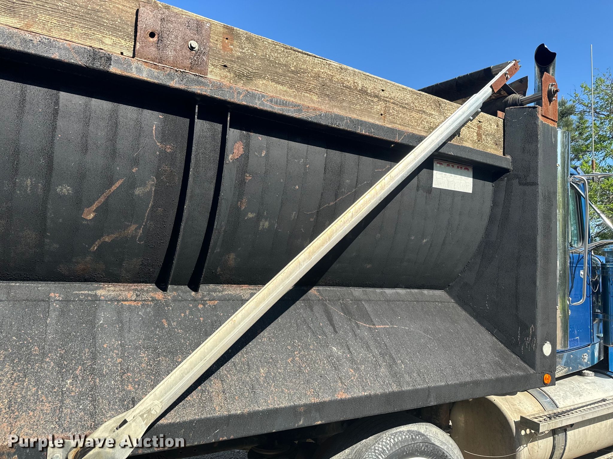 1996 Western Star 4900 dump truck. Miles: 126,196 on odometer, VIN: 2WKPDCCH5TK940501. Engine Caterpillar 3406, Displacement: 14.6L, Cylinders: 6, Fuel type: Diesel. Transmission Eaton Fuller, Manual, Speed: 15. Chassis Axles: Triple, Pusher axle, Differential lock: Inter-axle, Suspension: Spring over walking beam, Brakes: Air, PTO, GVWR: 52,000 lbs FAWR: 12,000 lbs, IAWR: 20,000 lbs, RAWR: 20,000 lbs. Interior AC, Heat, Heated mirrors. Features Dump bed Davis, 14' 6" L x 101" W, Side height: 48", Side board height: 10", Bed type: Steel, Barrel, Roll tarp, Ram: Single, End gate: Air operated. Tires Size: 11R24.5, Lift axle: 255/70R22.5. Kansas title. Title distribution may be delayed up to 30 days from verification of funds. Maple Hill, KS 66507