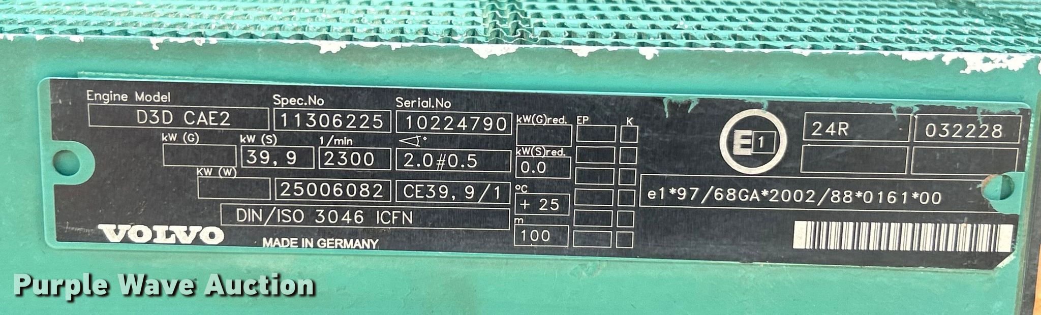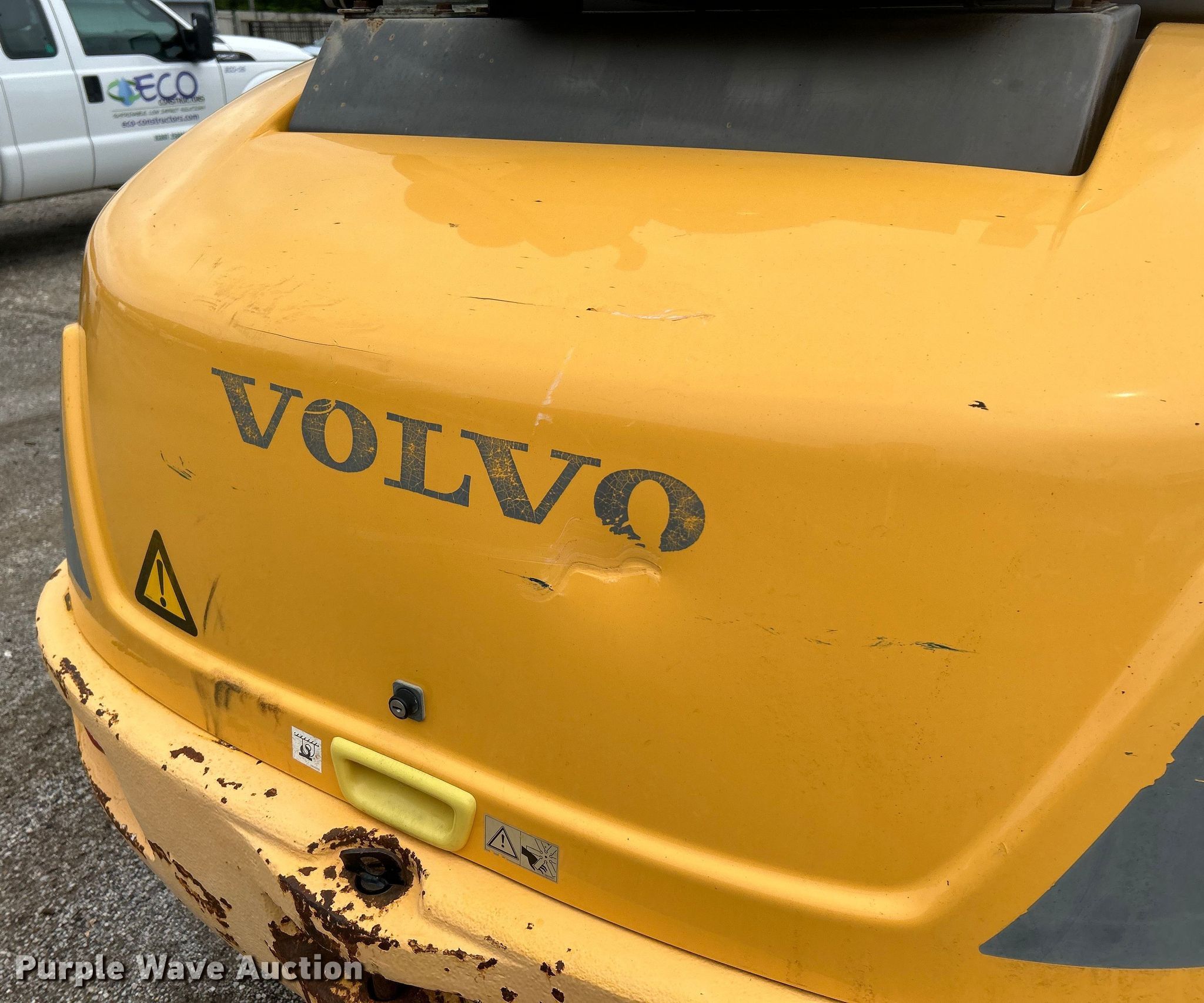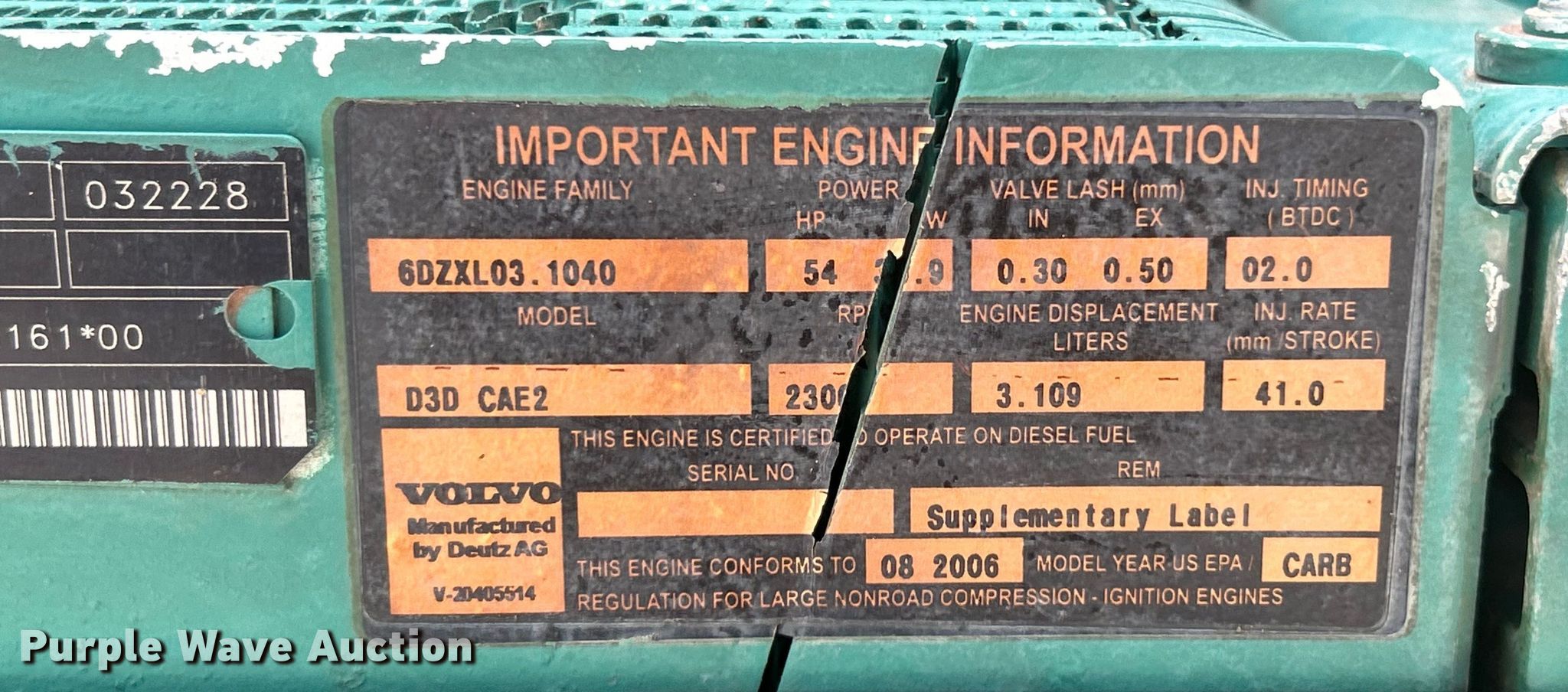 2006 Volvo L20B-P wheel loader. Hours: 5,454 on meter, Serial: L20BV1701656. Engine Volvo, Displacement: 3.109L, Cylinders: 4, Fuel type: Diesel, HP: 56. Transmission Hydrostatic, 2F - 2R, Two speed travel. Operators station Enclosed cab, AC, Heat, Bucket controls: Joystick. Features Auxiliary hydraulics: Front, Quick coupler: Hydraulic, Bucket Volvo, Width: 71", Cutting edge: Bolt-on. Tires Size: 400/70R18. Notes Glass cracked. St. Louis Composting. Eureka, MO 63025