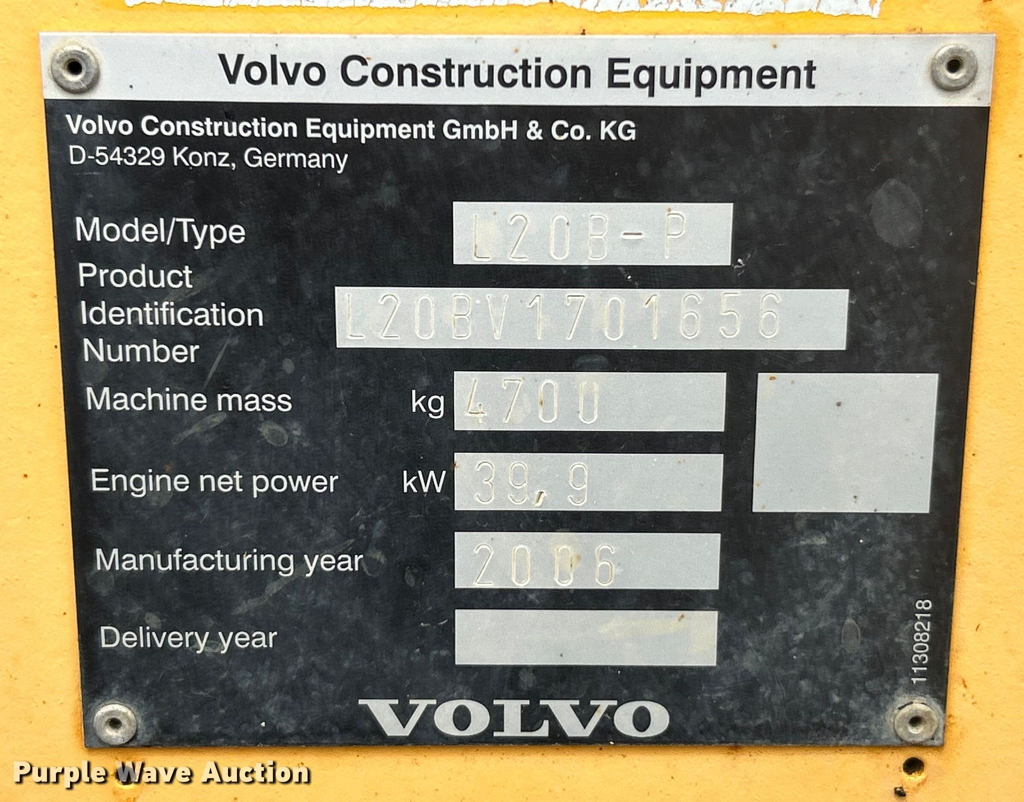 Purple Wave is selling a used Wheel Loader in Missouri. This item is a 2006 Volvo L20B-P wheel loader with the following: Hours: 5,454 on meter, Serial: L20BV1701656