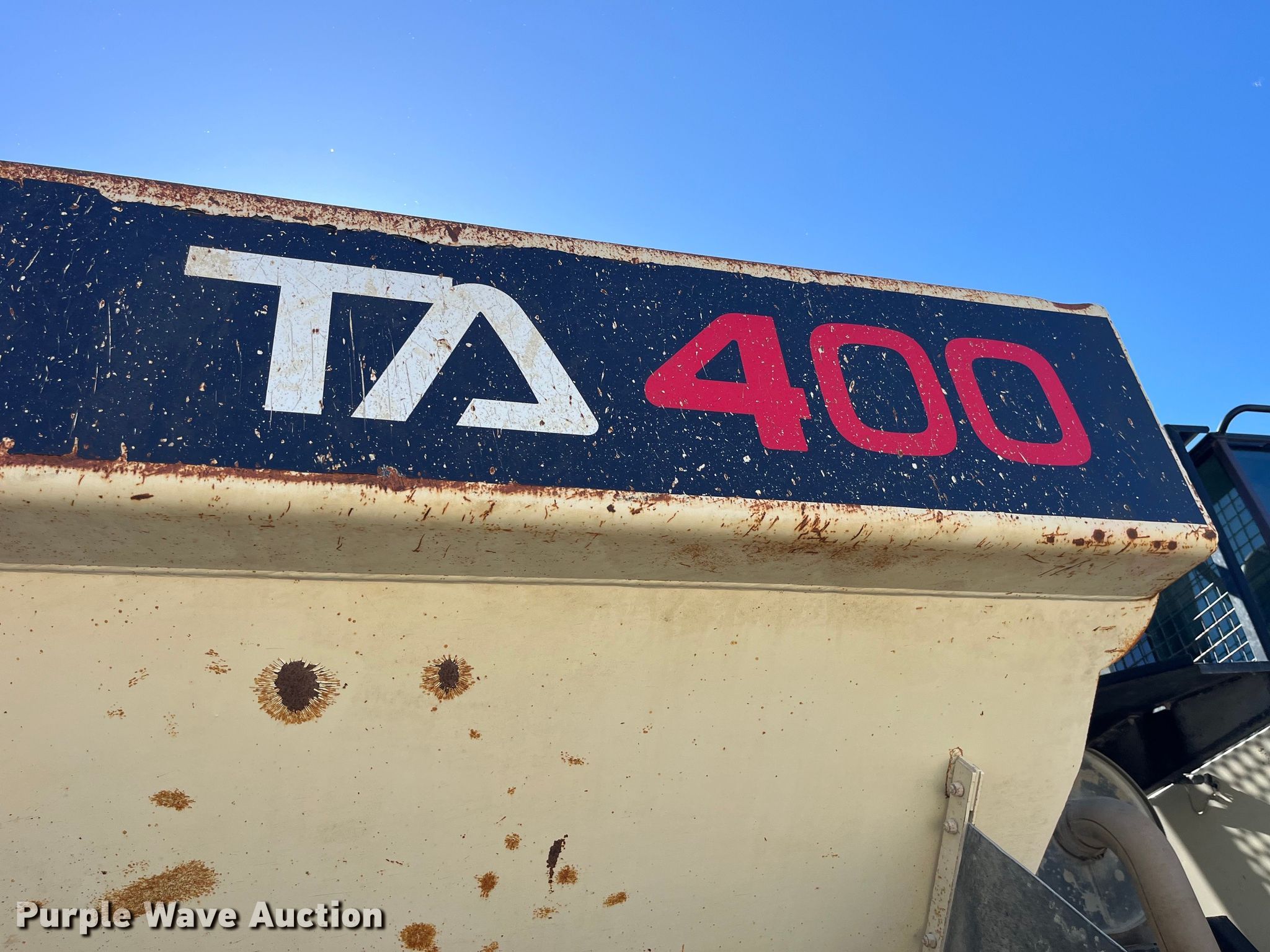 2009 Terex TA40 haul truck. Miles: 42,569 on odometer, Hours: 8,741 on meter, Serial: A8651390. Engine Detroit Diesel, Cylinders: 6, Fuel type: Diesel. Transmission Automatic. Chassis Six wheel drive. Interior AC, heat, Retarder, Backup camera. Tires Size: 29.5R25. Gallatin, MO 64640