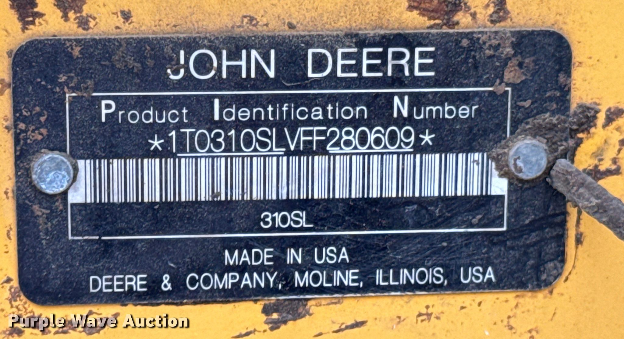 Purple Wave is selling a used Tractor Loader Backhoe in Oklahoma. This item is a 2015 John Deere 310SL backhoe with the following: Hours: 3,014 on meter, Serial: 1T0310SLVFF280609