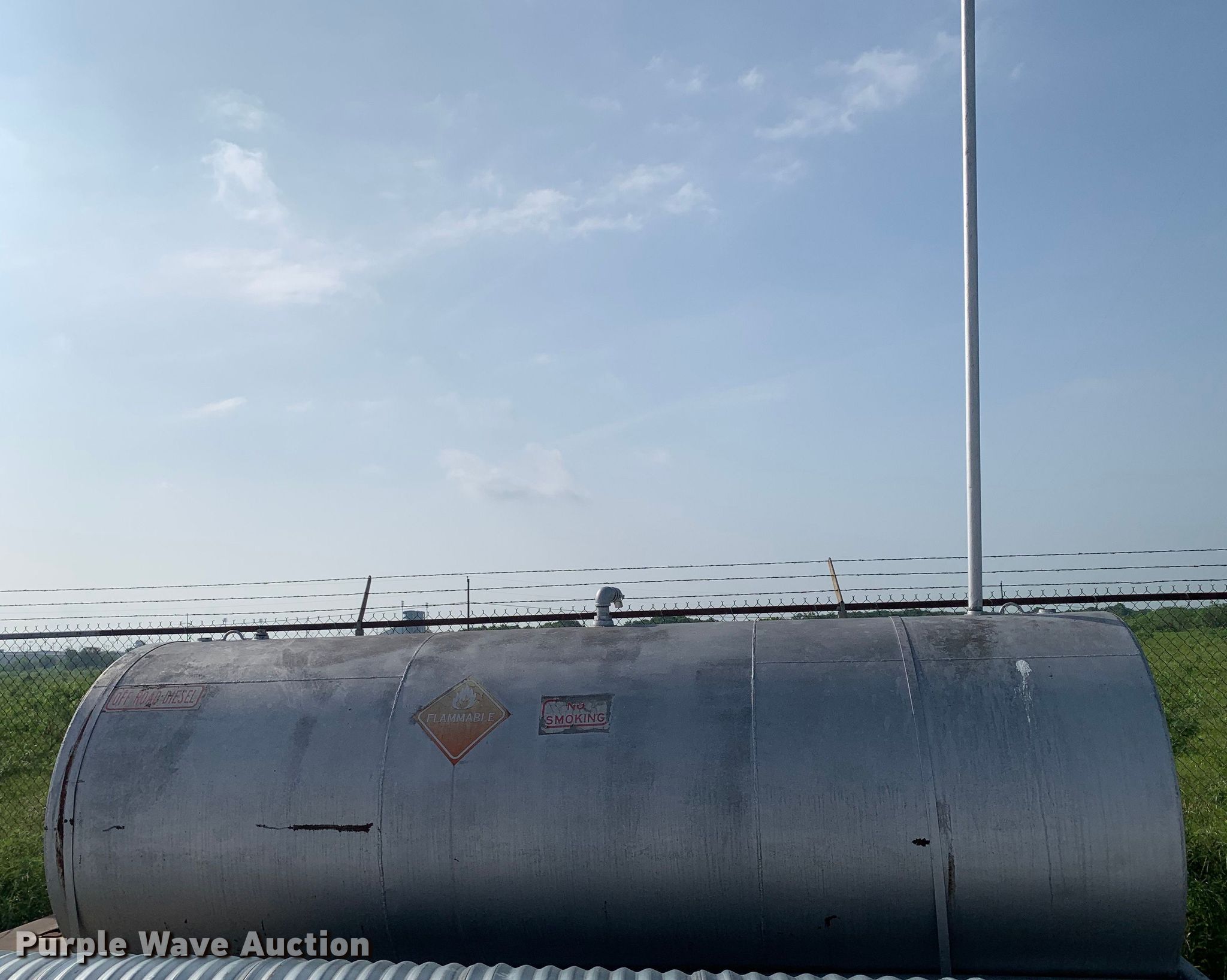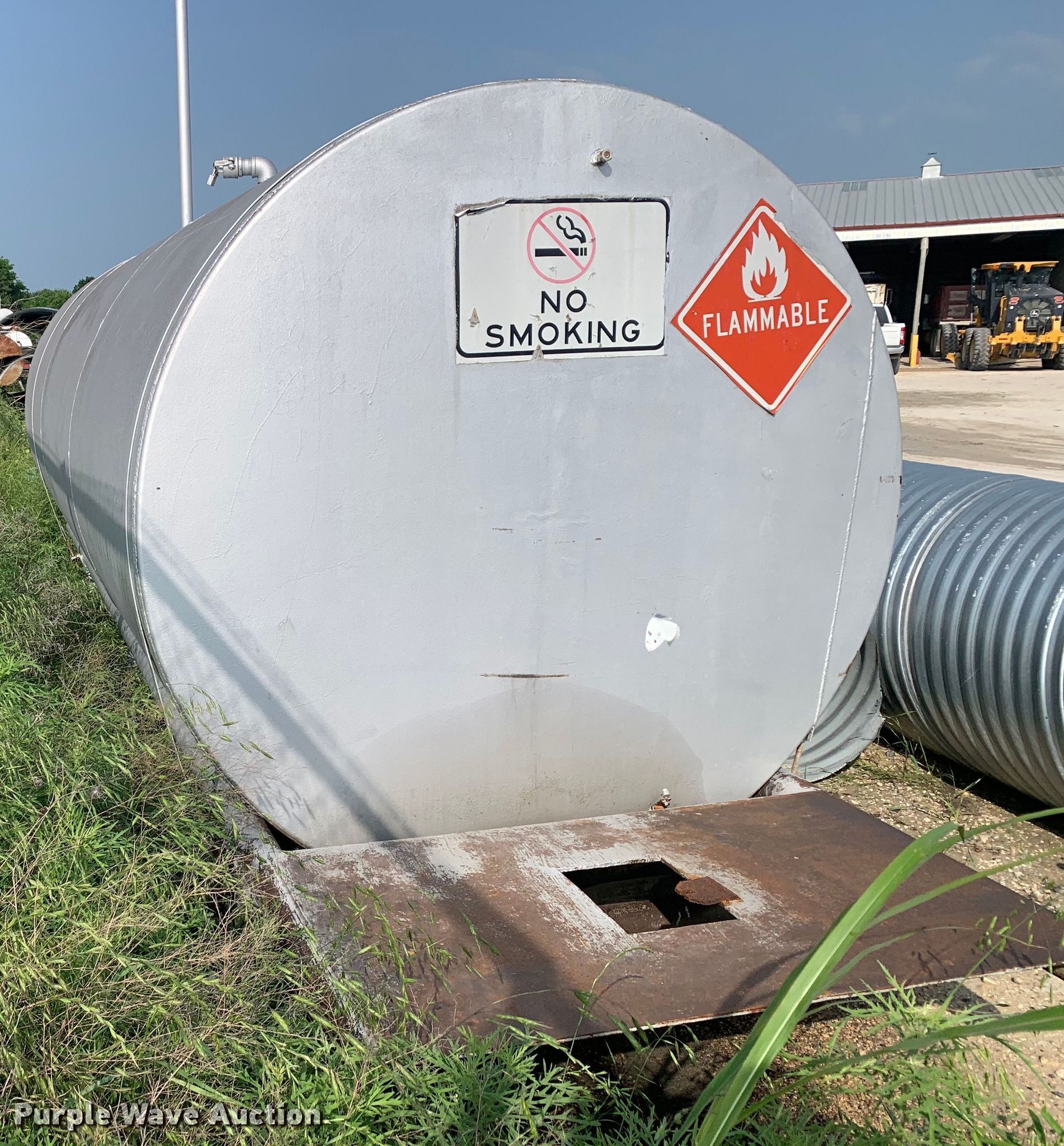 Purple Wave is selling a used Fuel and Lube in Texas. This item is a Fuel tank with the following: Dimensions: 15' L x 64" H, Capacity: 2,500 gal, Skid mounted