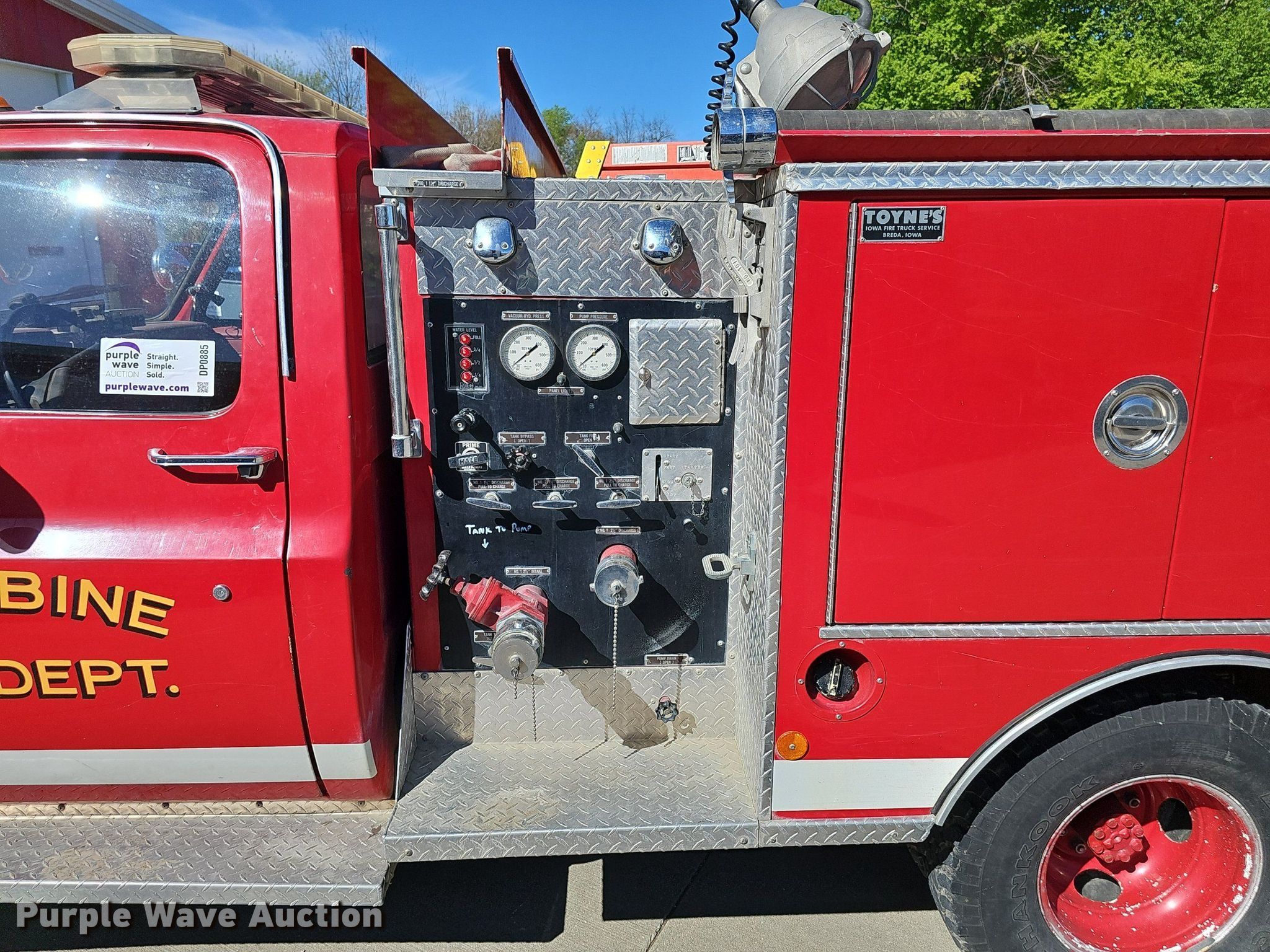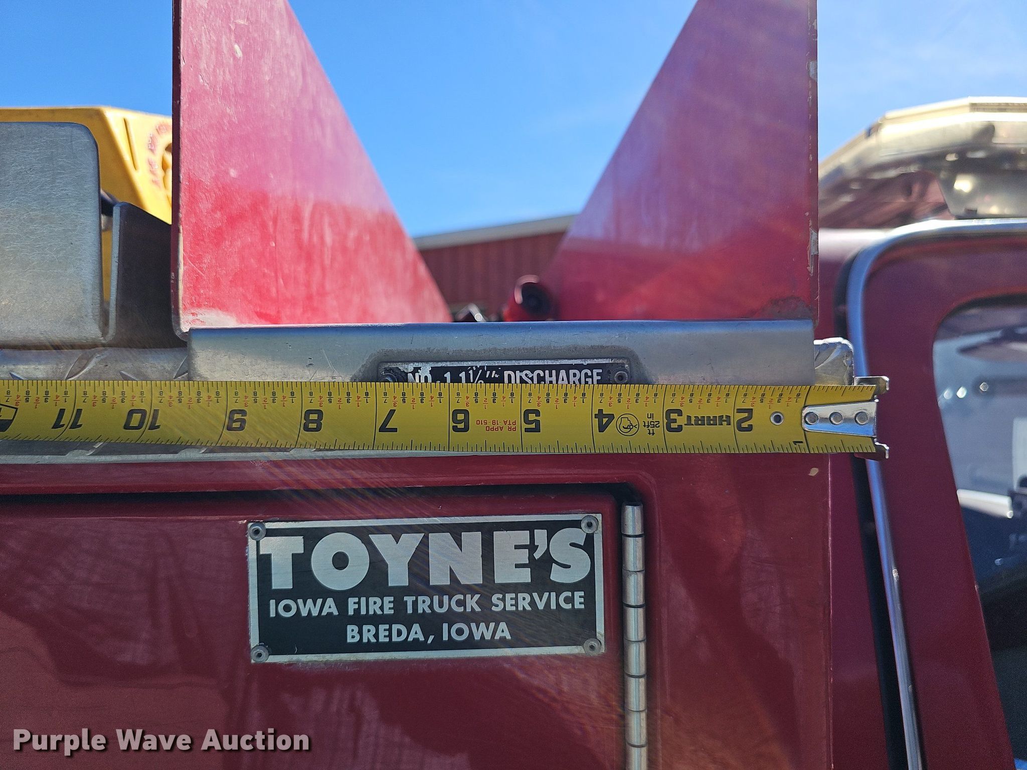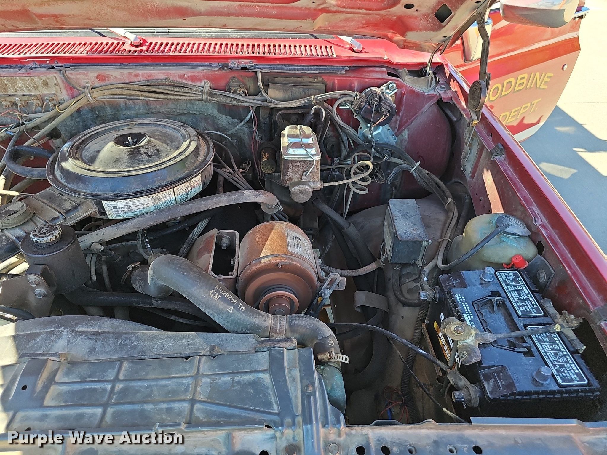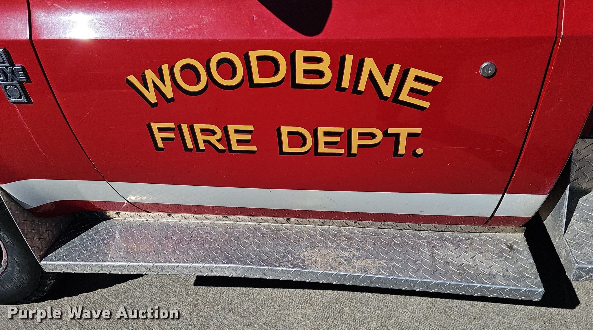 1983 Chevrolet Custom Deluxe K30 brush fire truck. Miles: 15,018 on odometer, VIN: 1GBJK34W2DV118417. Engine Displacement: 7.4L V8 OHV, Cylinders: 8, Fuel type: Gas. Transmission Manual, Speed: 4. Chassis Four wheel drive, Axles: Single, Suspension: Spring, Brakes: Hydraulic. Interior AC, Heat. Features Fire truck body Toyne's, 11' L x 87" W, Pump, PA/ siren controls. Tires Size: LT235/85R16. Notes Contents not included. Iowa title. Seller is a government entity who will be assigning and distributing the title. Please contact the seller for distribution questions. Woodbine Fire Department. Woodbine, IA 51579