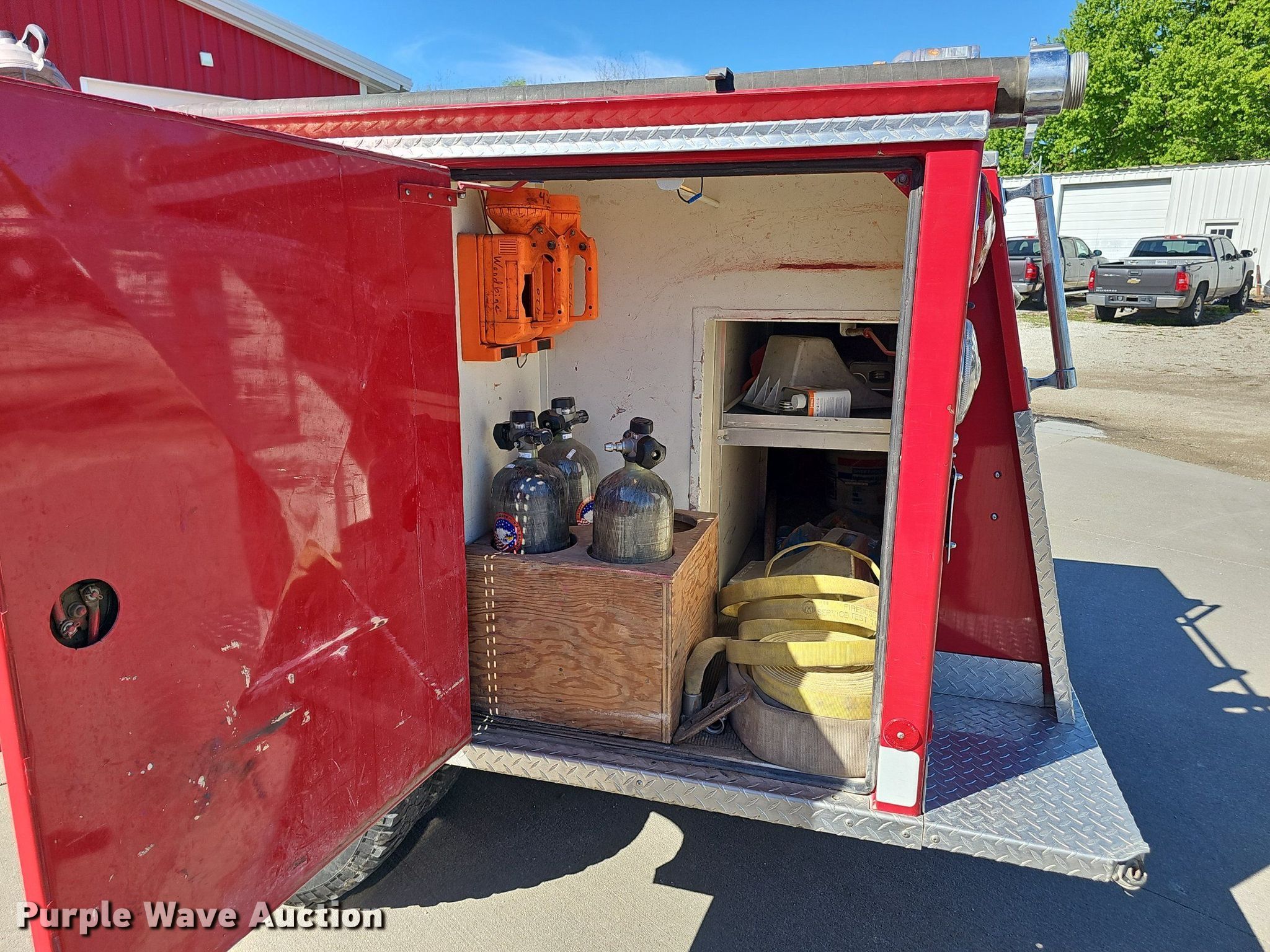This 1983 Chevrolet Custom Deluxe K30 brush fire truck will sell to the highest bidder regardless of price.