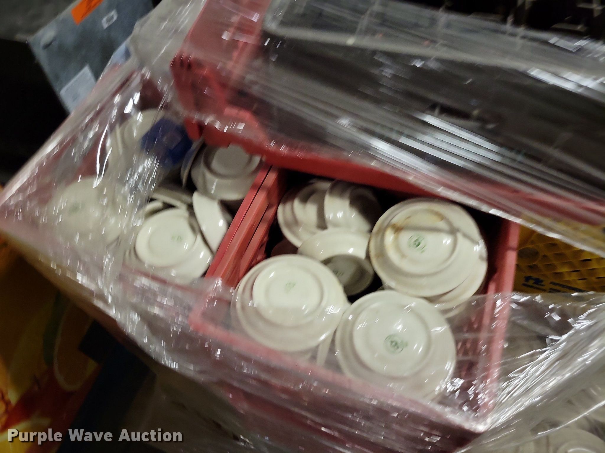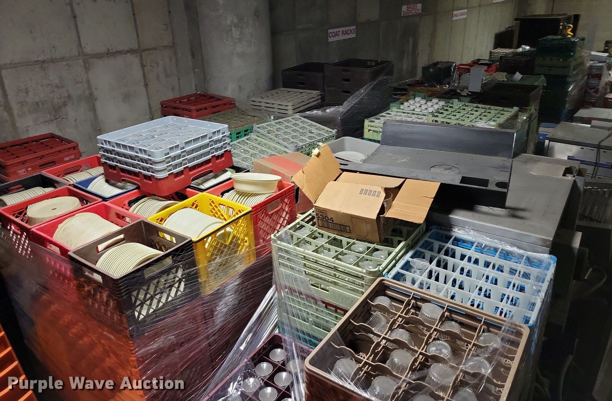 Purple Wave is selling a used Restaurant Equip. in Missouri. This item is a Restaurant equipment with the following: Coolers, Grills, Ovens, Plates, Bowls, Serving items, Cups, Crates