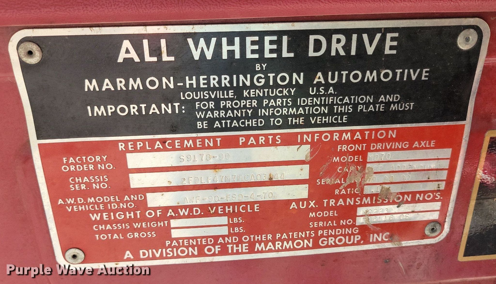 Purple Wave is selling a used Fire Truck or Emergency Vehicle in Missouri. This item is a 1991 Ford F450 Super Duty brush fire truck with the following: Miles: 29,961 on odometer, VIN: 2FDLF47M7MCA03144