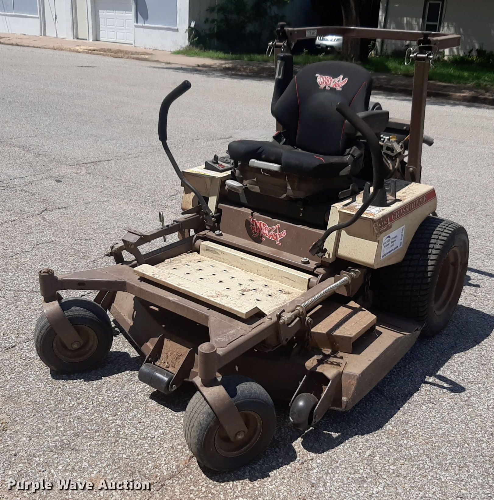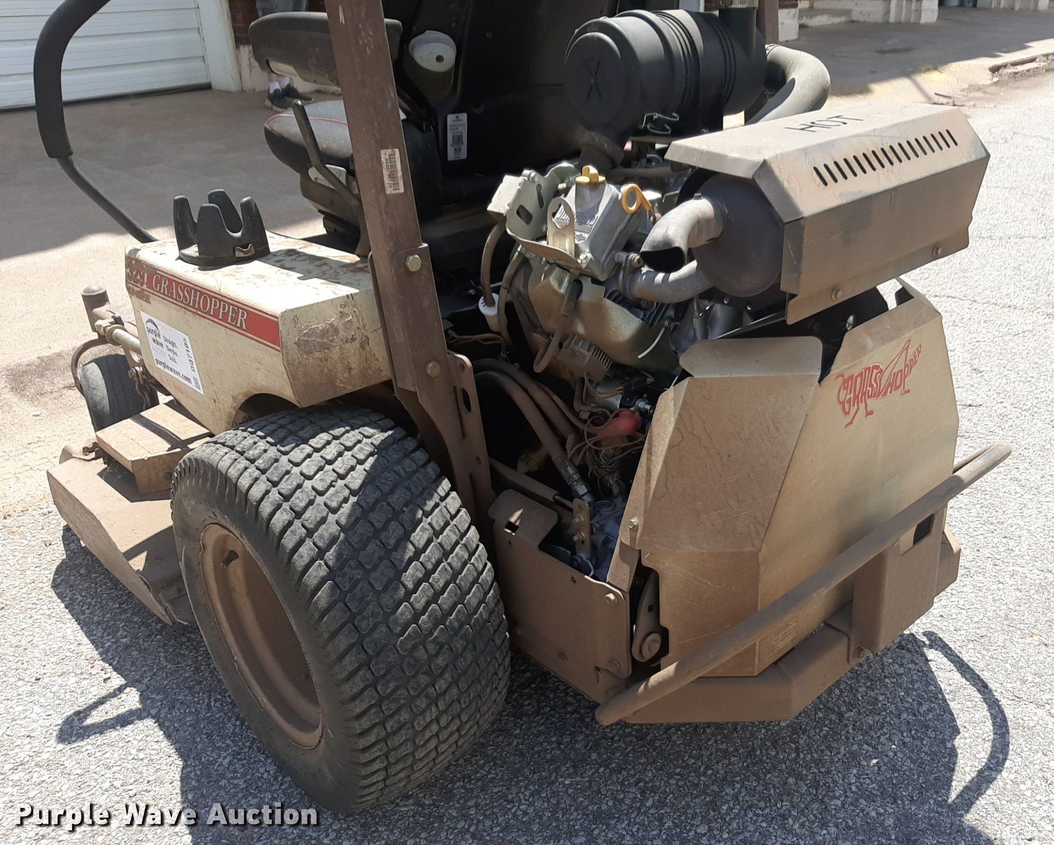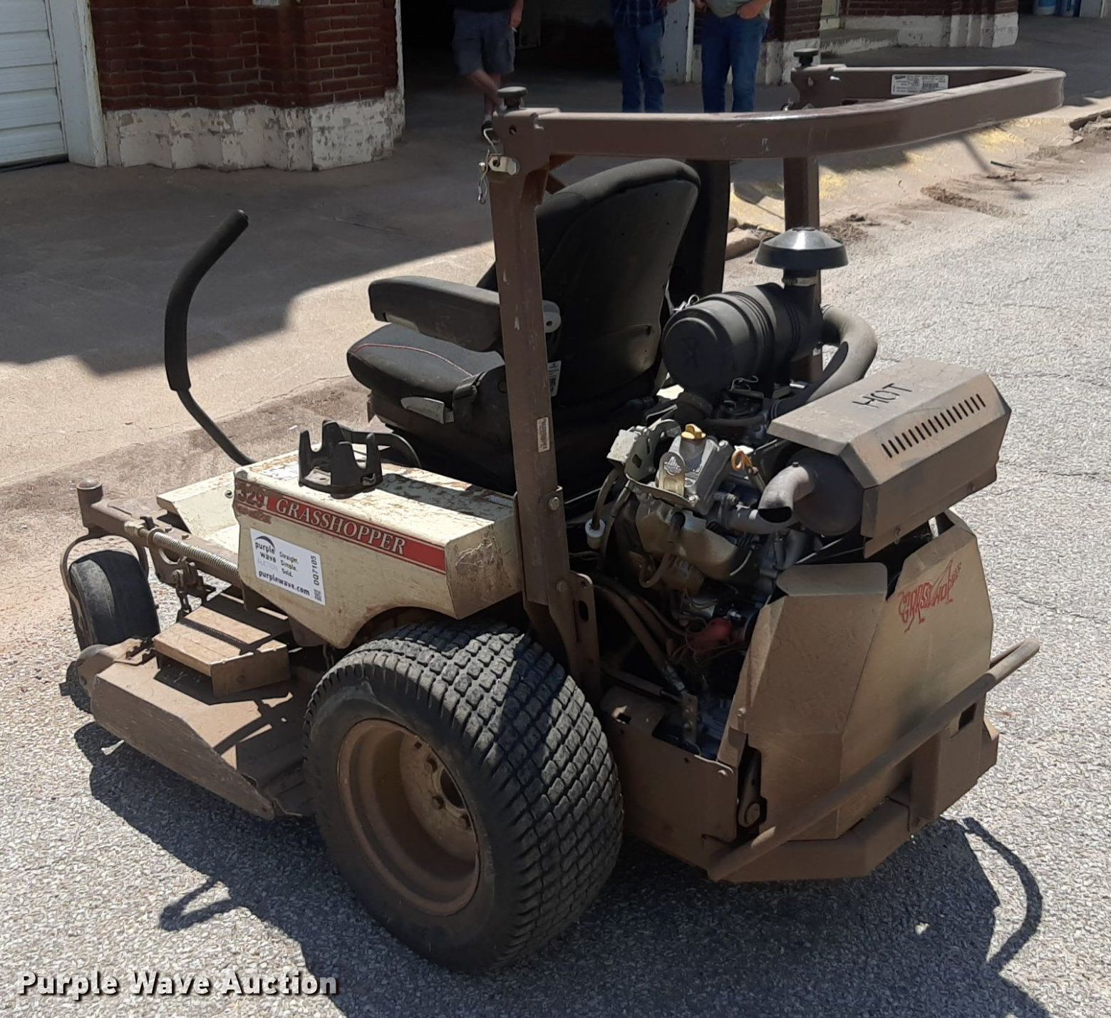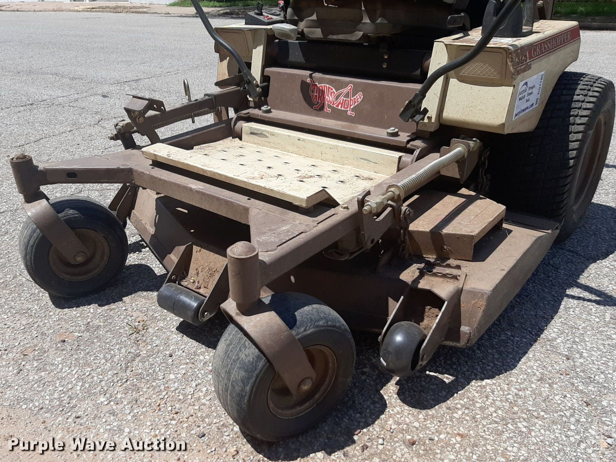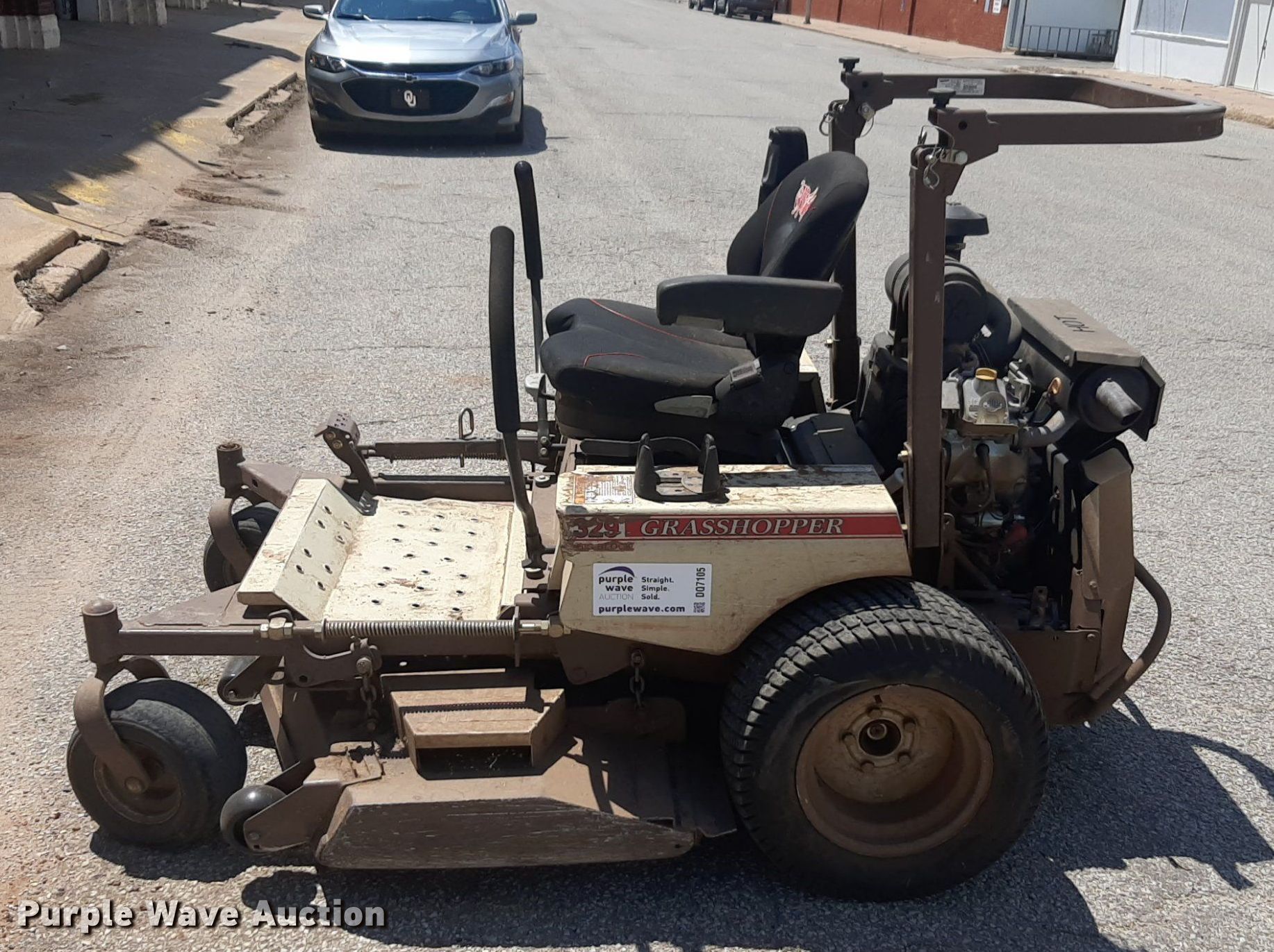 Purple Wave is selling a used Lawn Mower in Oklahoma. This item is a Grasshopper 329B ZTR lawn mower with the following: Hours: 989 on meter, Cutting width: 52", Serial: 6718528