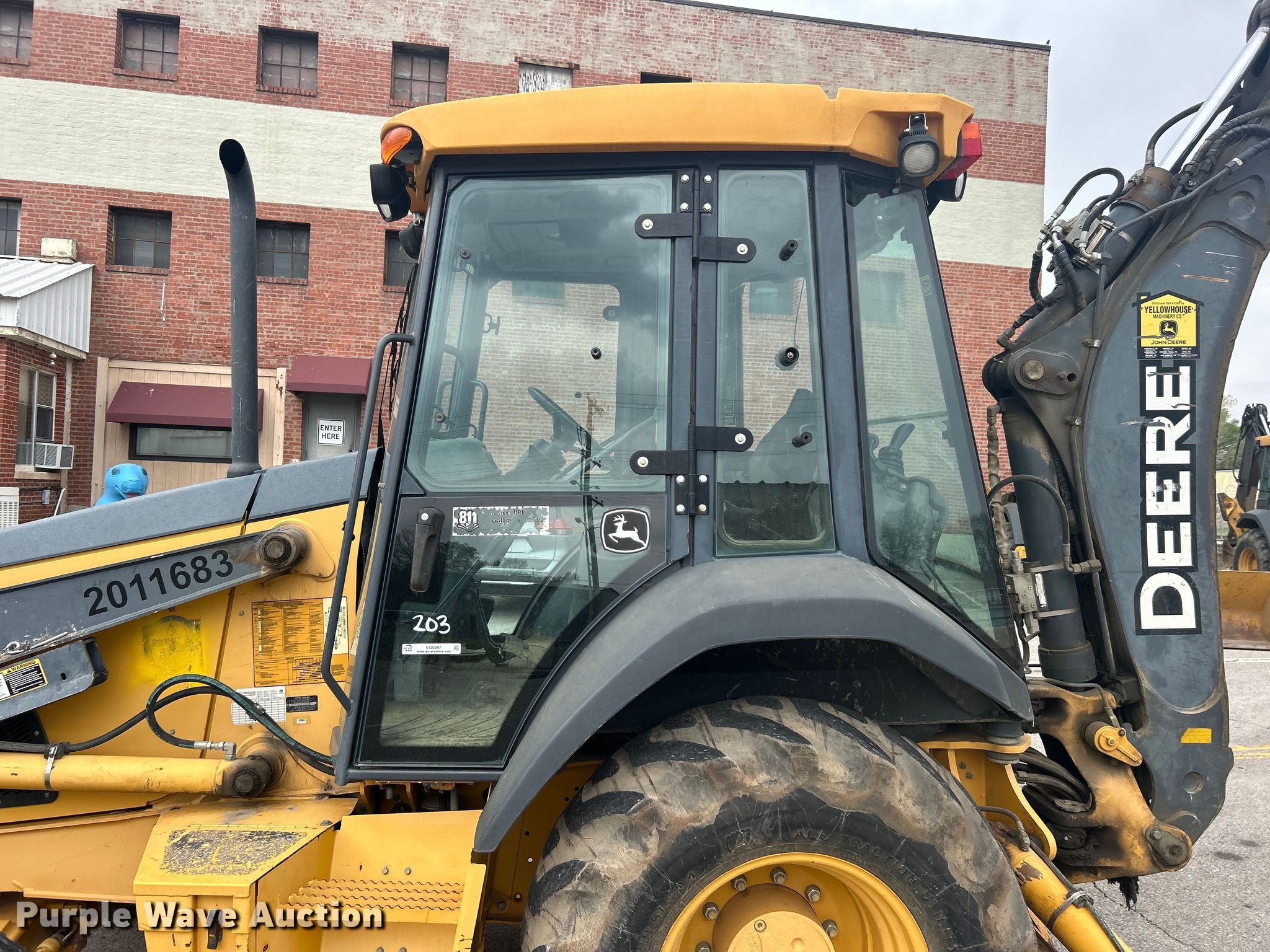 2011 John Deere 310SJ backhoe. Hours: 6,922 on meter, Serial: 1T0310SJCBD209736, Unit #: 203. Engine John Deere, Cylinders: 4, Fuel type: Diesel. Transmission Powershift, 4F - 4R. Chassis Differential lock. Operators station Enclosed cab, AC, Heat, Backhoe controls: Wobble stick / two stick. Features Loader Bucket John Deere AT308080, Bucket leveler, Capacity: 1.3 cu.yd., Width: 90", Cutting edge: Bolt-on, Backhoe Extendable stick, Quick coupler: Manual, Auxiliary hydraulics. Tires Front: 11L-16SL, Rear: 19.5L-24. City of Tulsa. Tulsa, OK 74120