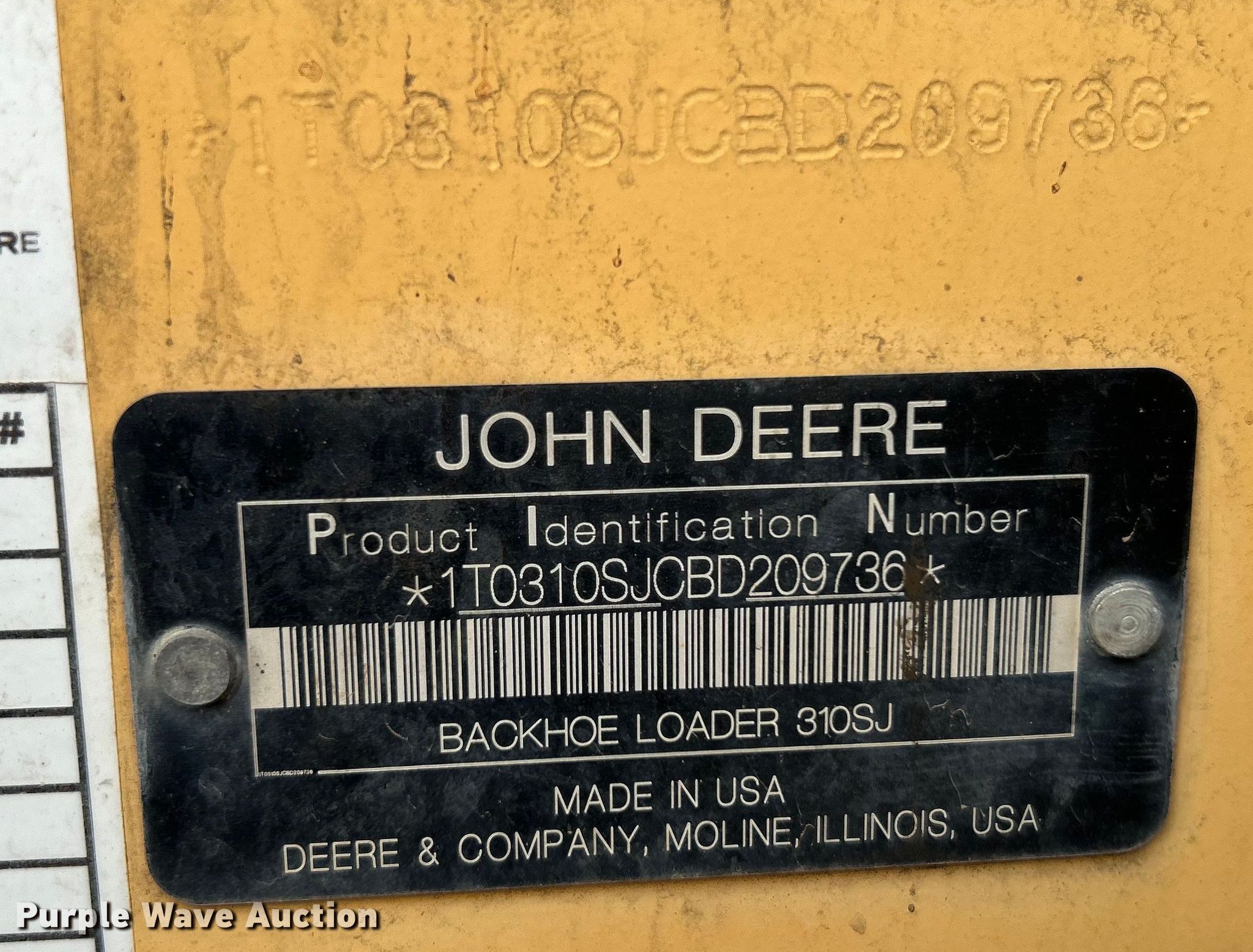 Purple Wave is selling a used Tractor Loader Backhoe in Oklahoma. This item is a 2011 John Deere 310SJ backhoe with the following: Hours: 6,922 on meter, Serial: 1T0310SJCBD209736, Unit #: 203