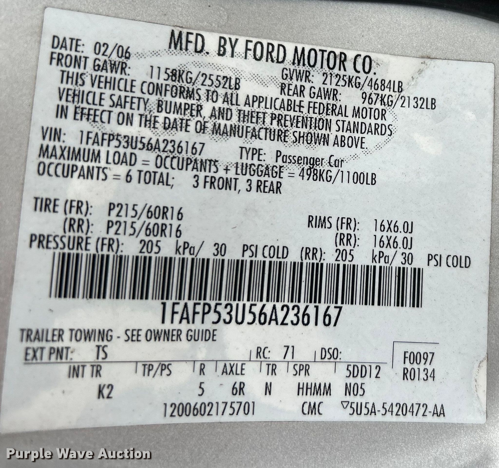 Purple Wave is selling a used Passenger Vehicle in Oklahoma. This item is a 2006 Ford Taurus with the following: Miles: 89,214 on odometer, VIN: 1FAFP53U56A236167, Unit #: 605
