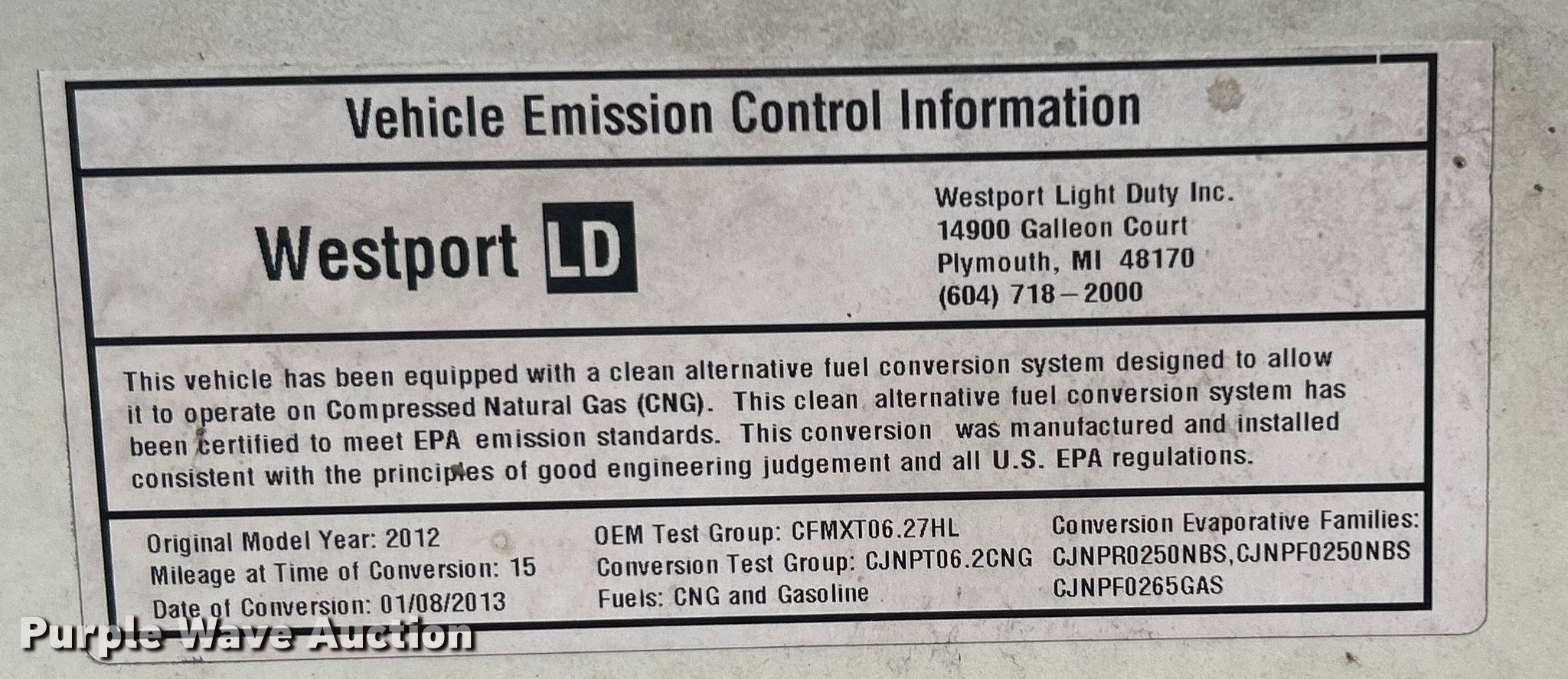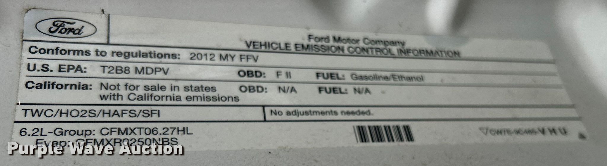 2012 Ford F250 Super Duty pickup truck. Miles: 77,135 on odometer, VIN: 1FTBF2B65CEC95978, Unit #: 600. Engine Displacement: 6.2L V8 OHV, Cylinders: 8, Fuel type: Gas, CNG. Transmission Automatic, Four wheel drive. Interior AC, Heat, Cruise control. Features End gate lift Palfinger E38-60, Maximum lift capacity: 1,000 lbs. Tires Size: LT245/75R17. Notes Dead battery, Unknown operating condition of end gate lift. Oklahoma title. Seller is a government entity who will be assigning and distributing the title. Please contact the seller for distribution questions. Title distribution may be delayed up to 30 days from verification of funds. City of Tulsa. 108 N Trenton Ave. Tulsa, OK 74120