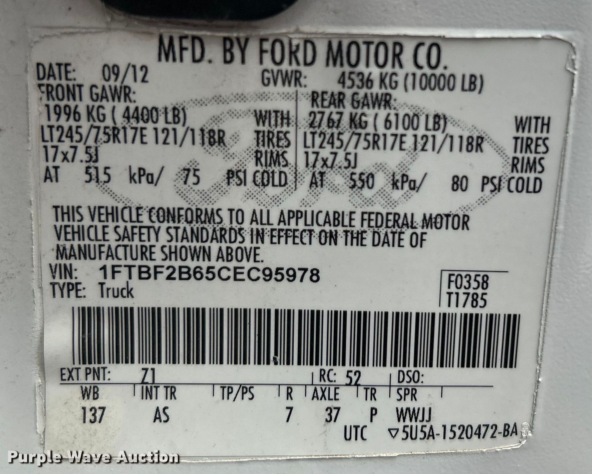 Purple Wave is selling a used 3/4 or 1 Ton Pickup or Van in Oklahoma. This item is a 2012 Ford F250 Super Duty pickup truck with the following: Miles: 77,135 on odometer, VIN: 1FTBF2B65CEC95978, Unit #: 600