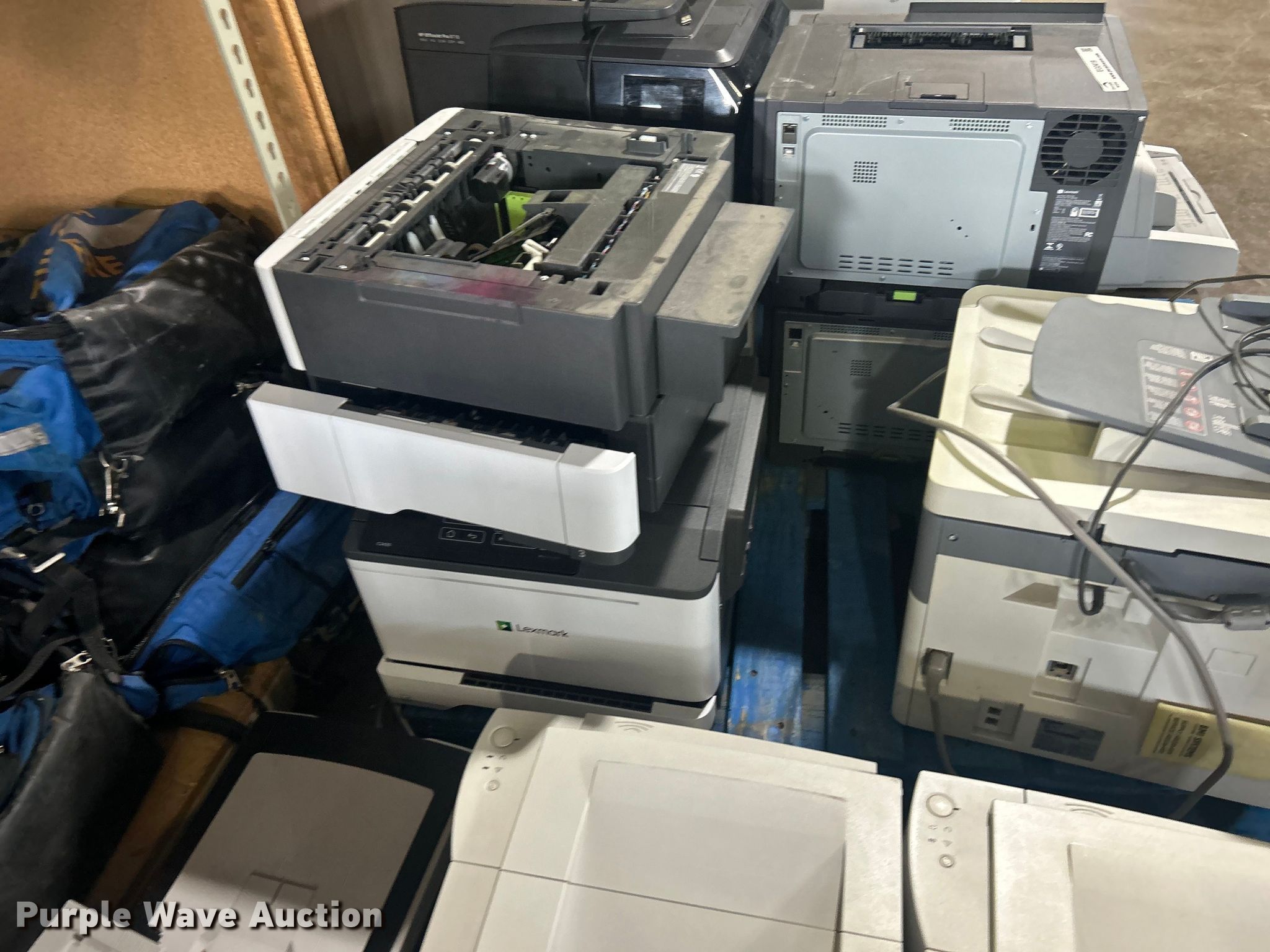 Purple Wave is selling a used Copy or Printing Machine in Oklahoma. This item is a Approximately 15 printers with the following: Panasoinc KV-S405 5C, Source Technology ST9630, HP, Lexmark, Canon, Unit #: 1016