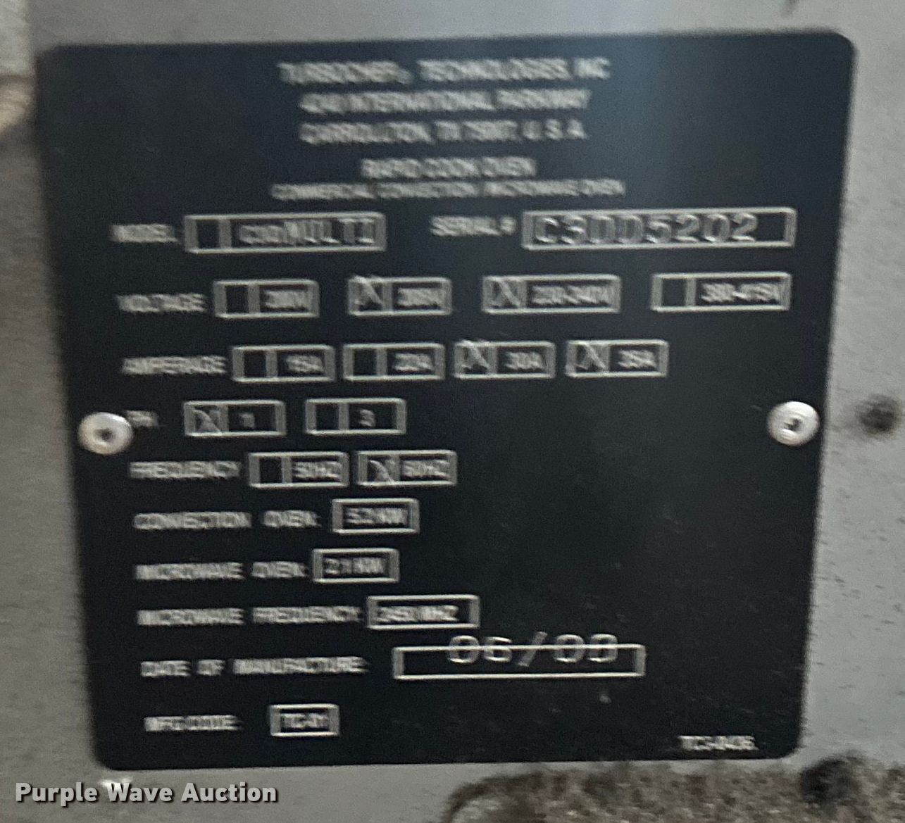 Purple Wave is selling a used Restaurant Equip. in Oklahoma. This item is a Turbo Chef C3/D convection oven with the following: Unit #: 1014