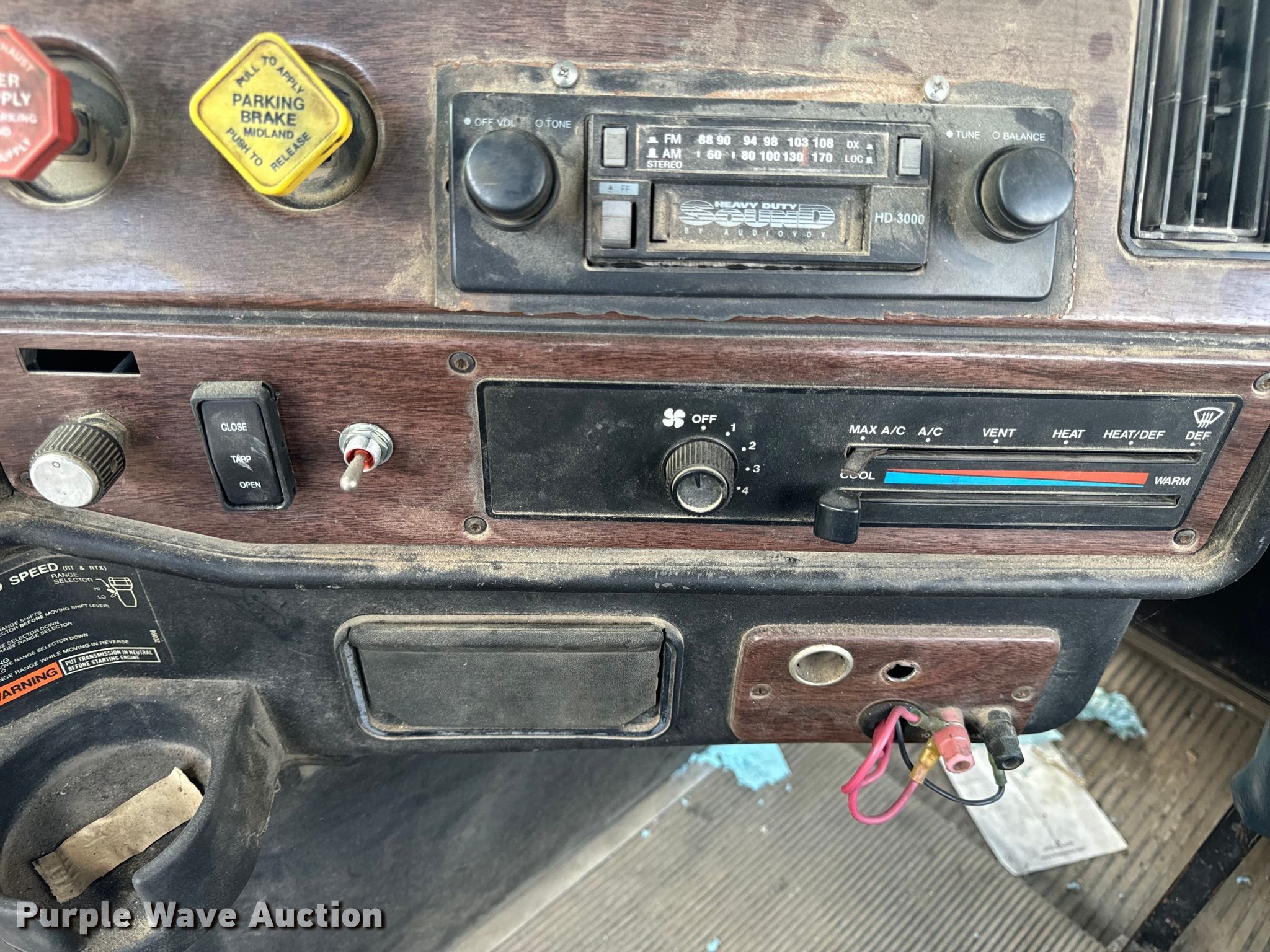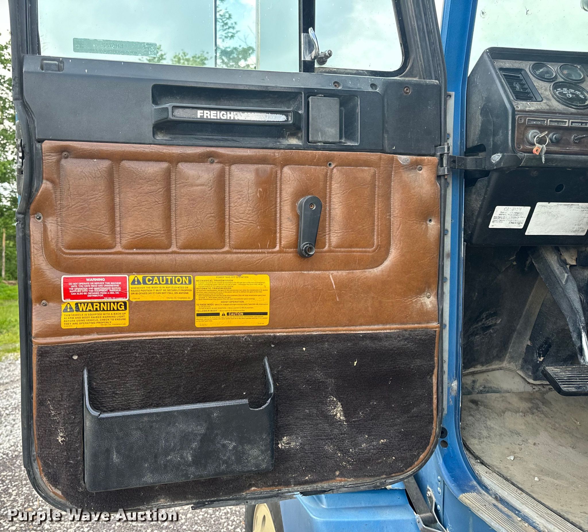 1990 Freightliner FLD120 semi truck. Miles: 88,342 on odometer, VIN: 1FUYDCYB9LP379048, Unit #: 19. Engine Cummins, Displacement: 14.0L, Cylinders: 6, Fuel type: Diesel. Transmission Eaton Fuller, Manual, Speed: 9. Chassis Axles: Tandem, Differential lock: Inter-axle, Suspension: Spring, Brakes: Air. Interior AC, heat, Heated mirrors. Features Deck plate: Aluminum, Fifth wheel type: Fixed, Fuel tank: Dual. Tires Size: 11R24.5. Notes Windshield chipped or cracked, Dead battery, Air leak, Non-operational AC. Missouri title. Title distribution may be delayed up to 14 days from verification of funds. Cooper County, MO. Boonville, MO 65233