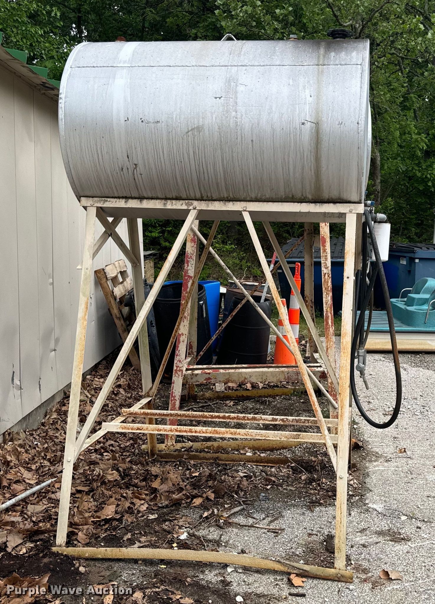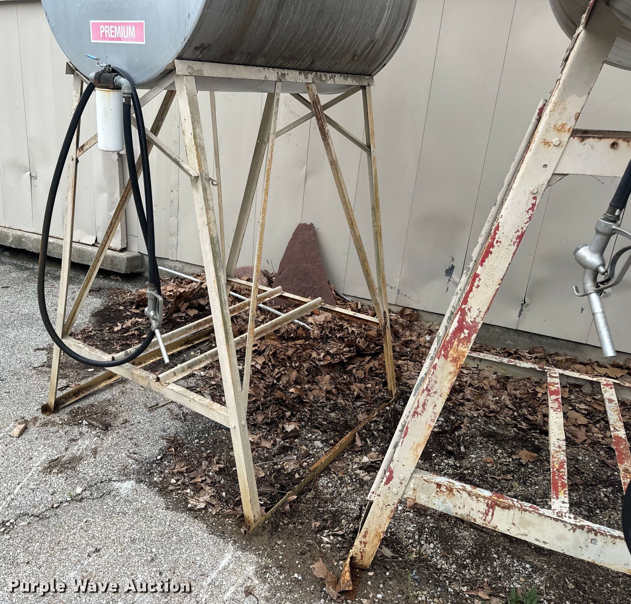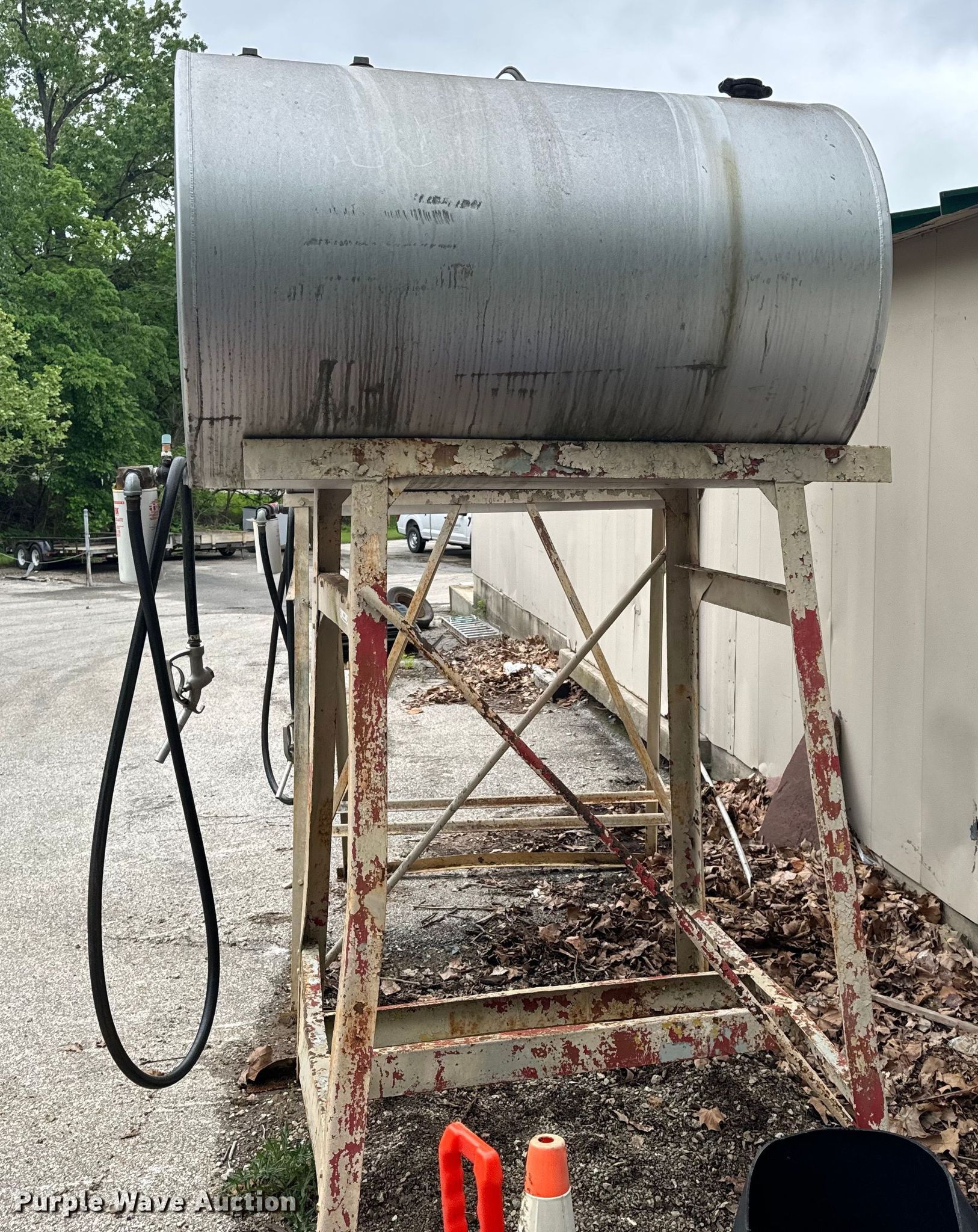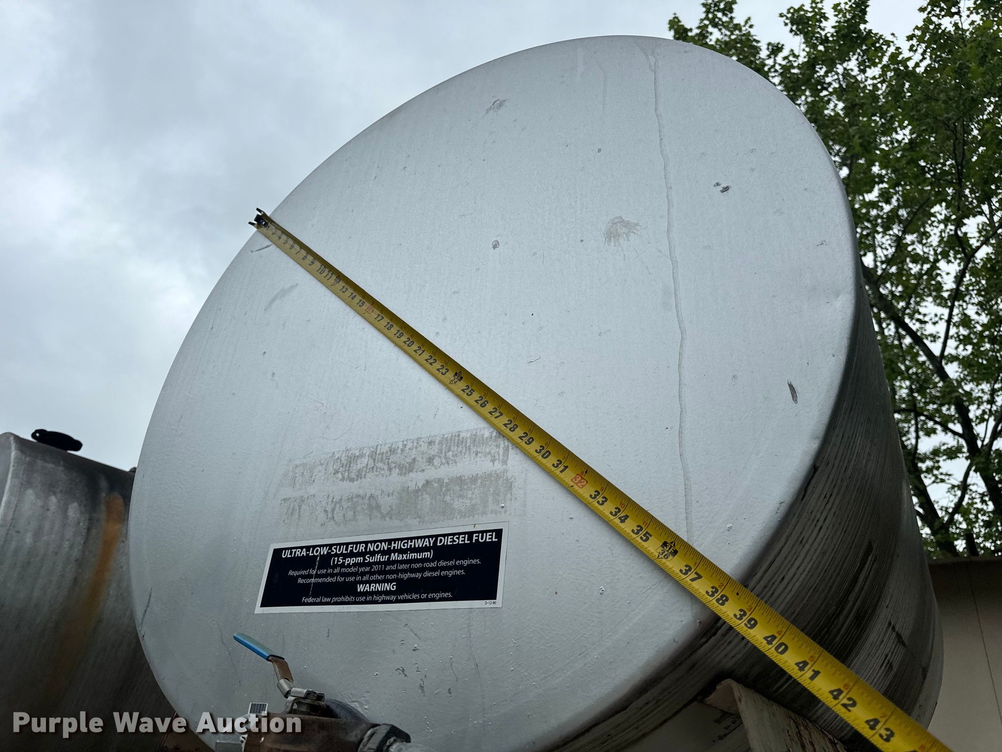 Purple Wave is selling a used Fuel and Lube in Missouri. This item is a (2) fuel tanks with the following: Diesel tank, Nozzle, Hose, Gas Tank, Nozzle, Hose, Diameter: 38", Length: 61"