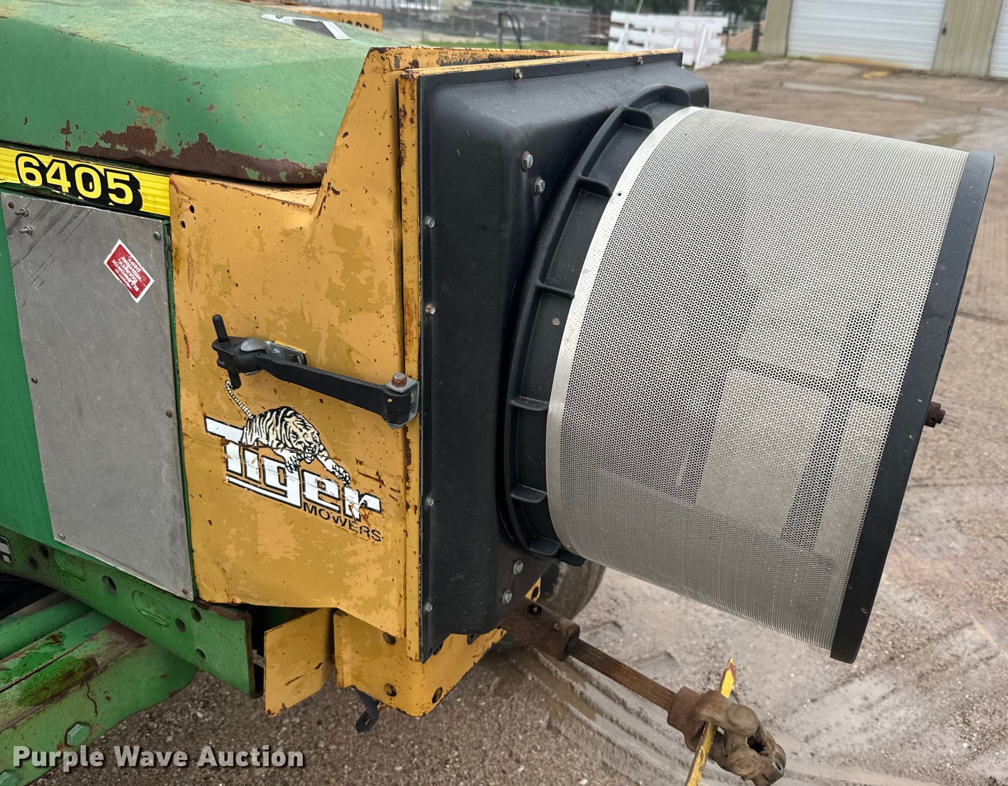 2000 John Deere 6405 tractor. Hours: Unknown, Serial: L06405J303634. Engine John Deere, Cylinders: 4, Fuel type: Diesel. Transmission Synchro, 16F - 16R, Left-hand reverser. Operators station AC, Heat. Features PTO: 540, Three point, Seven pin outlet, Hydraulic remote sets Rear: 2, Side mower Tiger, Cutting width: 60". Tires Front: 10.00-16, Rear: 18.4-34. Notes Non-operational Mower, Three point, PTO, Transmission issues, doesn't stay in gear. Ellsworth County Hwy Dept. Ellsworth, KS 67439
