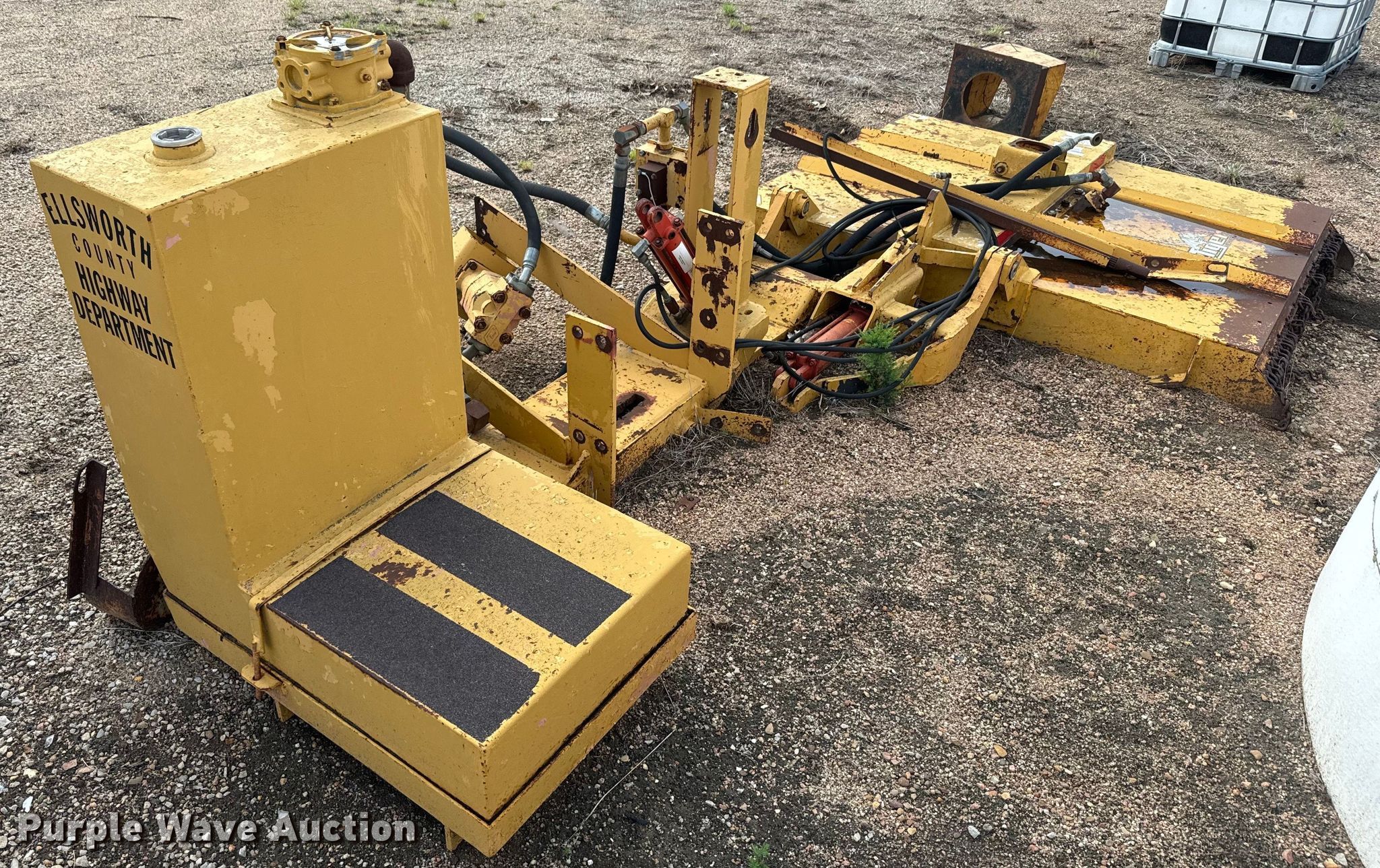 Tiger side boom rotary mower. Features. Width: 60", Hydraulic fold. Notes Hydraulic drive motor missing, Other parts may missing, Non-operational unit. Ellsworth County Hwy Dept. Ellsworth, KS 67439