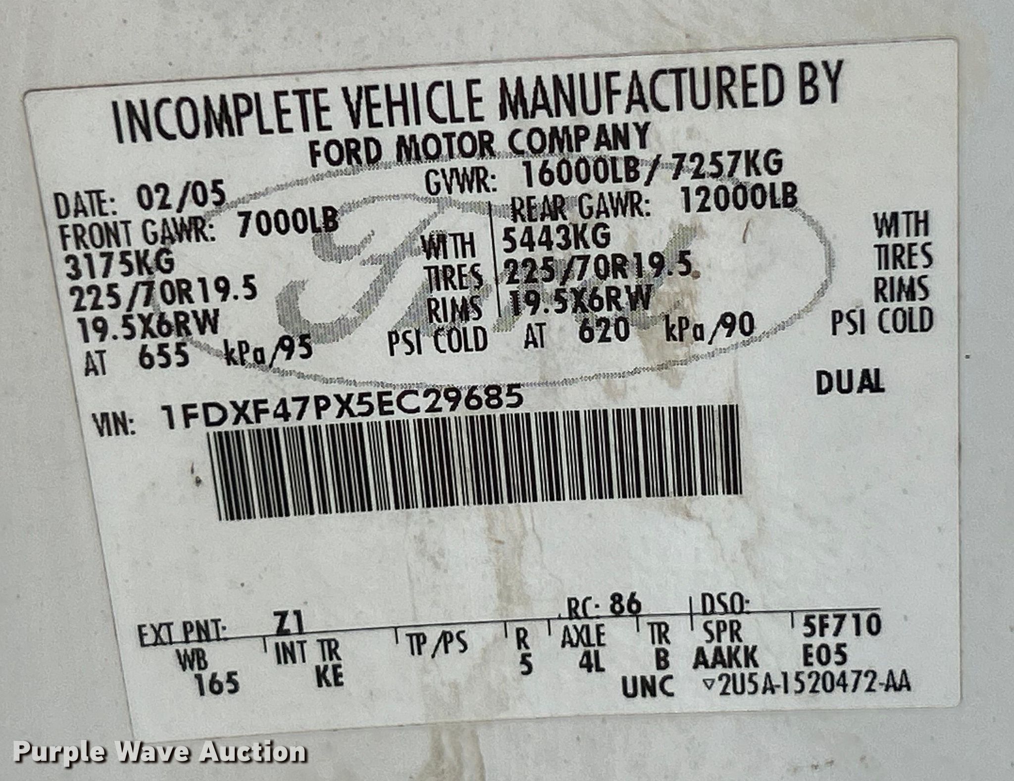 - VIN: 1FDXF47PX5EC29685