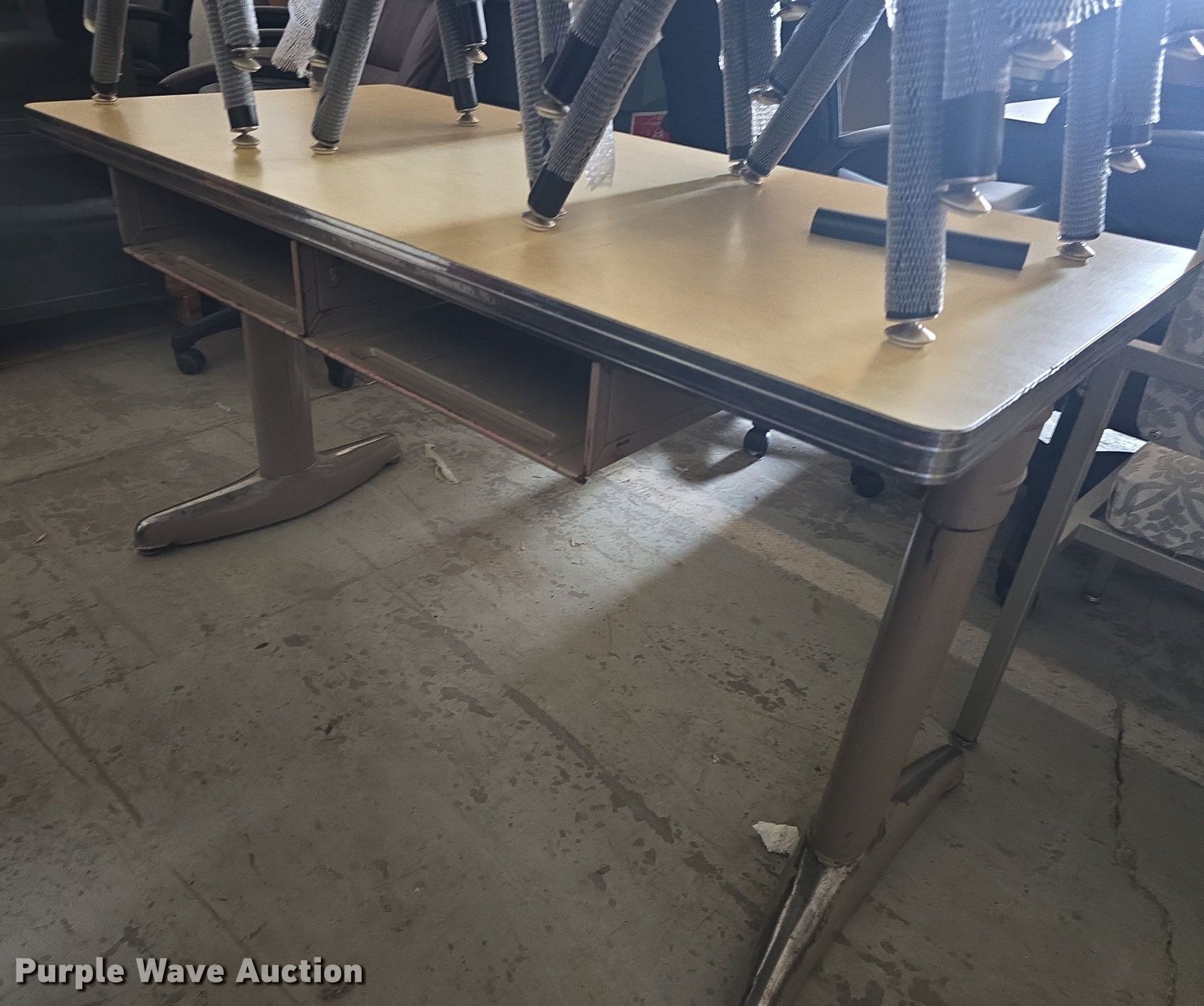 Purple Wave is selling a used Furniture in Kansas. This item is a Furniture with the following: Nurses bed, (7) desks, Table, (2) Bookcases, Desk credenza