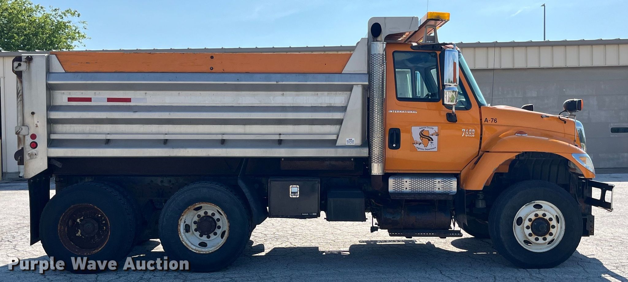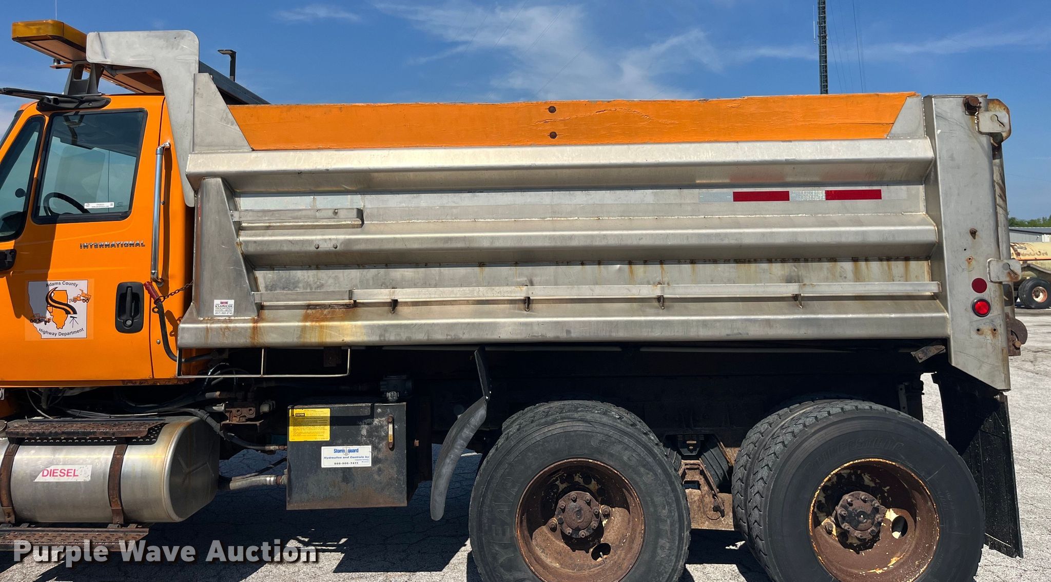 2004 International 7400 dump truck. Miles: 106,322 on odometer, Hours: 5,581 on meter, VIN: 1HTWHADT54J027453. Engine International DT530, Displacement: 8.7L, Cylinders: 6, Fuel type: Diesel. Transmission Automatic. Chassis Axles: Tandem, Differential lock: Inter-axle, Suspension: Spring over walking beam, Brakes: Air, PTO, GVWR: 56,000 lbs FAWR: 16,000 lbs, IAWR: 20,000 lbs, RAWR: 20,000 lbs, Wheelbase: 177". Interior AC, Heat, Heated mirrors, Power windows, Power locks, Cruise control. Features Dump bed 13' L x 95" W, Side height: 37", Side board height: 9.5", Bed type: Steel, Ram: Single, End gate: Manual. Tires Size: 11R22.5. Notes Dash warning indicator: ABS, Snow valve. View repairs. Illinois title. Seller is a government entity who will be assigning and distributing the title. Please contact the seller for distribution questions. Title distribution may be delayed up to 14 days from verification of funds. Adams County Highway Dept.. Quincy, IL 62305