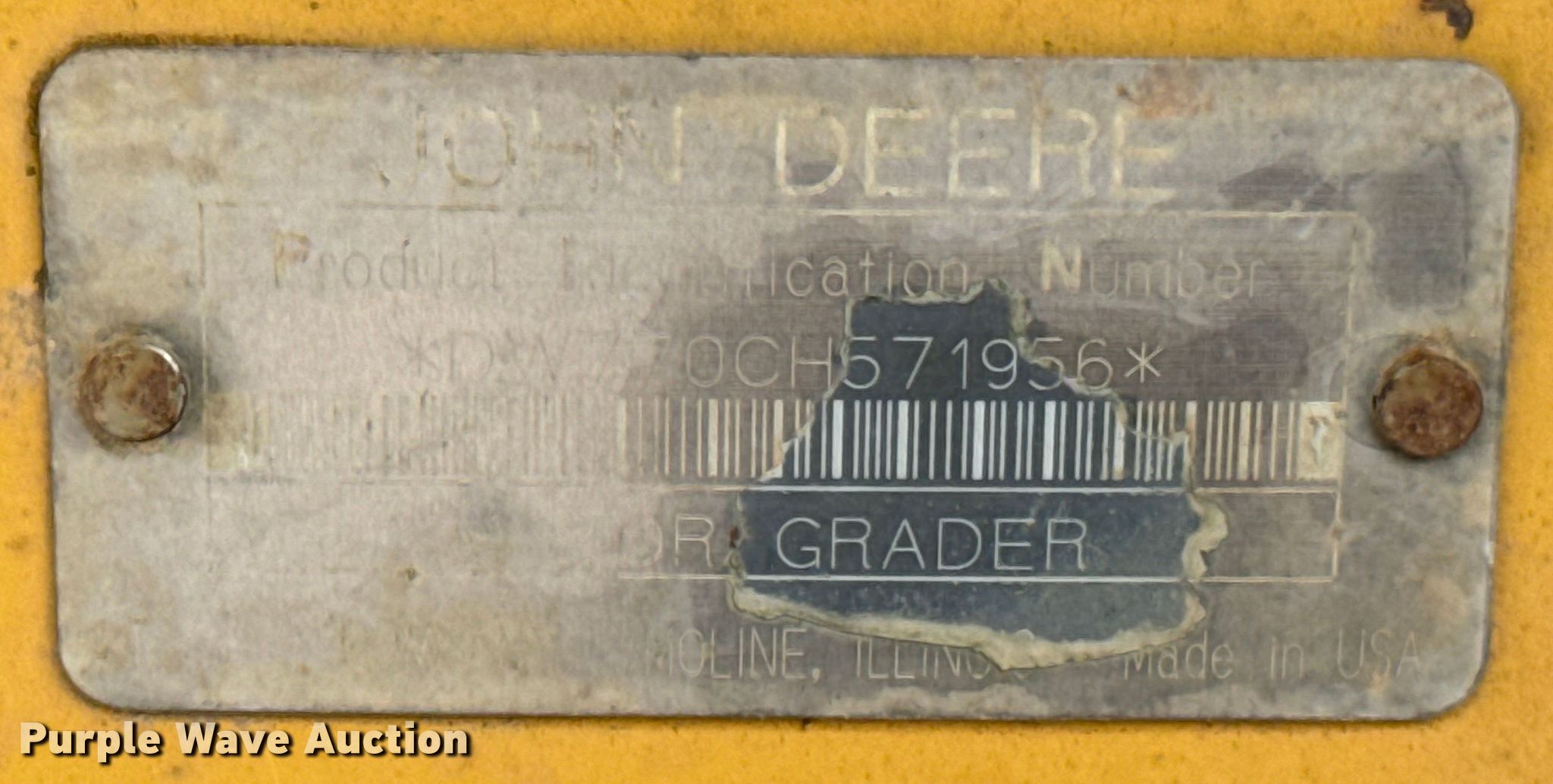Purple Wave is selling a used Motor Grader in Oklahoma. This item is a 1999 John Deere 770CH motor grader with the following: Hours: 8,907 on meter, Serial: DW770CH571956