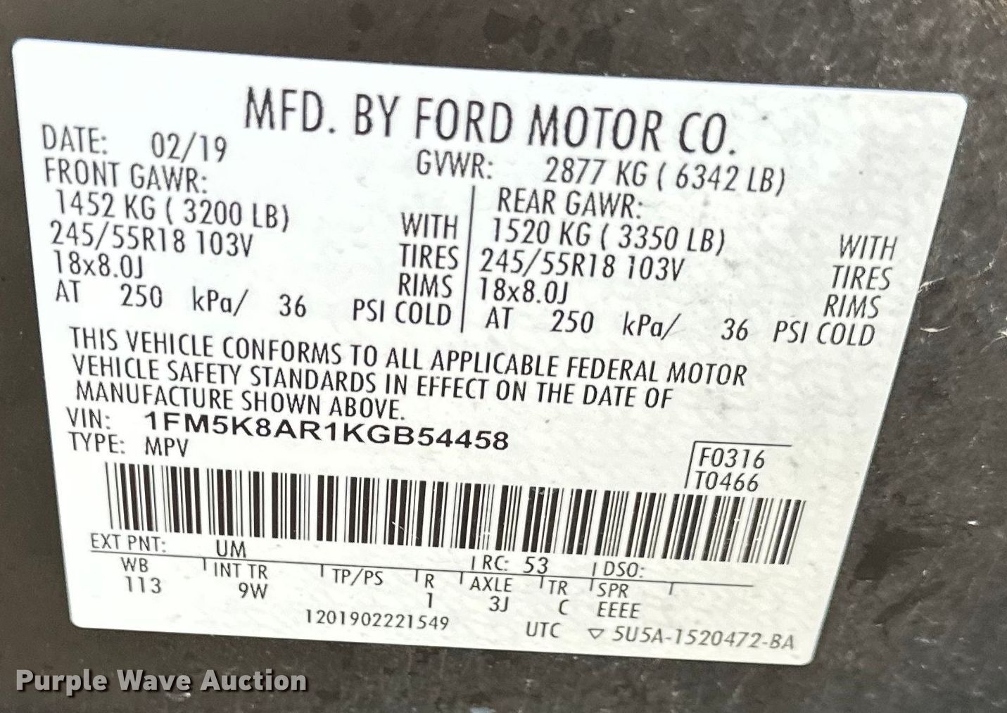 Purple Wave is selling a used Passenger Vehicle in Missouri. This item is a 2019 Ford Explorer Police Interceptor SUV with the following: Miles: 76,554 on odometer, VIN: 1FM5K8AR1KGB54458