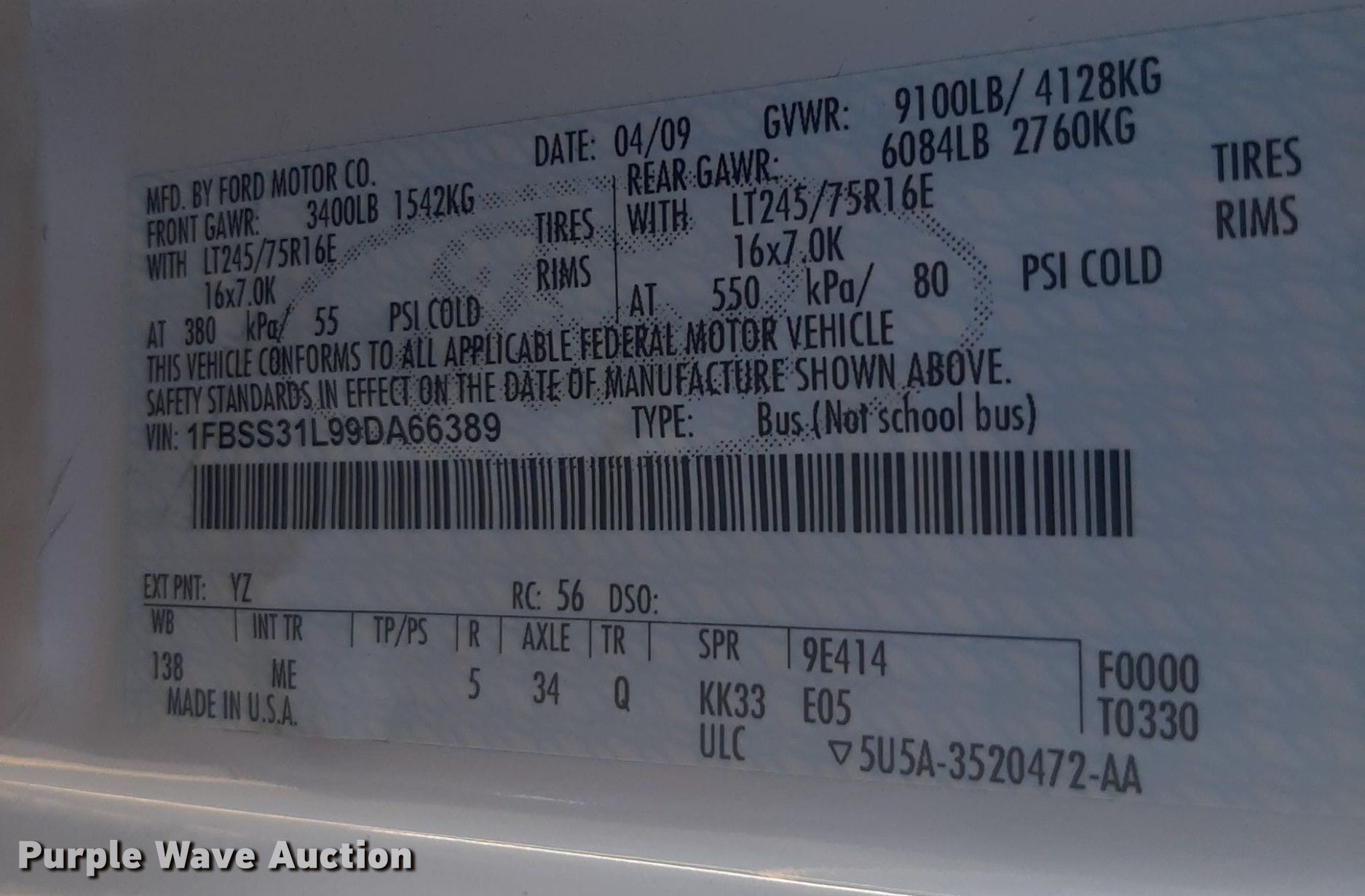 Purple Wave is selling a used Passenger Vehicle in Kansas. This item is a 2009 Ford E350 van with the following: Miles: 168,378 on odometer, Miles or hours may vary, unit still in use, VIN: 1FBSS31L99DA66389