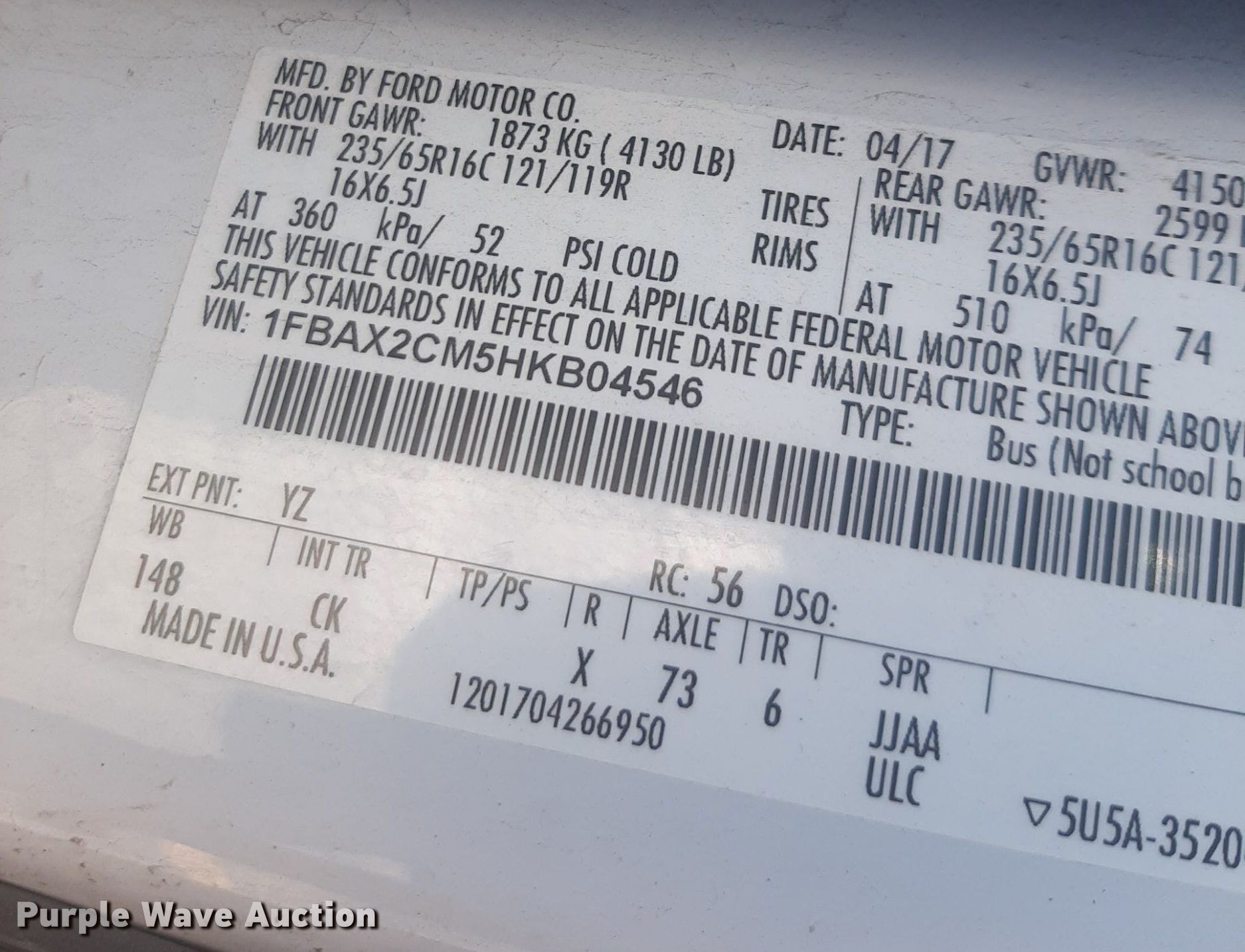 Purple Wave is selling a used Passenger Vehicle in Kansas. This item is a 2017 Ford Transit 350 Wagon van with the following: Miles: 94,761 on odometer, Miles or hours may vary, unit still in use, VIN: 1FBAX2CM5HKB04546