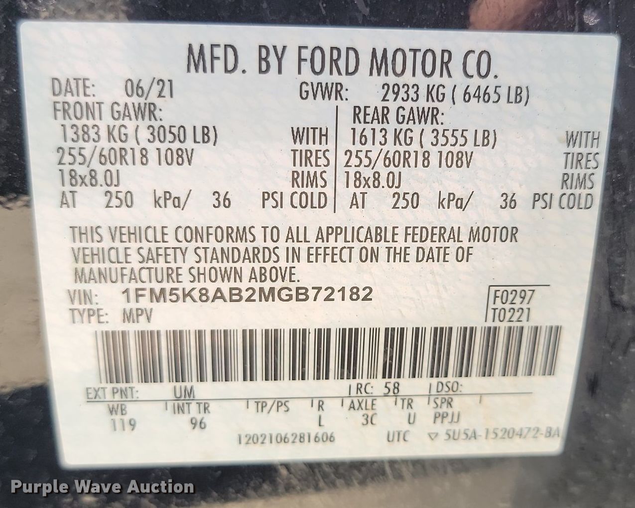 Purple Wave is selling a used Passenger Vehicle in South Dakota. This item is a 2021 Ford Explorers Police Interceptor SUV with the following: Miles: 26,925 on odometer, VIN: 1FM5K8AB2MGB72182