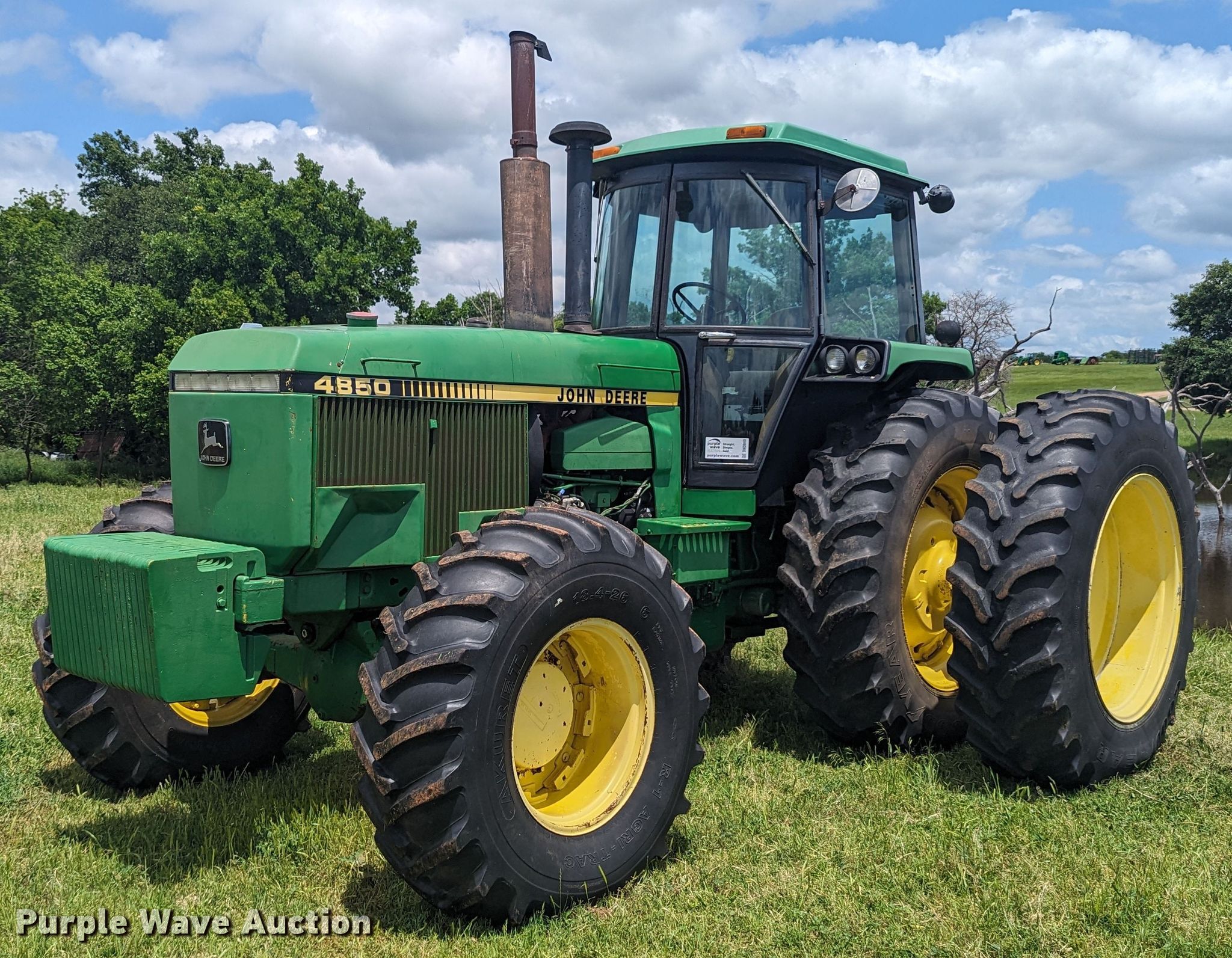 Purple Wave is selling a used Tractor in Oklahoma. This item is a 1988 John Deere 4850 MFWD tractor with the following: Hours: 6,999 on meter, Serial: RW4850P013778