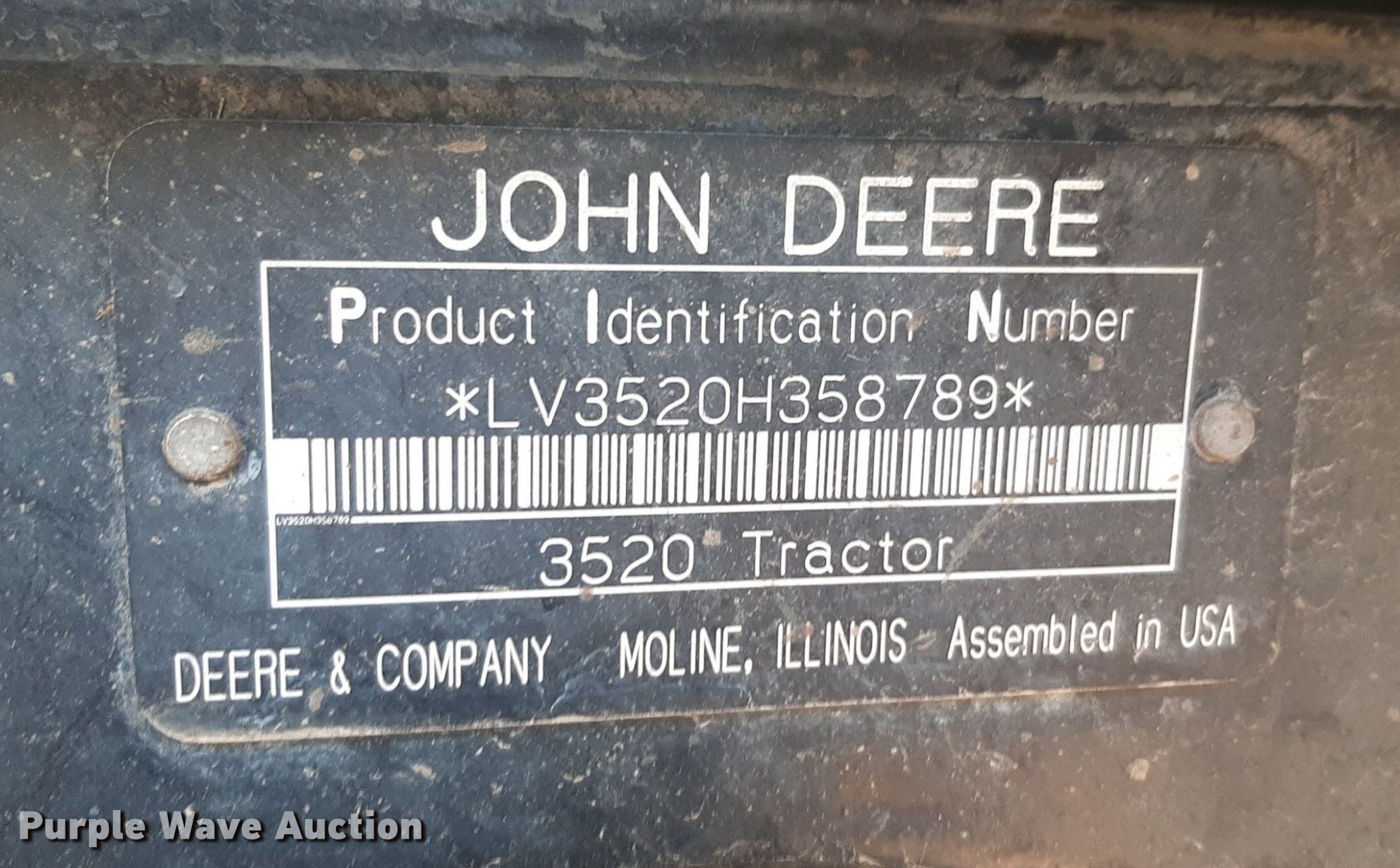 Purple Wave is selling a used Tractor in Kansas. This item is a 2007 John Deere 3520 MFWD tractor with the following: Hours: 693 on meter, Serial: LV3520H358789
