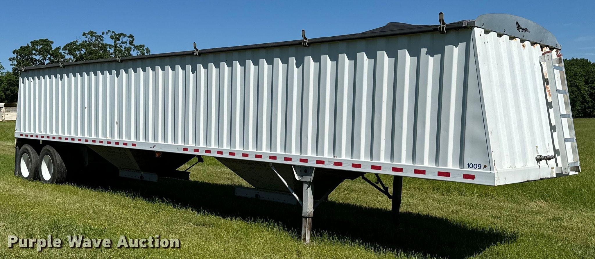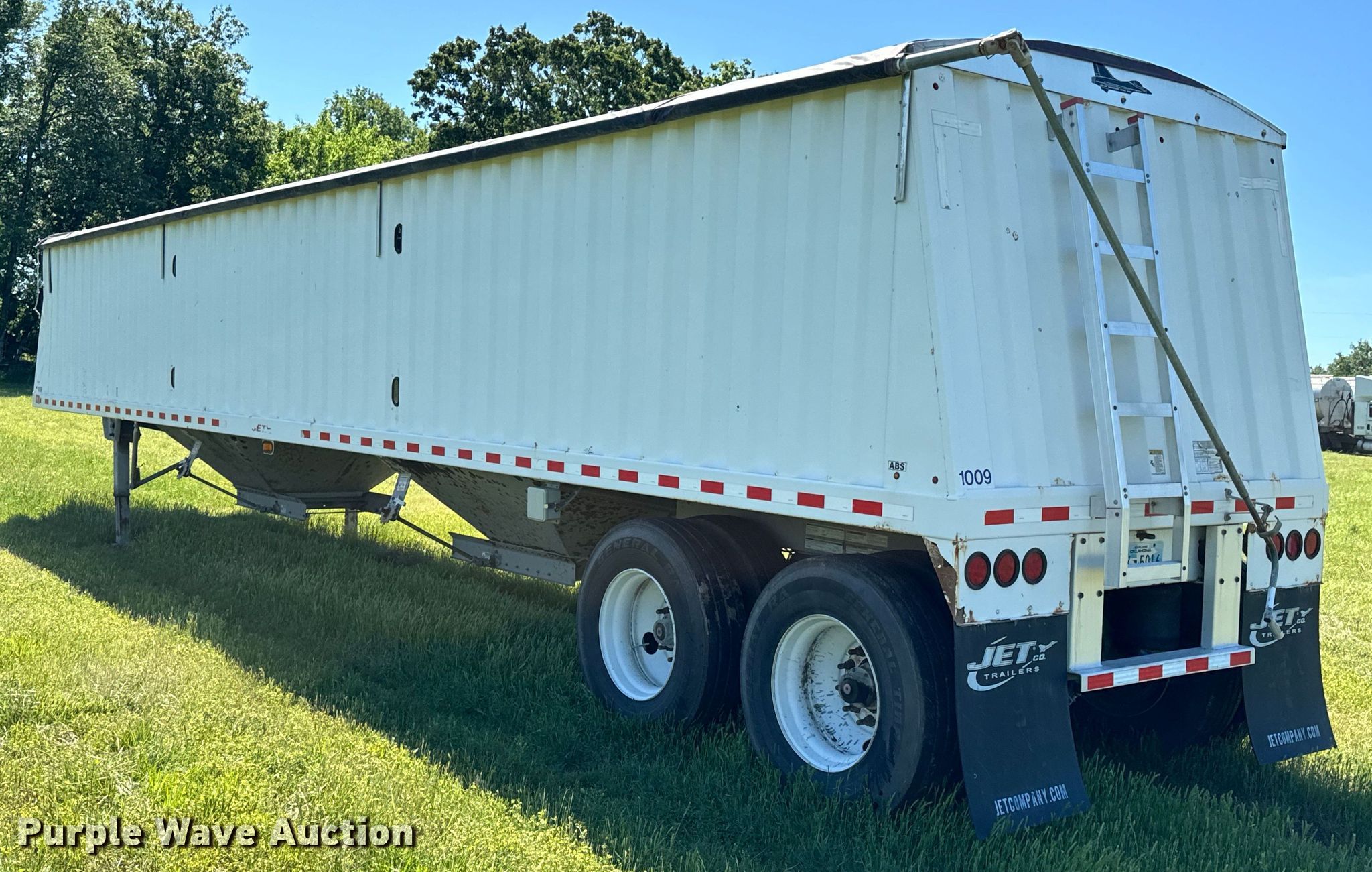 2019 JETCO KG-121 grain trailer. VIN: 5JNGS4221KH000378. Dimensions Overall: 42' L x 8' W, Side height: 5' 8". Features Body type: Steel, Hoppers: Double Trap gates: Manual, Roll tarp, Rear Sight windows. Chassis Landing gear: Dual, Suspension: Air, Brakes: Air, Axles: Tandem, GVWR: 68,000 lbs, GAWR: 25,000 lbs. Tires Steel wheels, Size: 11R22.5. Oklahoma title. Title distribution may be delayed up to 14 days from verification of funds. Jamz Trucking Inc.. Langley, OK 74350