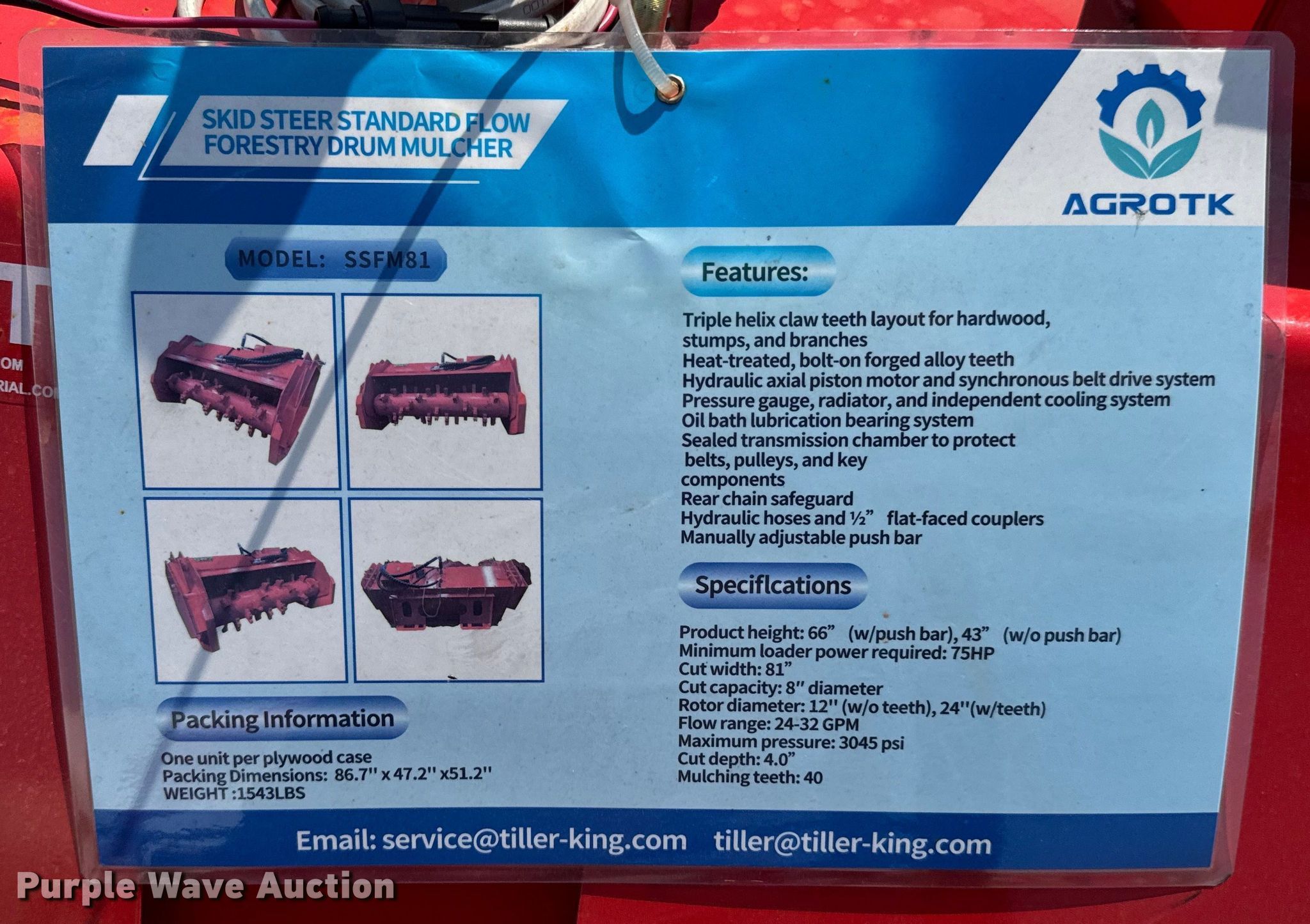 This 2024 TopCat SSFM81 skid steer mulcher will sell to the highest bidder regardless of price.