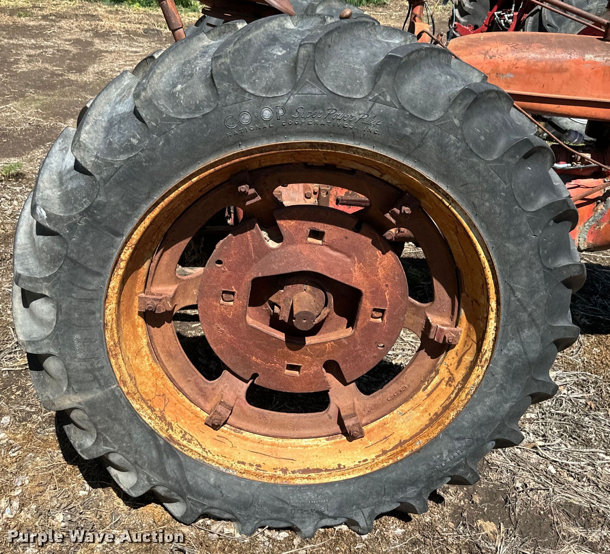 International Harvester Farmall H tractor. Hours: Unknown. Engine Cylinders: 4, Fuel type: Gas. Transmission Manual, 5F - 1R. Features PTO: 540. Tires Front: 5.50-16, Rear: 12.4-38. Notes Unknown operating condition. Nelson Farms. Salina, KS 67401