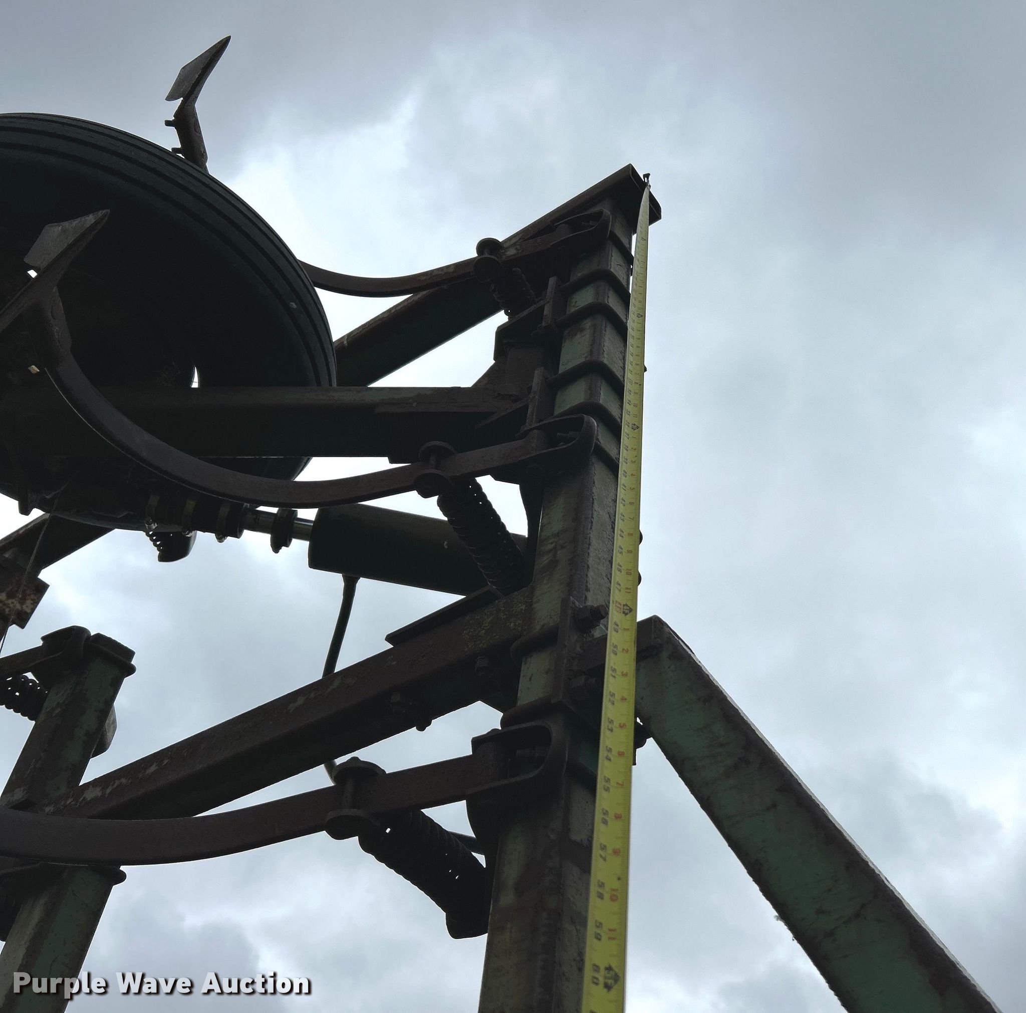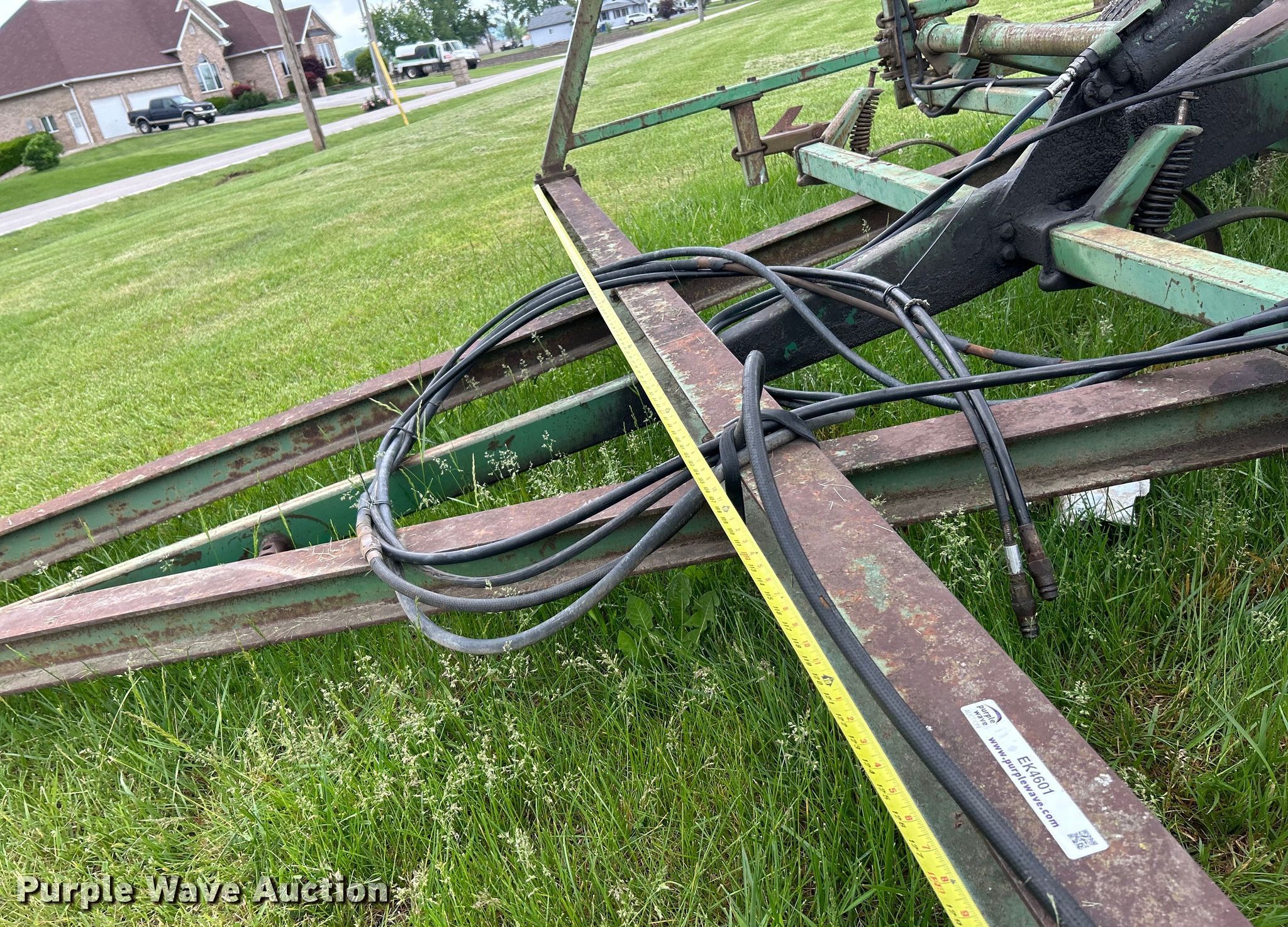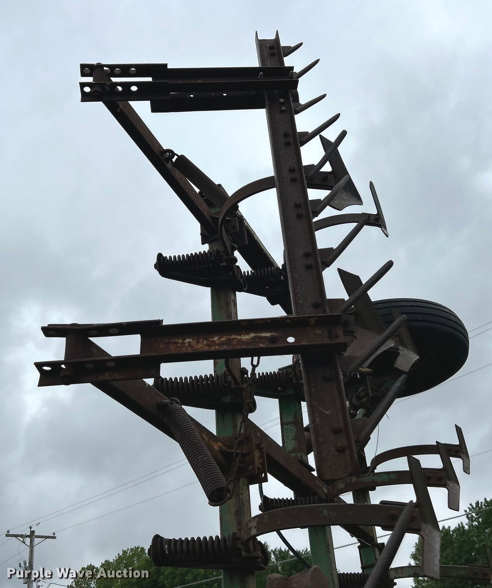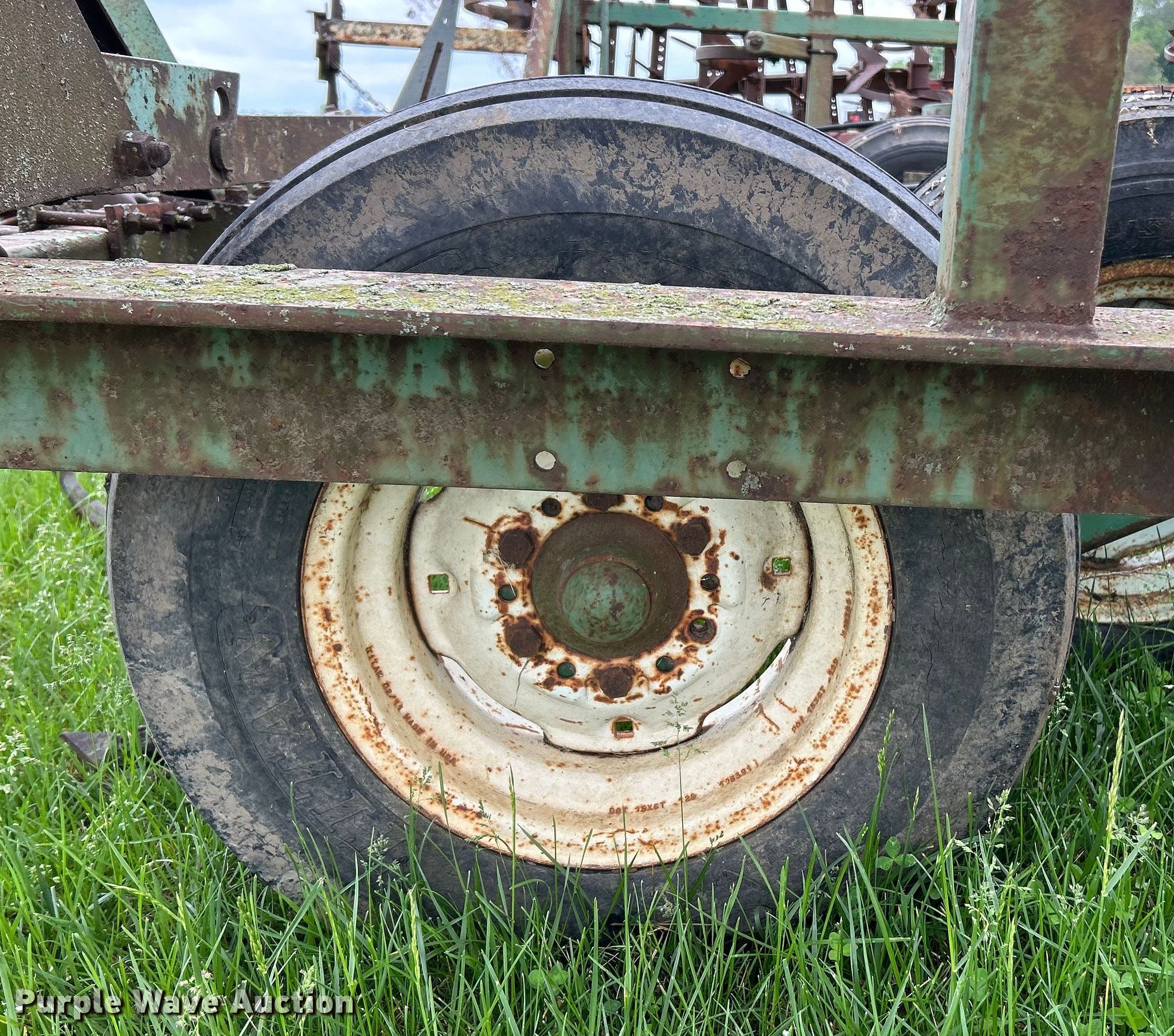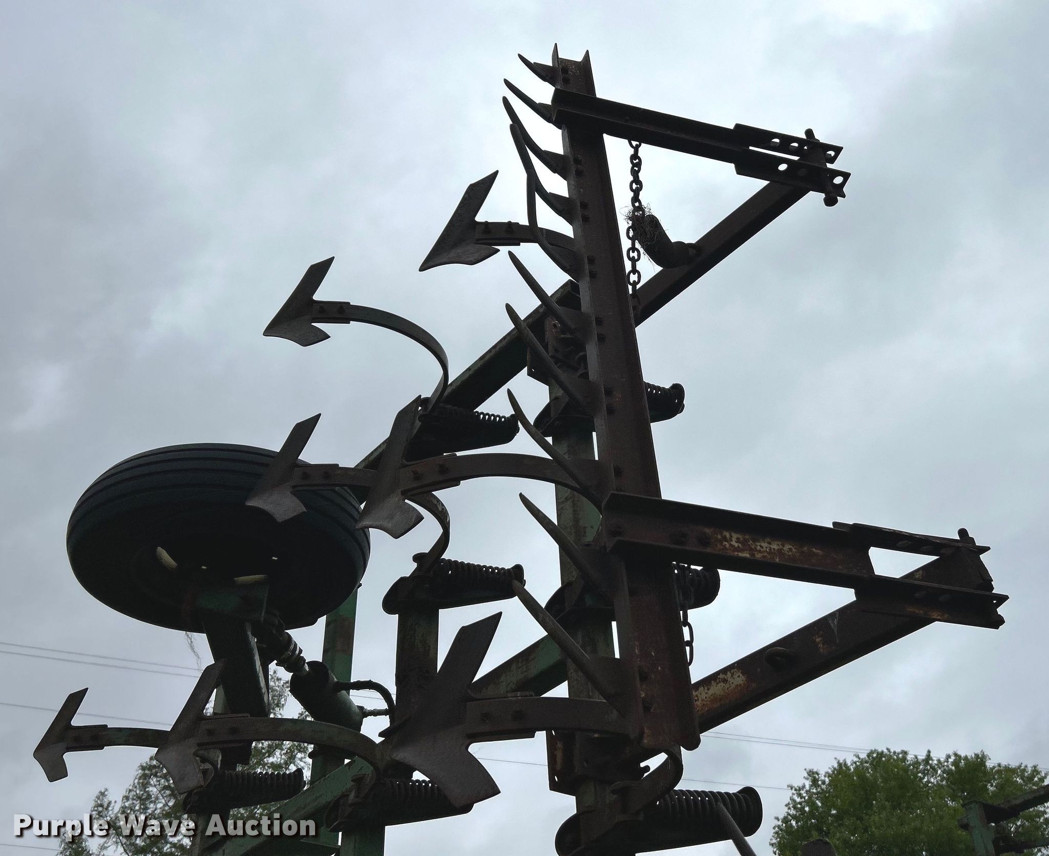 John Deere E1000 field cultivator. Overall width: 32', Serial: 017511N. Features Shanks: 67, Sweep width: 8", Operation Hydraulic lift, Hydraulic fold, Walking tandem axle, Attachments Spike tooth harrow Harrow bars: 1.. Tires Tire size: 7.60-15SL. Schroeder Sod Farms. Saint Charles, MO 63301
