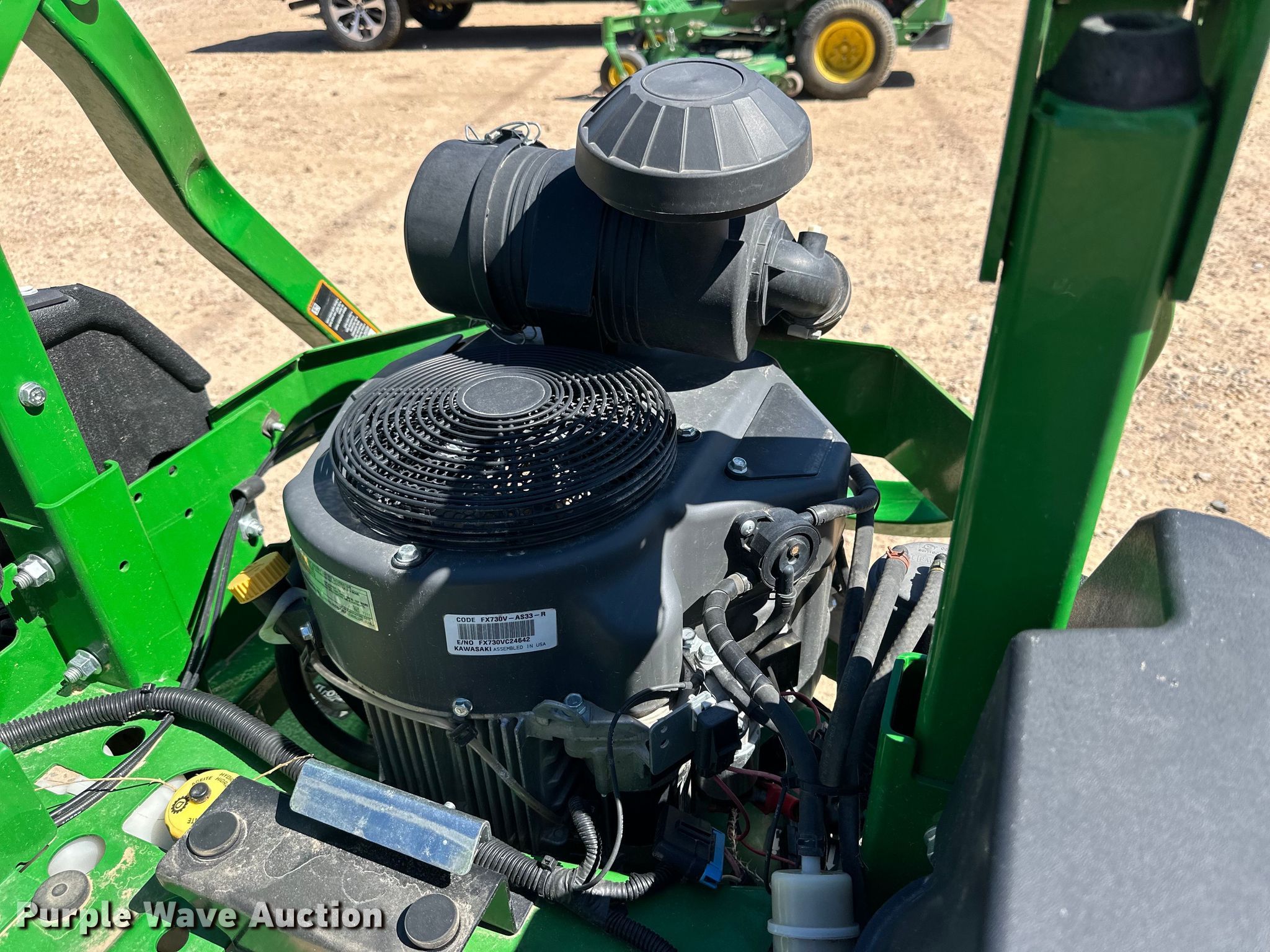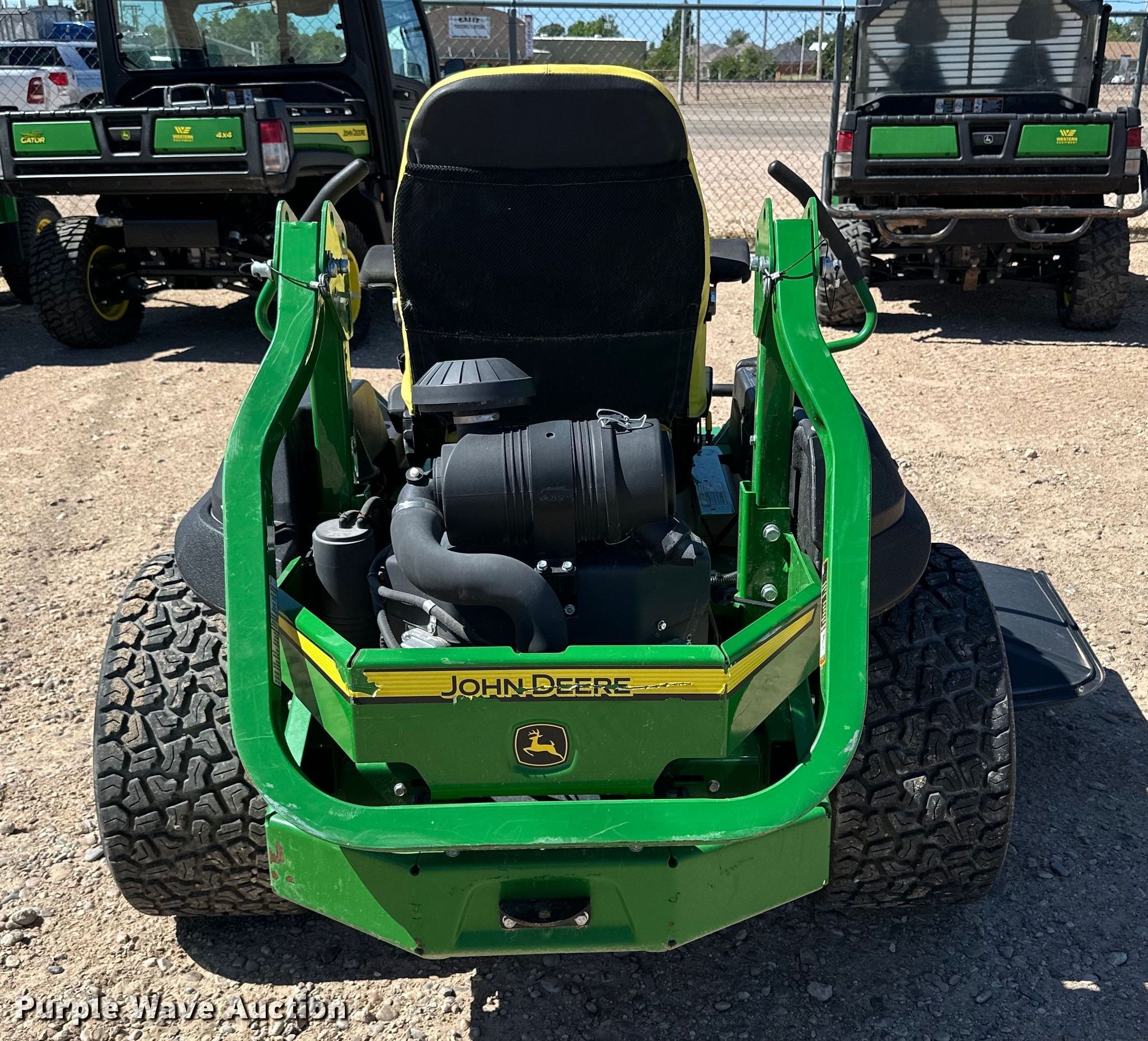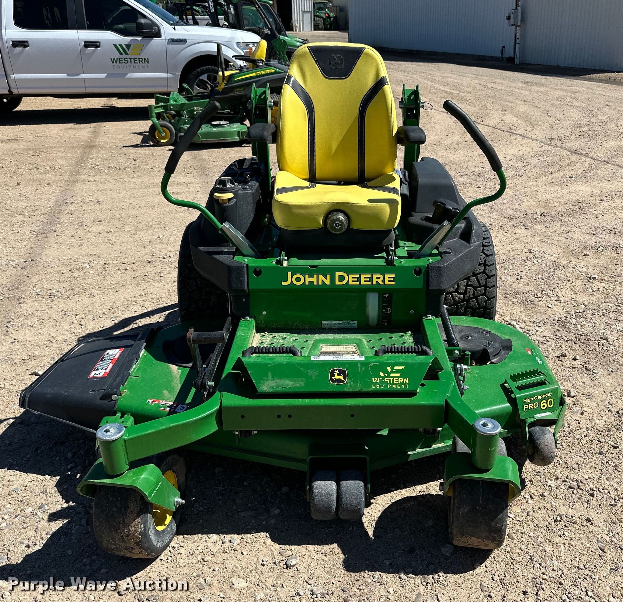 John Deere Z740R ZTR lawn mower. Hours: 203 on meter, Cutting width: 60", Serial: 1TC740REEKT010297. Engine Kawasaki, Cylinders: 2, Fuel type: Gas. Transmission Hydrostatic. Tires Front: 13x6.50-6/4.50, Rear: 24x12N12. Notes Dead battery. Western Equipment. Dalhart, TX 79022