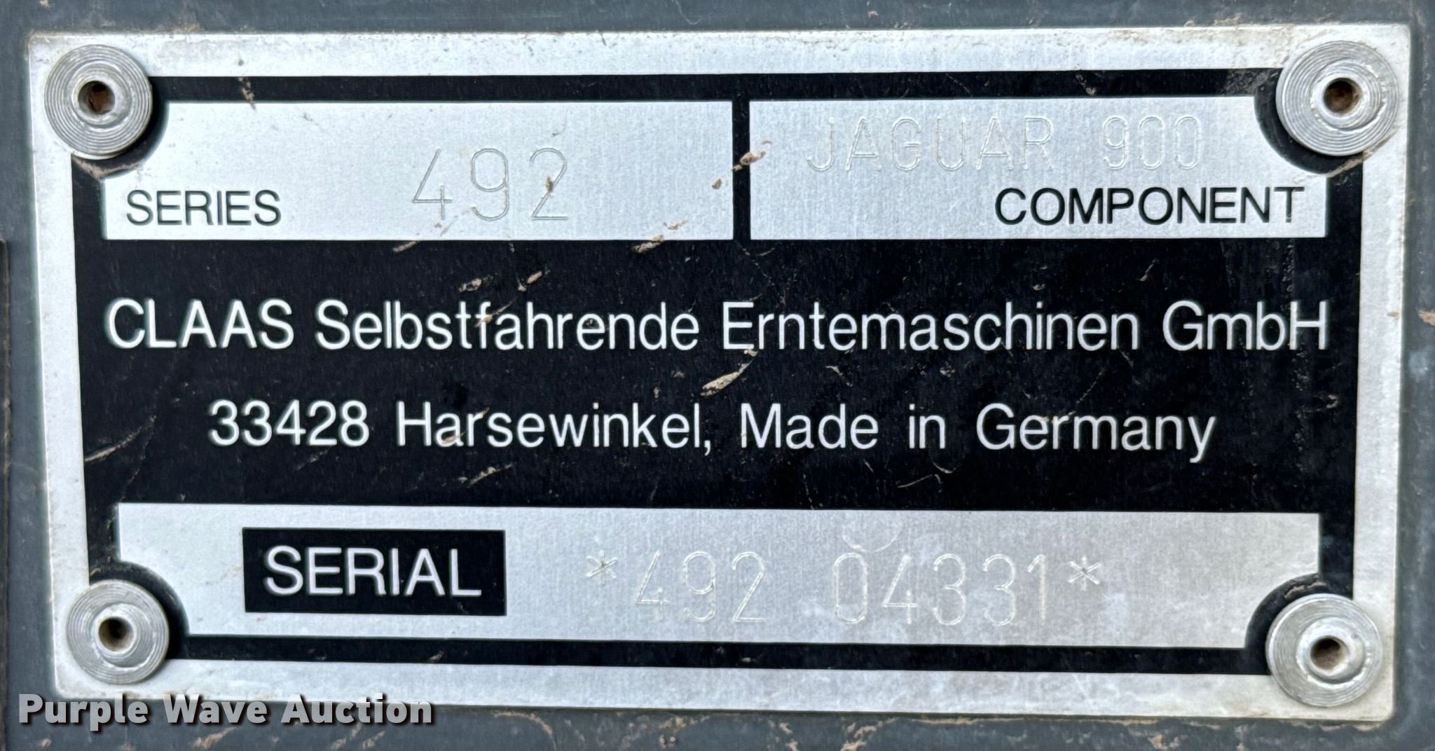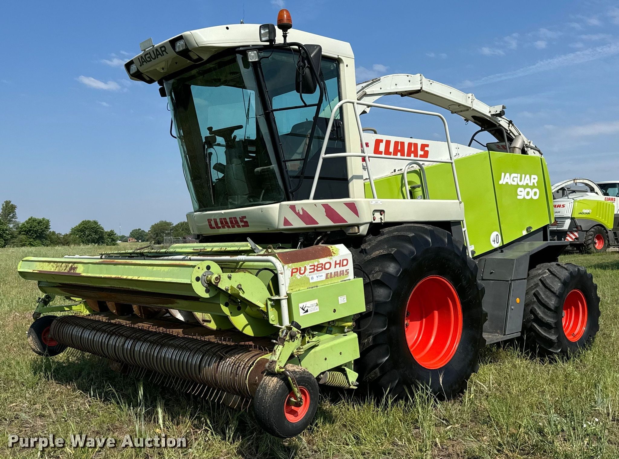 Purple Wave is selling a used Forage Harvester in Kansas. This item is a Claas Jaguar 900 forage harvester with the following: Engine hours: 6,411 on meter, Cutter hours: 5,126 on meter, Serial: 49204331