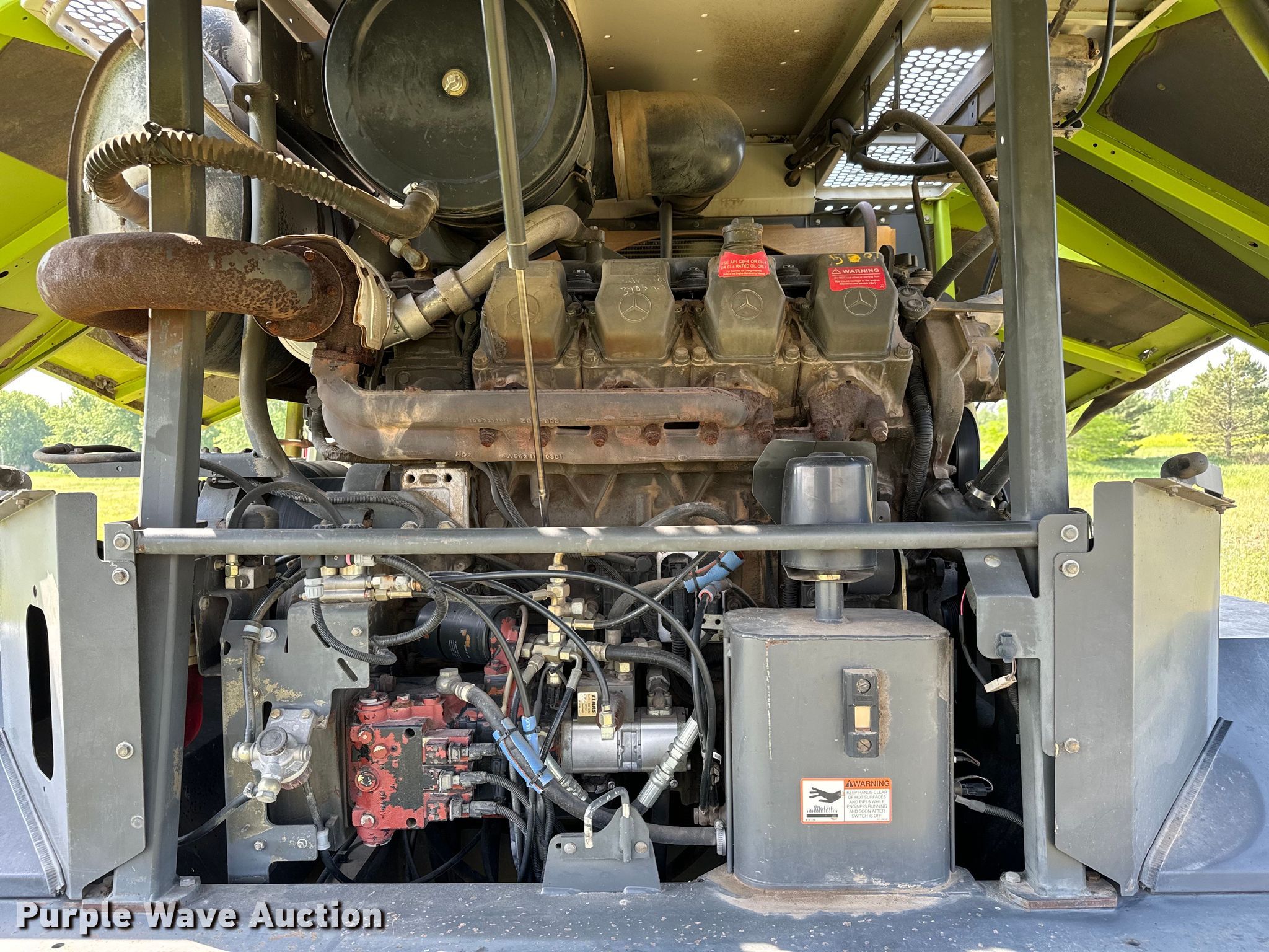 Claas Jaguar 900 forage harvester. Engine hours: 6,411 on meter, Cutter hours: 5,126 on meter, Serial: 49204331. Engine Mercedes-Benz OM 502LA, Displacement: 15.9L, Cylinders: 8, Fuel type: Diesel. Transmission Hydrostatic. Operators station AC, Heat. Features Auto lube, On-board air, Silage additive spray system, Spout: High arch, Hydraulic adjust, Head drive: Single, Head Claas PU380HD, Serial: 42902480, Pickup, Width: 12', Gauge wheels, Drivelines: Single, Rotary head Claas Orbis, Width: 20', Rows: 8. Tires Front: 800/65R32, Rear: 540/65R24. E & D Custom Silage. Great Bend, KS 67530
