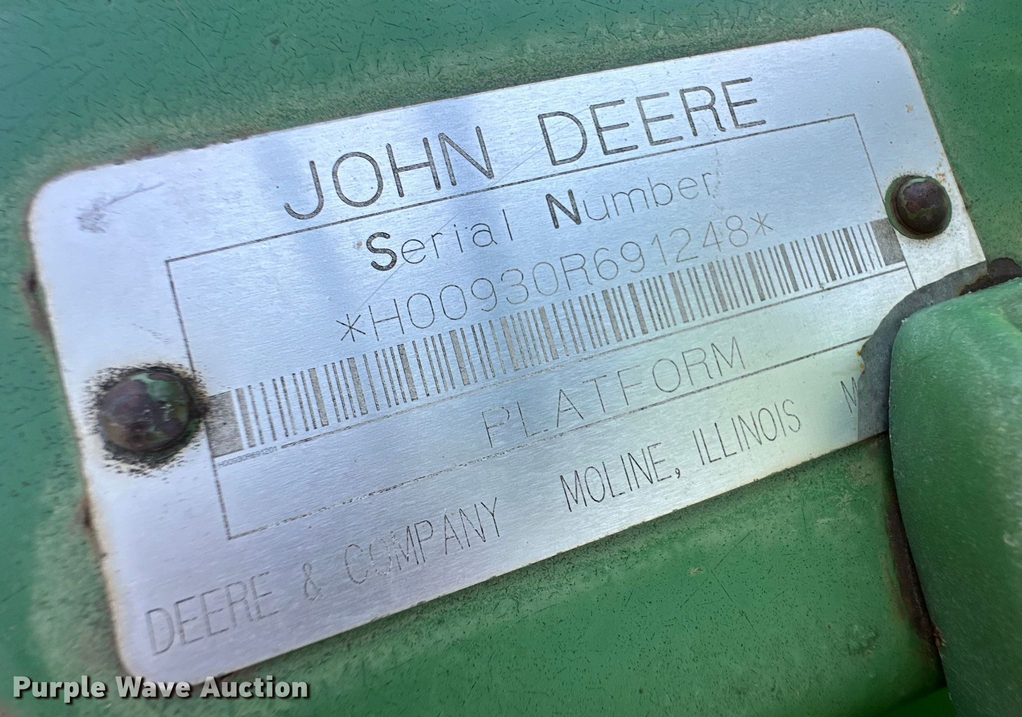 Purple Wave is selling a used Platform or Stripper Head in Texas. This item is a John Deere 930R rigid head with the following: Serial: H00930R691248