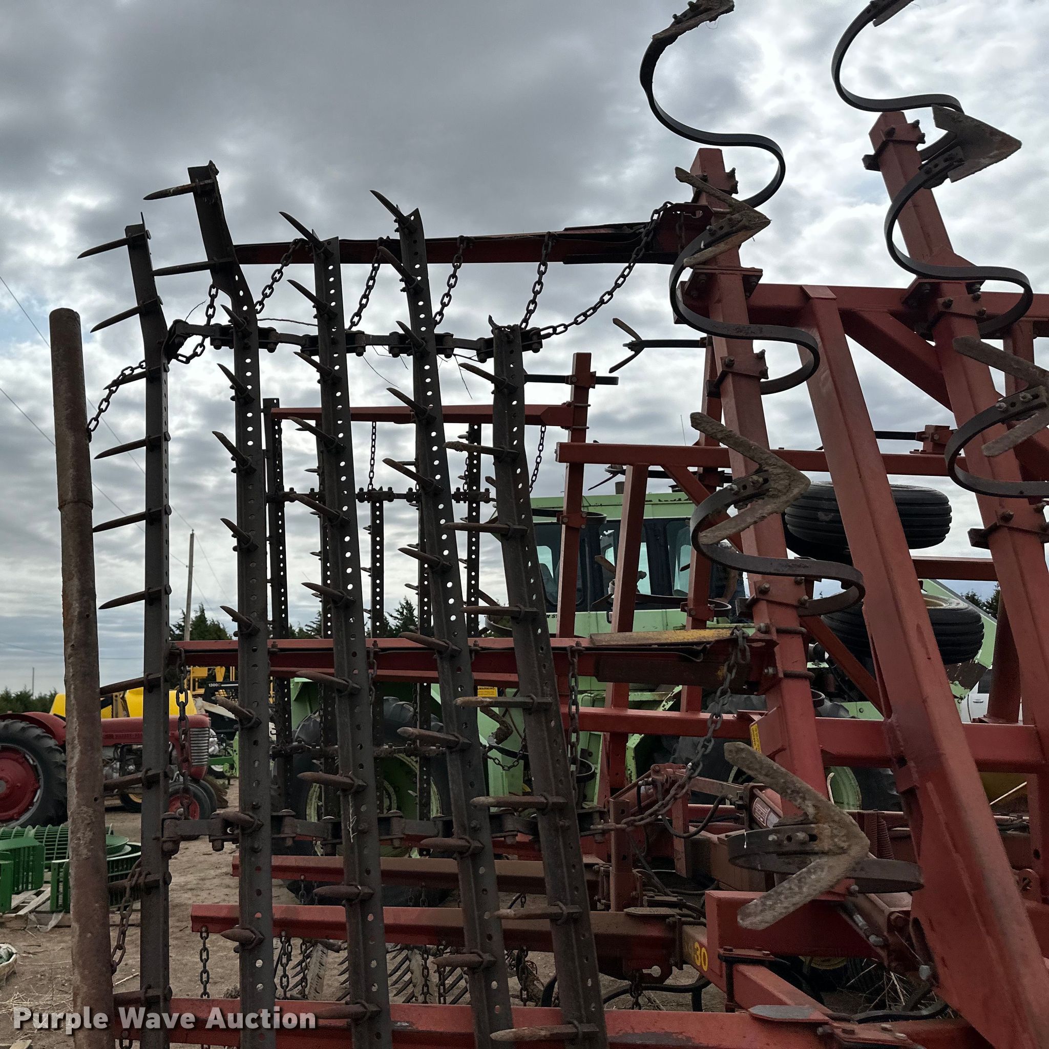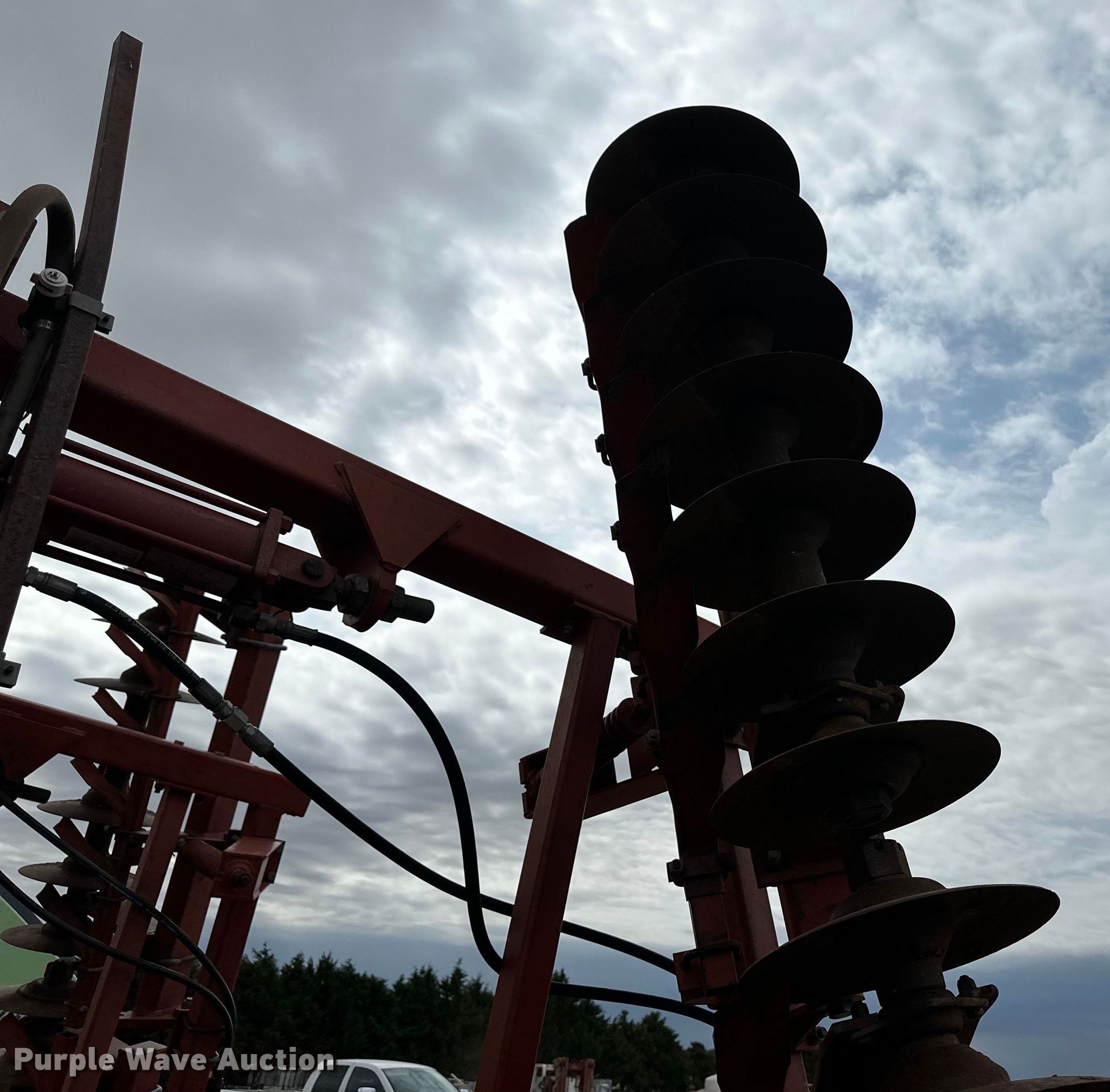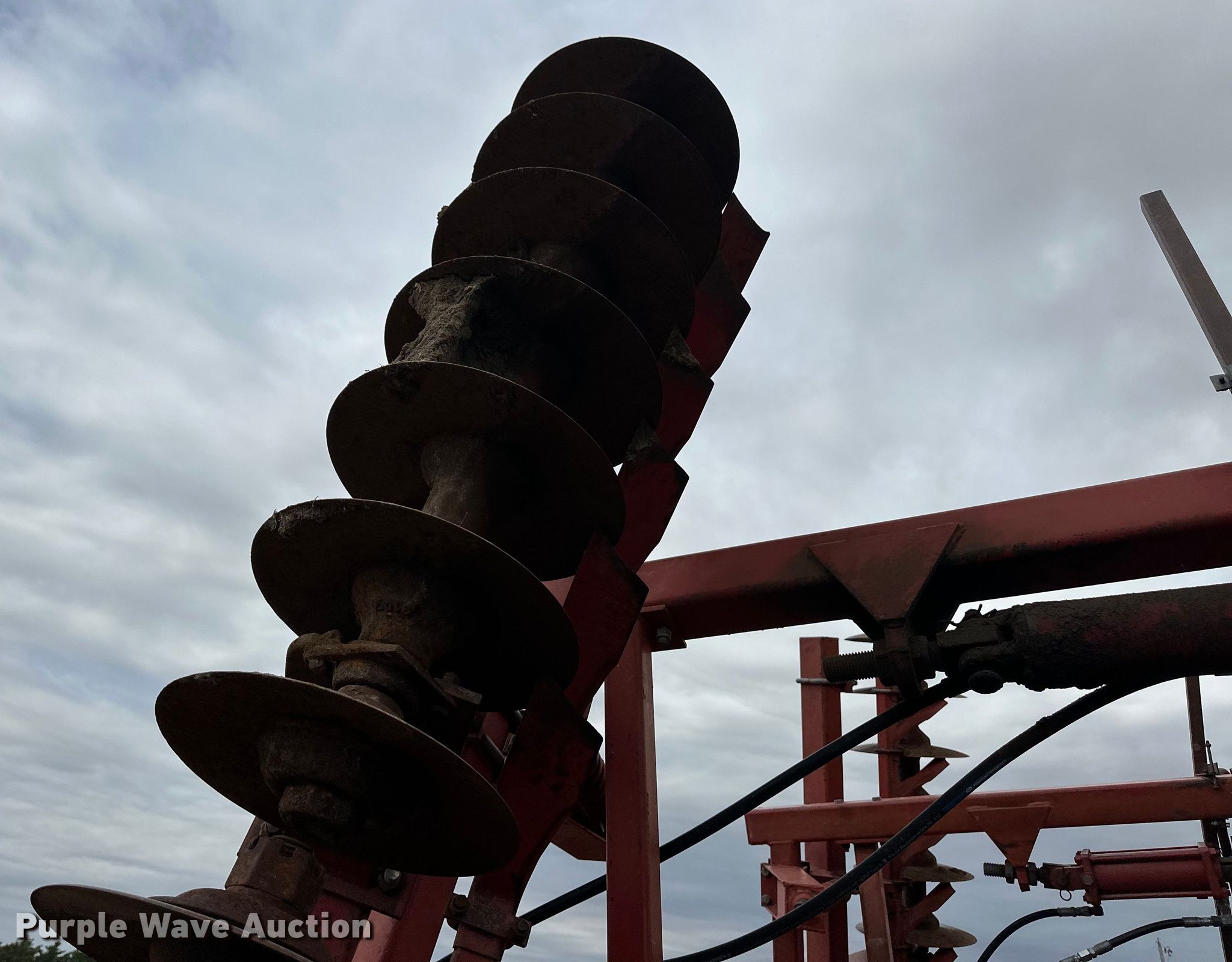 Sunflower 6430-31 mulch finisher. Overall width: 32', Serial: 688-1358. Features Shanks: 46, Sweep width: 12", Blade diameter Front: 16", Spacing: 8", Operation Hydraulic lift, Hydraulic fold, Leveler: Manual, Attachments Spike tooth harrow Harrow bars: 3.. Tires Tire size: 12.5L-15. Peter Teichroeb. Sublette, KS 67877
