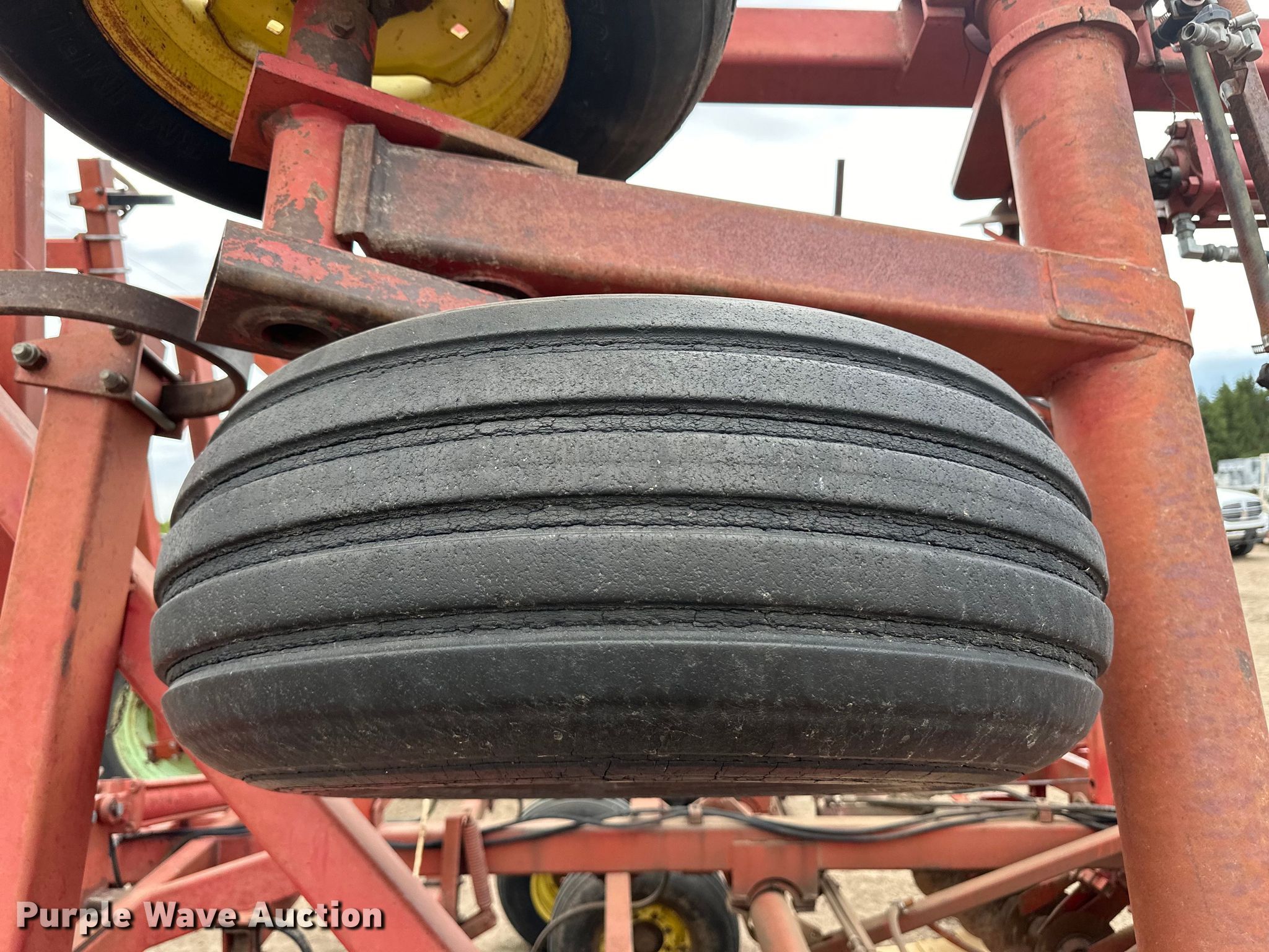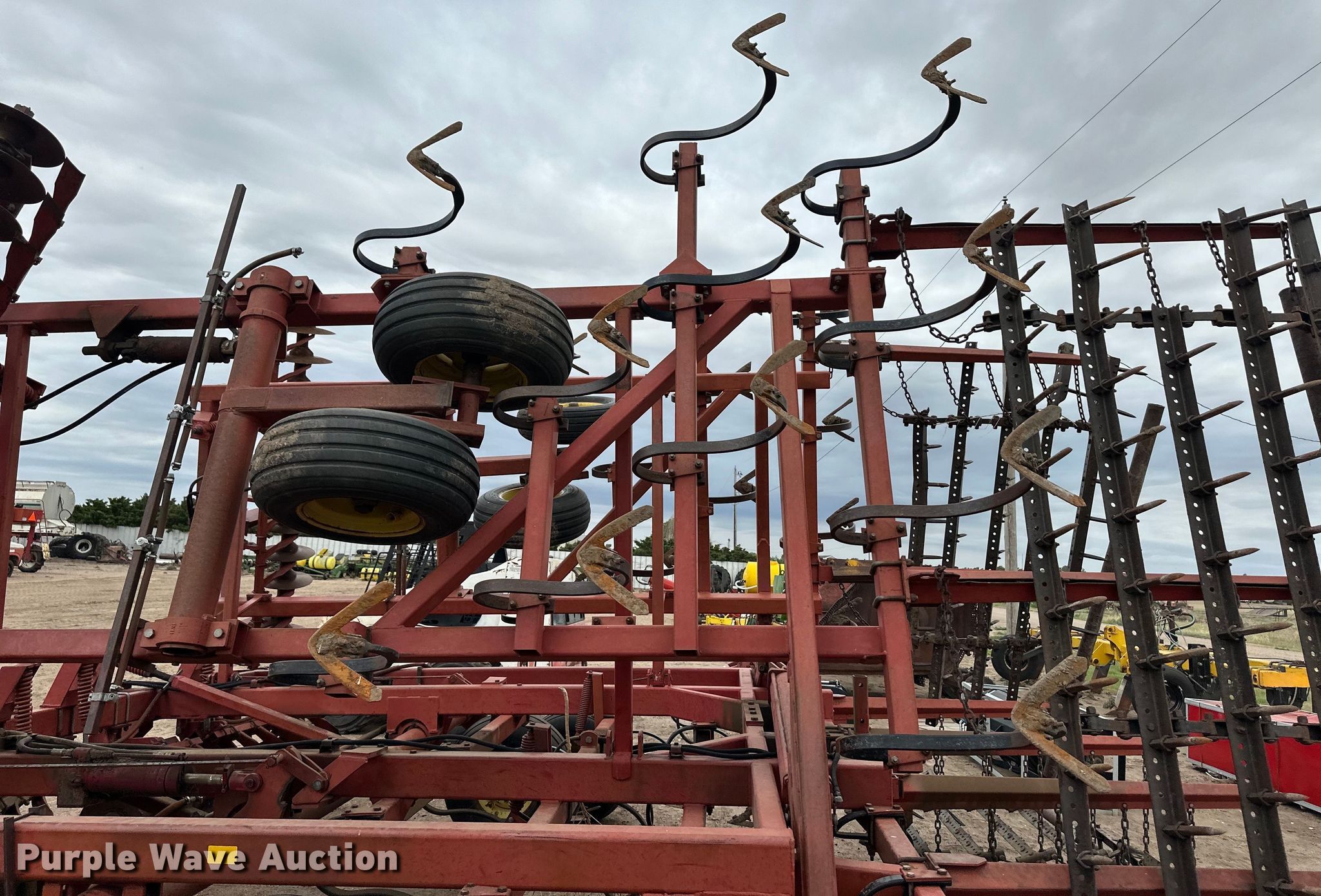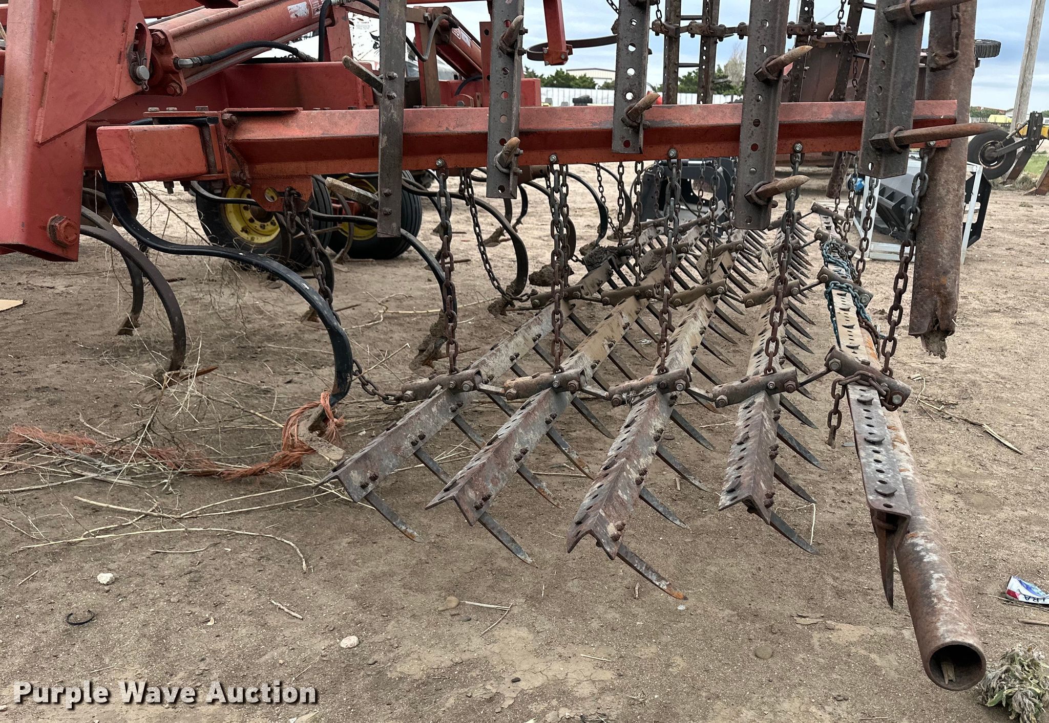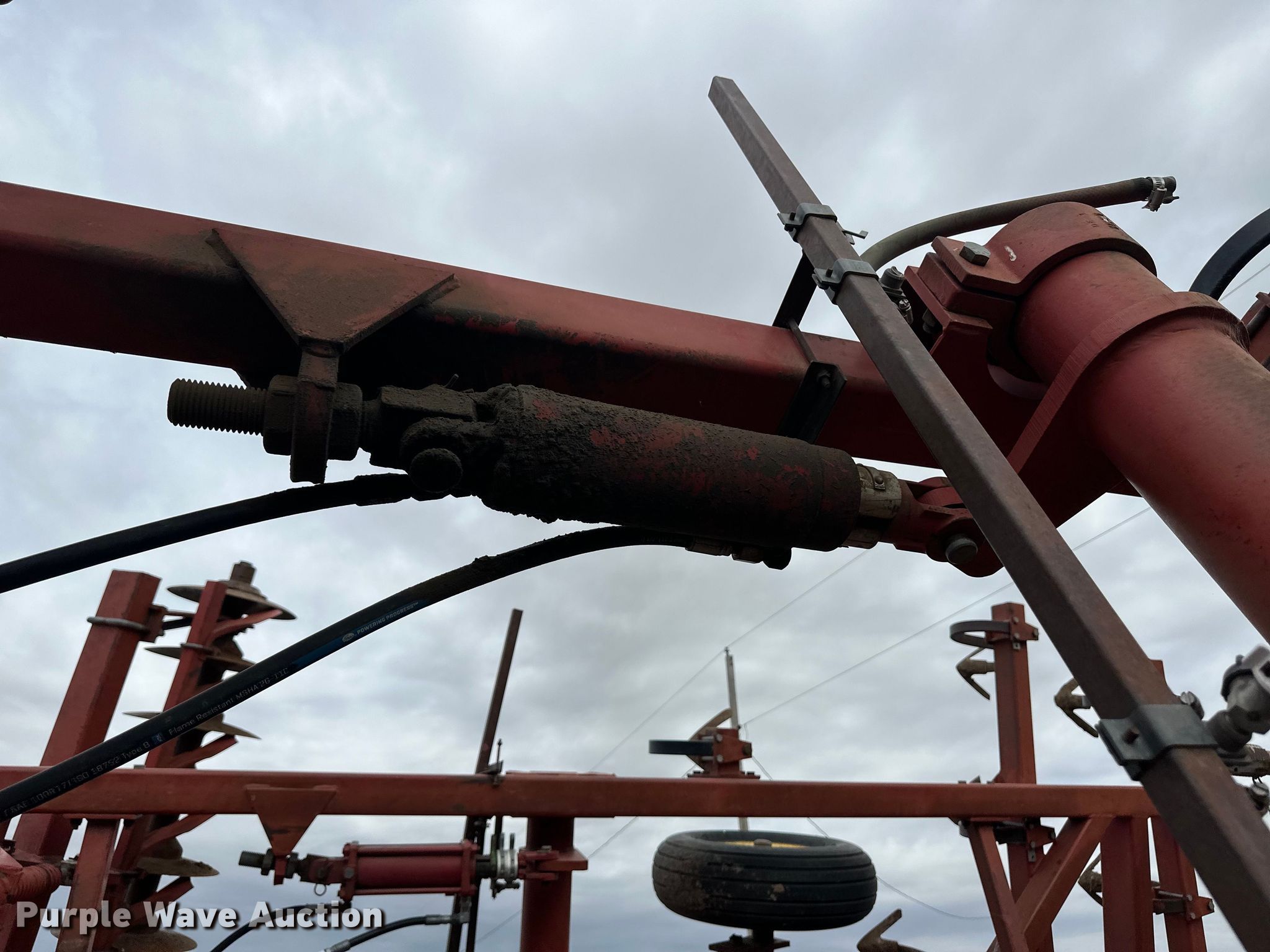 Sunflower 6430-31 mulch finisher. Overall width: 32', Serial: 688-1358. Features Shanks: 46, Sweep width: 12", Blade diameter Front: 16", Spacing: 8", Operation Hydraulic lift, Hydraulic fold, Leveler: Manual, Attachments Spike tooth harrow Harrow bars: 3.. Tires Tire size: 12.5L-15. Peter Teichroeb. Sublette, KS 67877