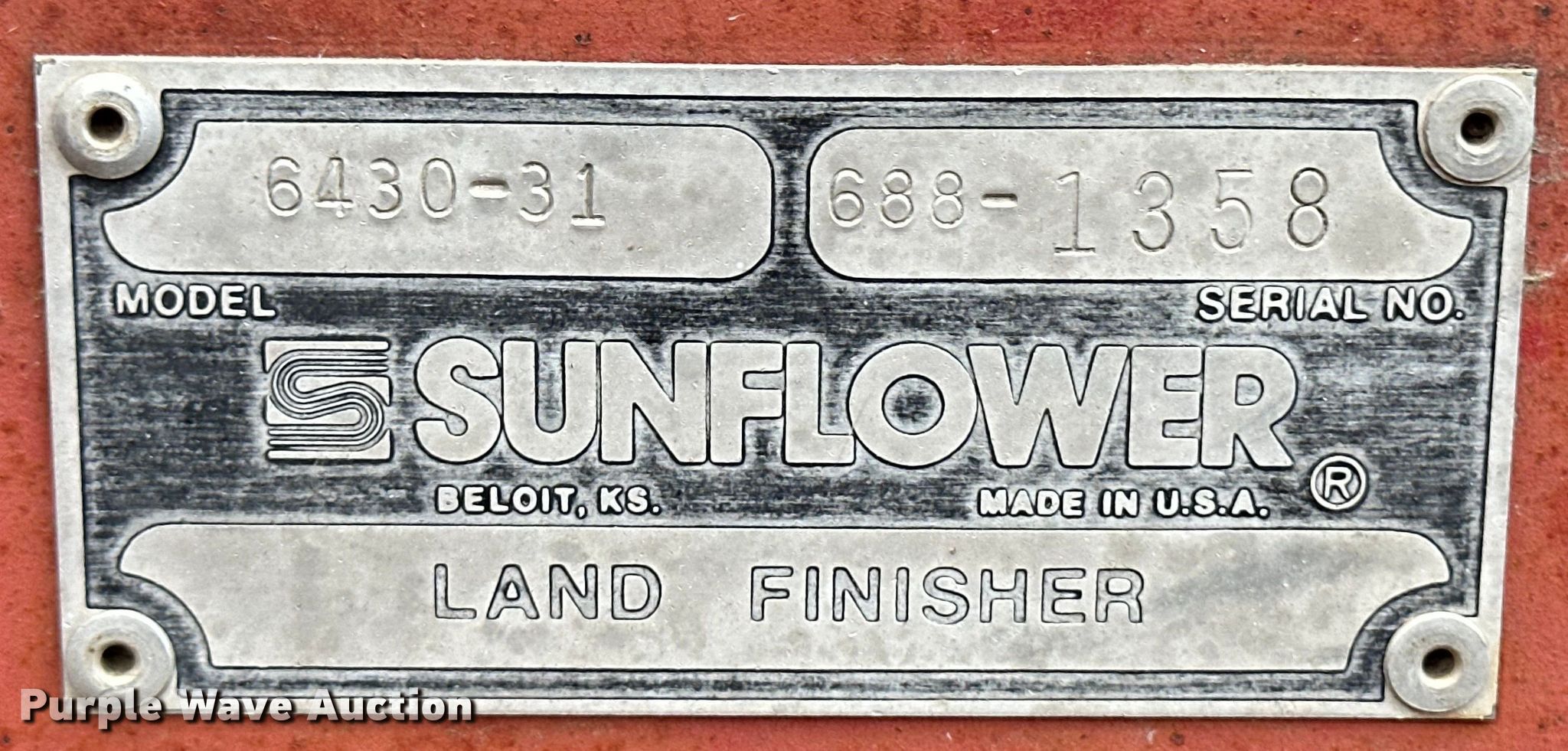 Purple Wave is selling a used Mulcher Finisher in Kansas. This item is a Sunflower 6430-31 mulch finisher with the following: Overall width: 32', Serial: 688-1358