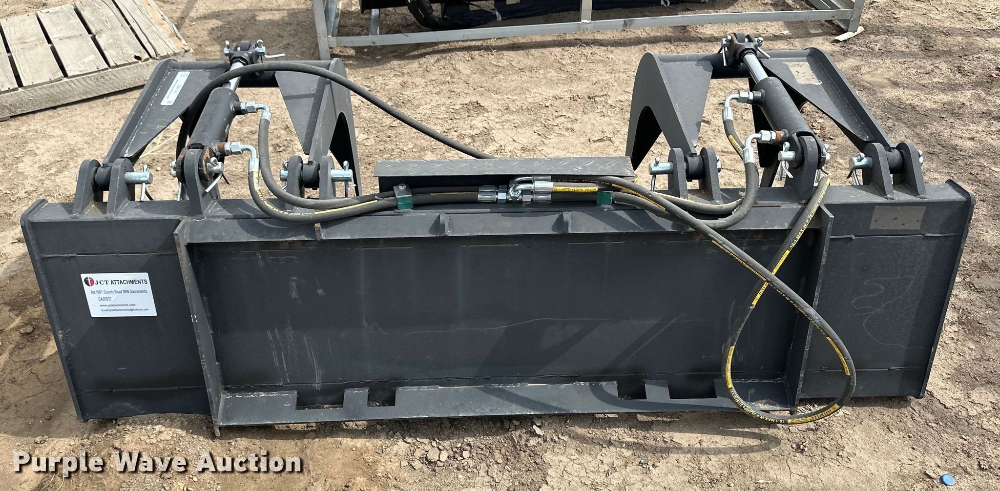 Purple Wave is selling a used Skid Steer Attach. in Kansas. This item is a JCT skid steer grapple bucket with the following: Width: 72", Cutting edge: Weld-on
