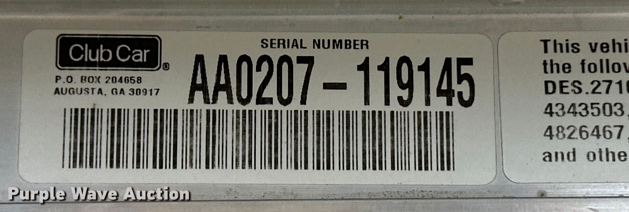 Purple Wave is selling a used Golf Cart in Kansas. This item is a 2002 Club Car DS Golf golf cart with the following: Serial: AA0207-119145