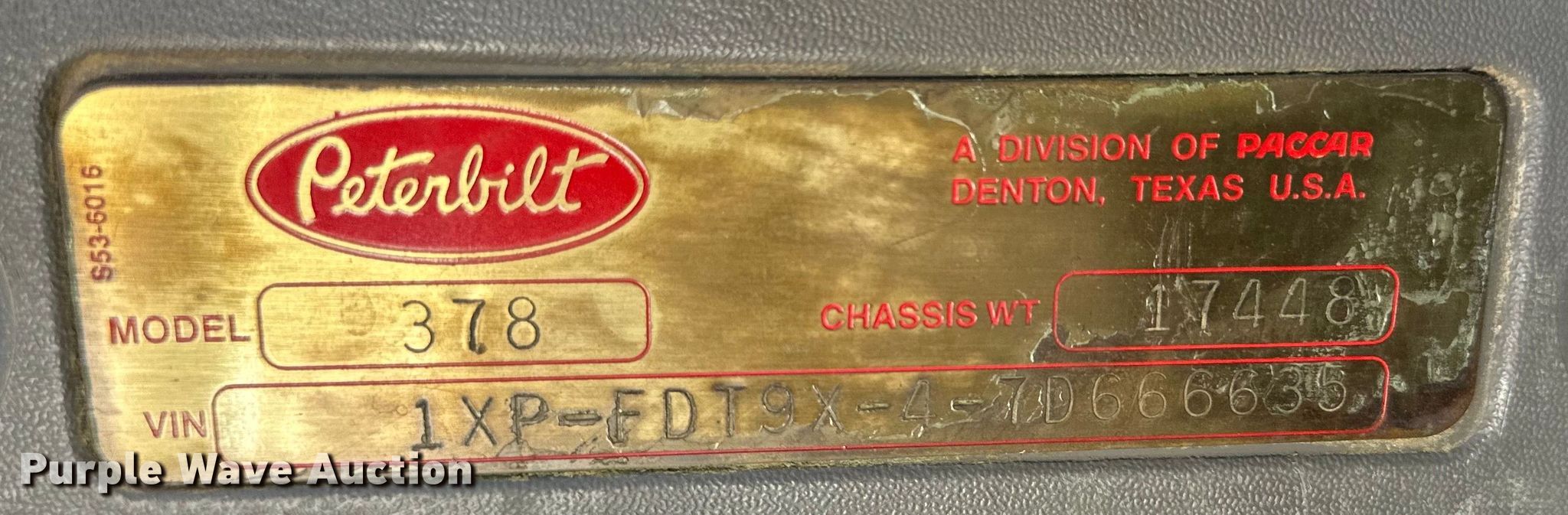 Purple Wave is selling a used Truck Tractor in Texas. This item is a 2007 Peterbilt 378 semi truck with the following: Miles: 465,032 on odometer, Hours: 31,257 on meter, VIN: 1XPFDT9X47D666635
