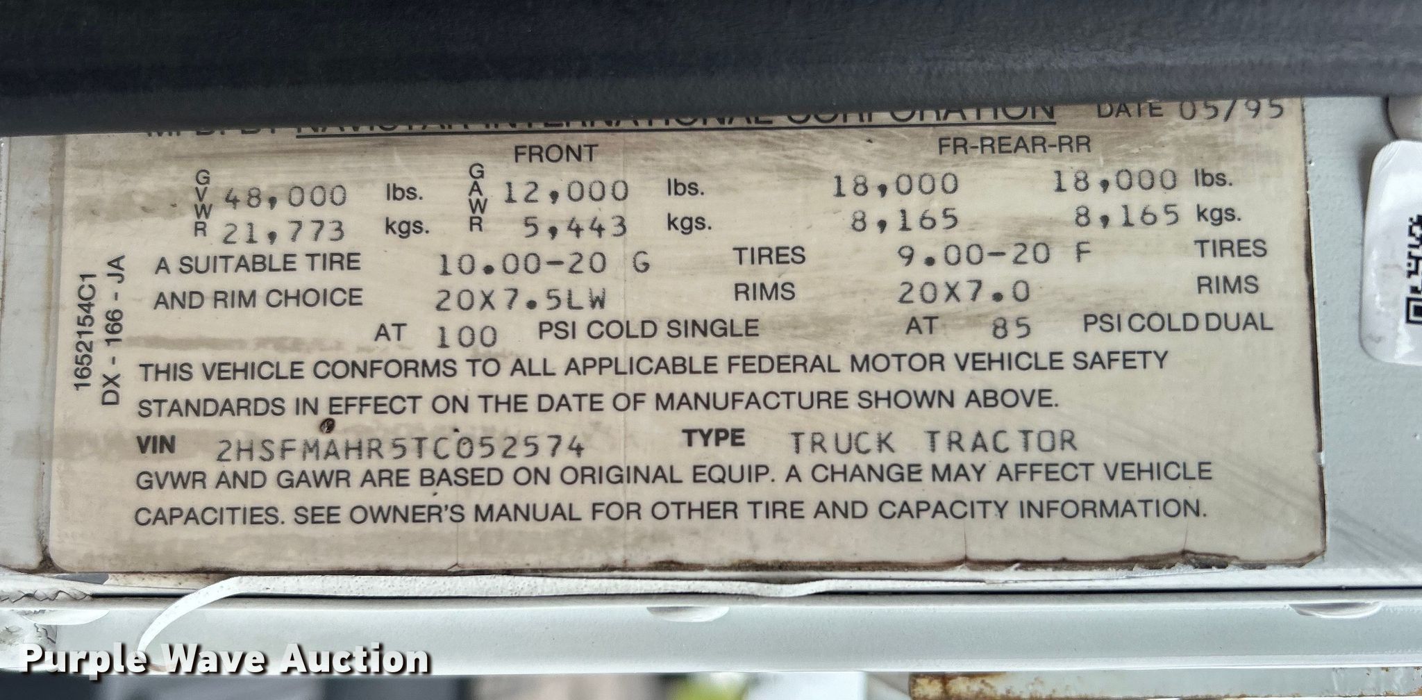 Purple Wave is selling a used Truck Tractor in Oklahoma. This item is a 1996 International 9200 semi truck with the following: Miles: 347,648 on odometer, VIN: 2HSFMAHR5TC052574